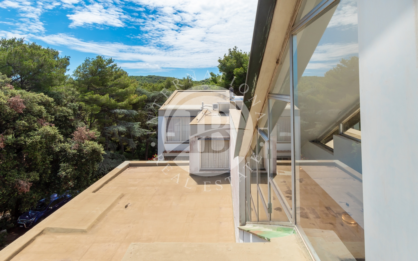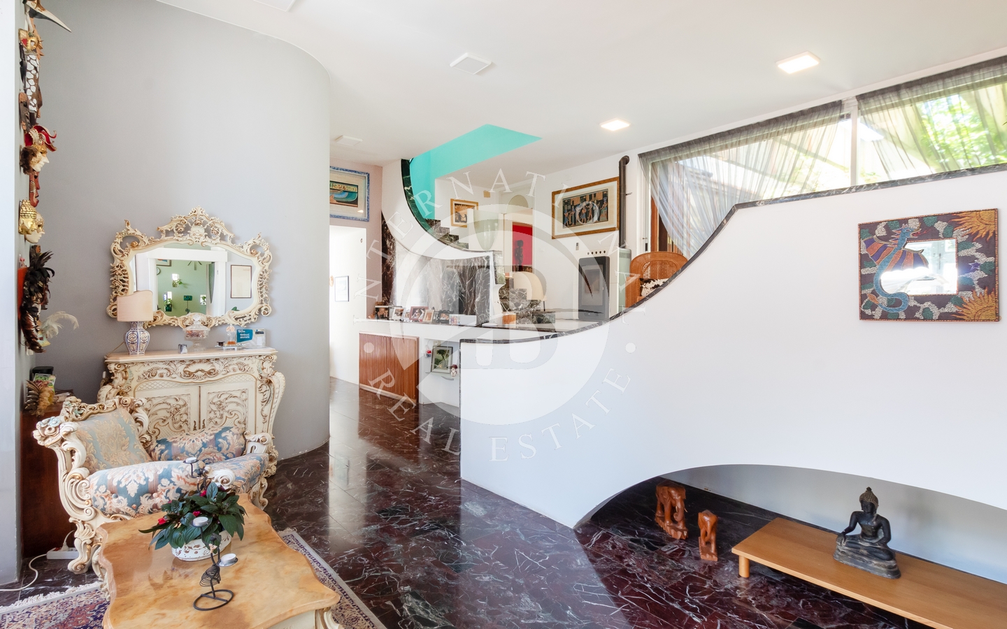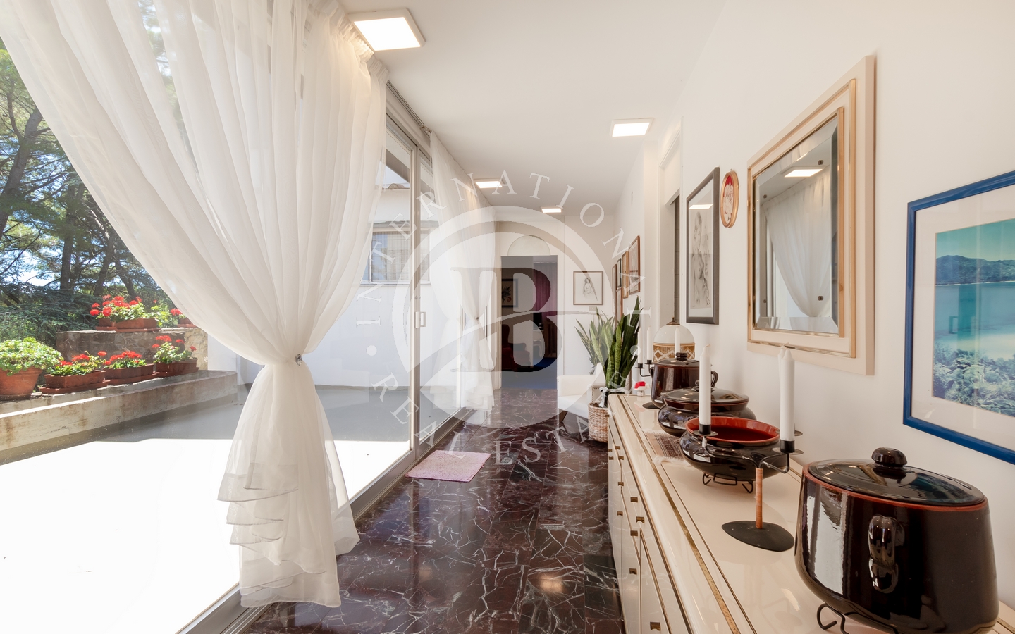 De elegante og rummelige badeværelser er udstyret med finish i høj kvalitet og al mulig komfort. Villaen har også en panoramaterrasse med uforlignelig udsigt, perfekt til afslapning eller underholdning af gæster.