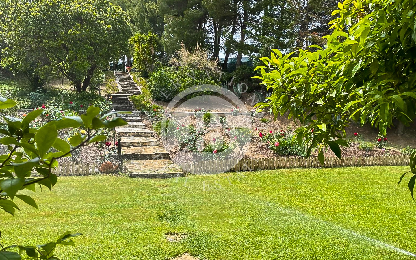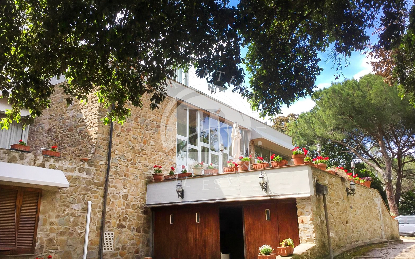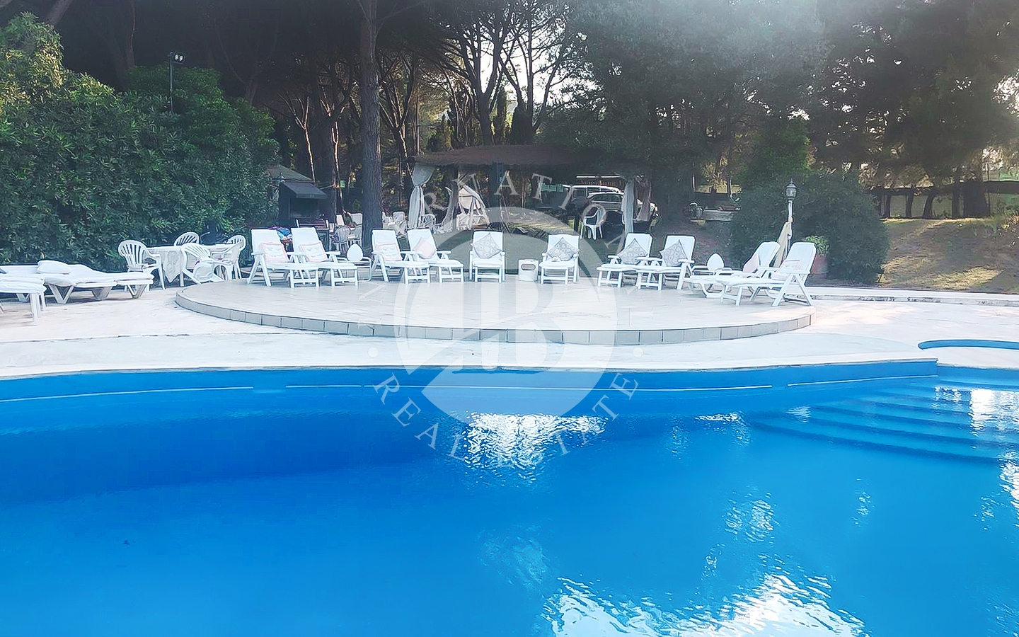 Den store 4 hektar store grund, der omgiver villaen, er hjemsted for en række udendørs områder til afslapning og rekreation. En stor, velholdt have fører til en smuk swimmingpool. Ejendommen omfatter også en olivenlund og en vingård, som giver det toscanske landskab et autentisk præg. For hesteelskere giver en stald med fem bokse en unik mulighed for at have dine egne dyr lige hjemme. Grøntsagshaven og den store relevante have fuldender det udendørs tilbud og garanterer grønne områder, hvor man kan slappe af og nyde naturen. Uoverdækkede parkeringspladser og en garage giver rigelig plads til at parkere køretøjer.