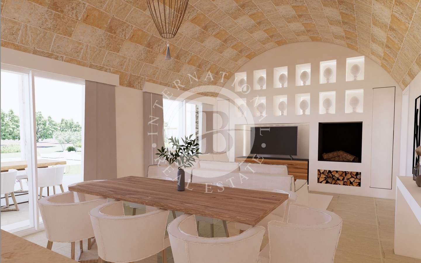 Villaen er bygget i ét plan i henhold til det godkendte projekt. Den består af en stor stue med tekøkken og spisestue, et vaskerum, et servicebadeværelse og 3 soveværelser med dobbeltsenge, alle med eget badeværelse. Hele konstruktionen er udsmykket med en tøndehvælving i opholdsstuen og spektakulære stjernehvælvinger i de 3 soveværelser, en detalje, der giver villaen en note af stor tradition i en absolut moderne kontekst.
