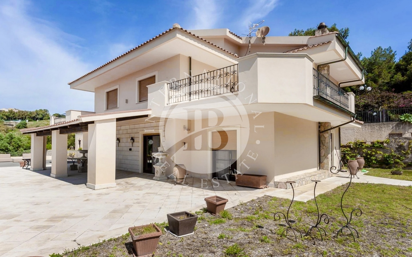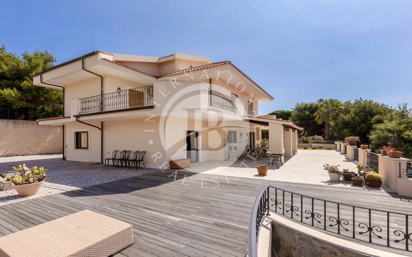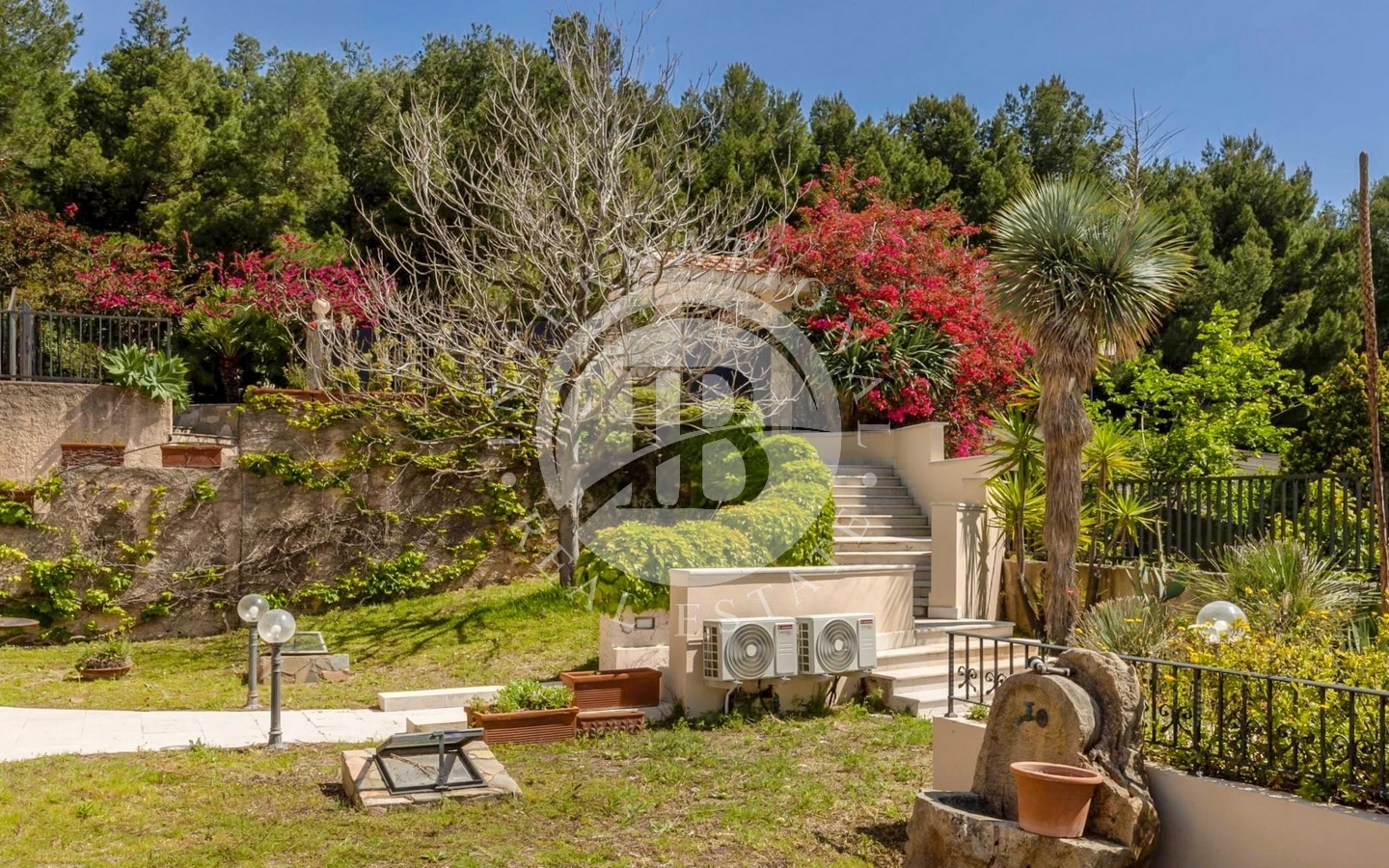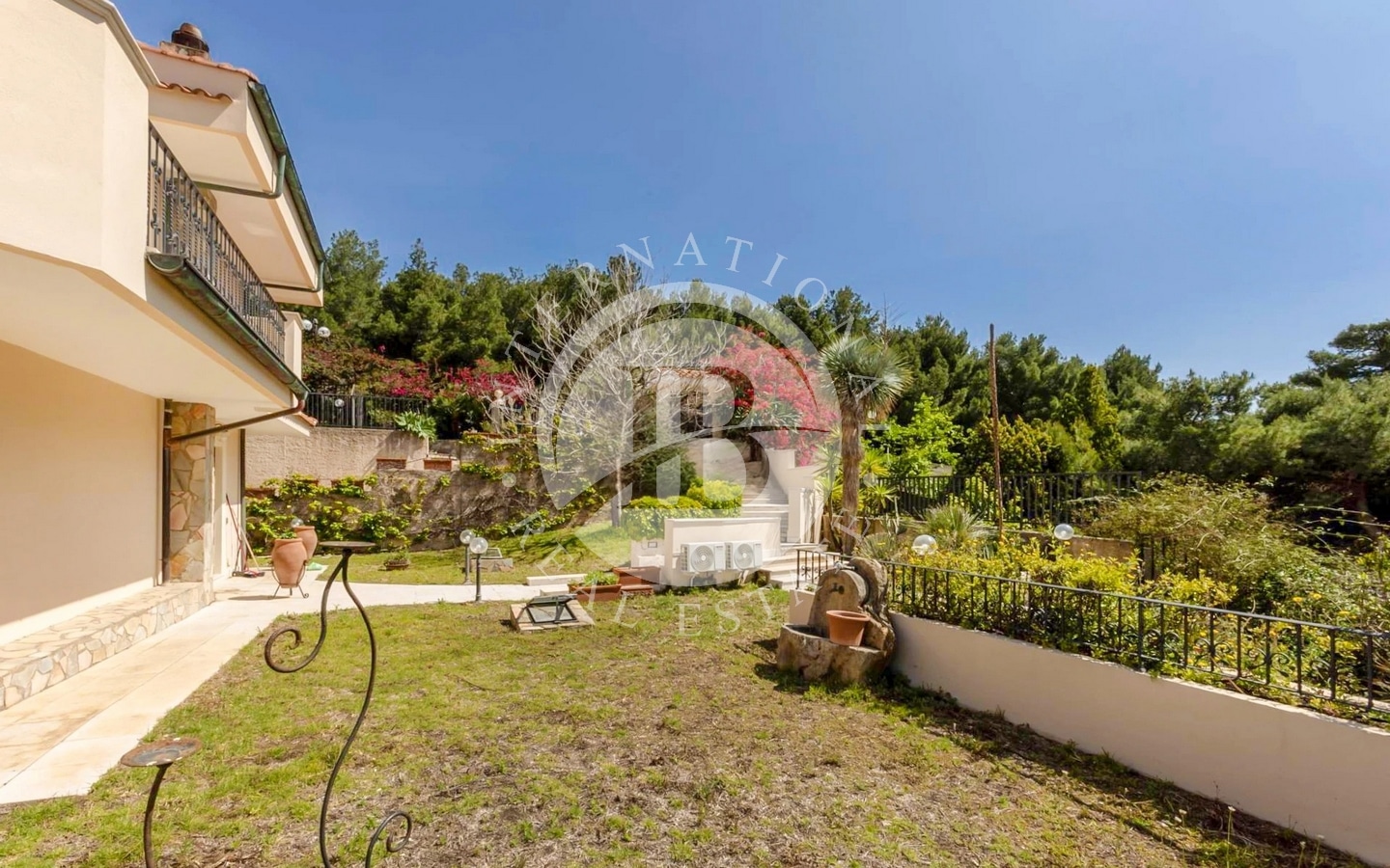 Udendørsområdet omfatter en have på ca. 1000 kvadratmeter med en pragtfuld central swimmingpool, der er ideel til afslappende stunder i totalt privatliv. Takket være sin størrelse og sine egenskaber er denne villa også særdeles velegnet til at blive omdannet til et overnatningssted på højt niveau.