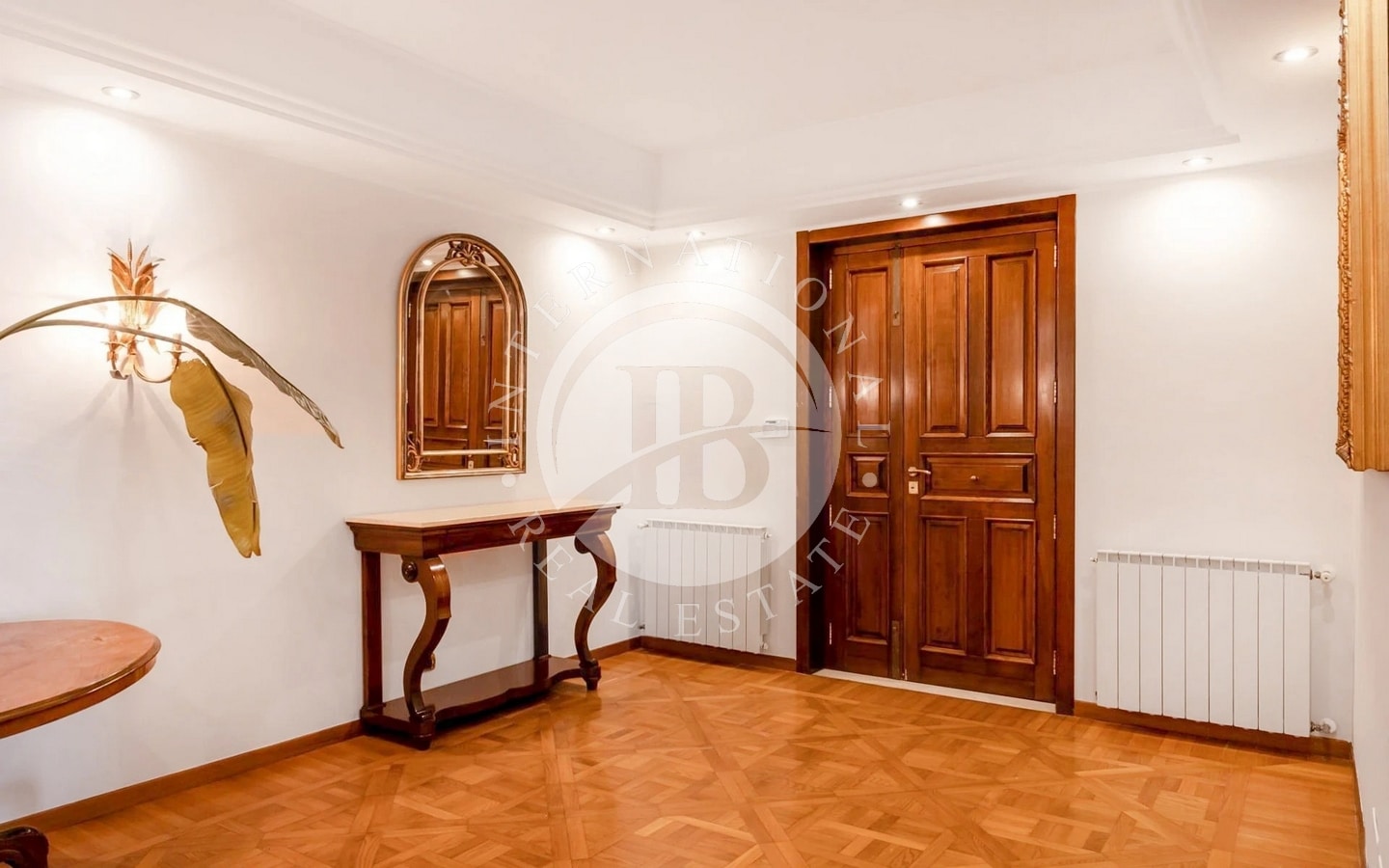 På første sal er der to soveværelser, hver med eget badeværelse og udsigt til en panoramaterrasse, samt et tredje soveværelse med walk-in-garderobe og et ekstra badeværelse. Loftsetagen har en master bedroom-suite med walk-in-garderobe, rummeligt badeværelse og panoramaterrasse med udsigt over strædet. De forskellige etager er forbundet med en praktisk intern elevator.