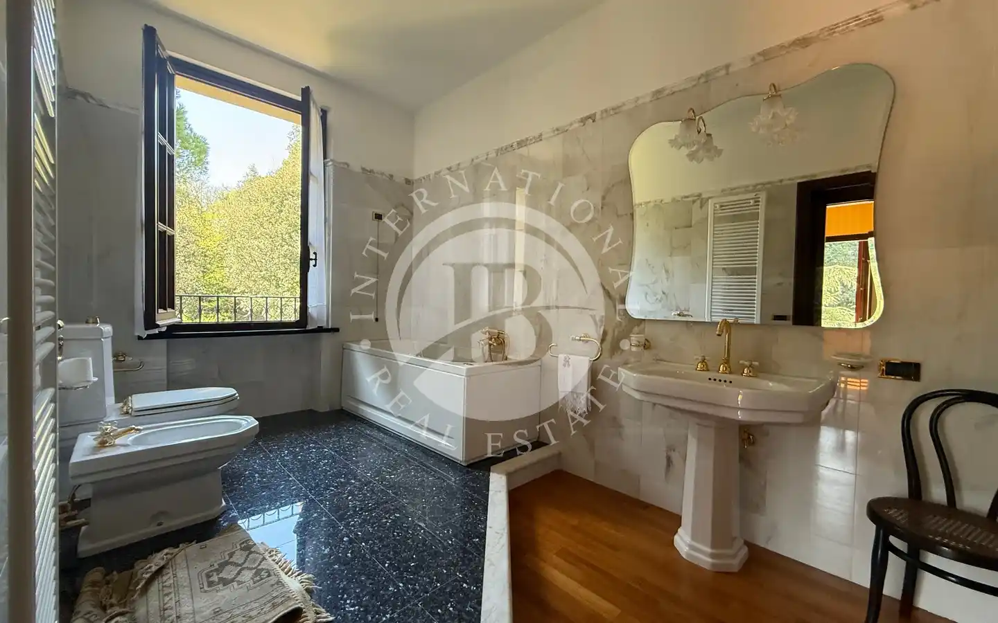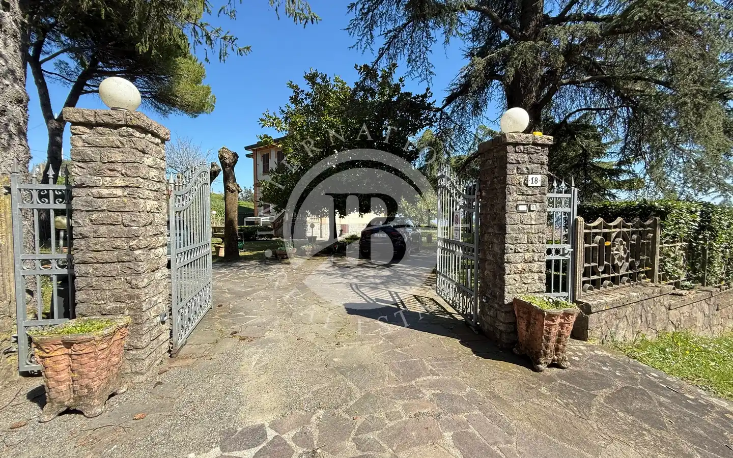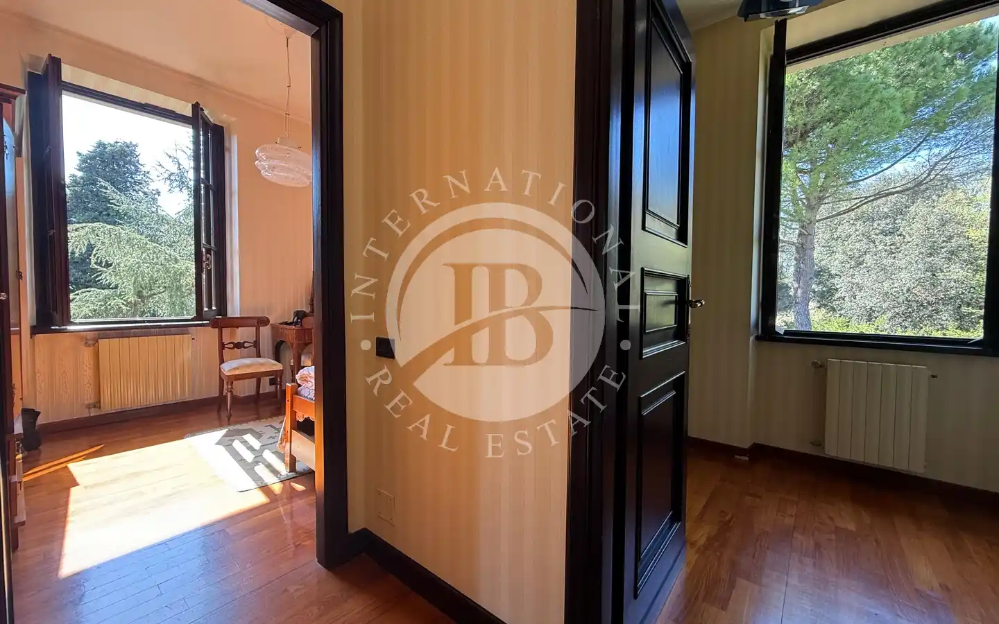 Ejendommen, der ligger i et afsides og grønt område, er kun få minutter fra byens centrum, hvilket gør den ideel både som permanent bolig og som repræsentativ bolig. Den omkringliggende park, der er rig på århundredgamle træer og suggestive udsigter, giver rigelig plads til afslapning og hygge, perfekt til udendørs stunder i totalt privatliv.