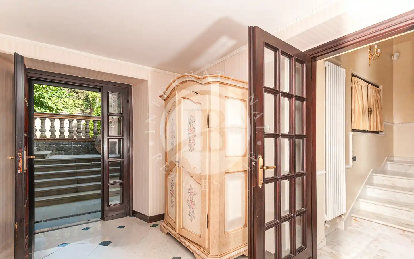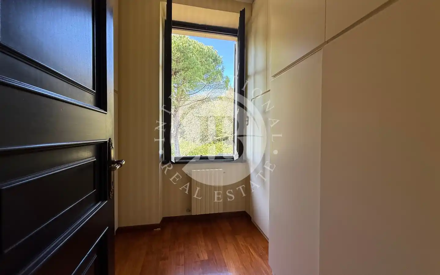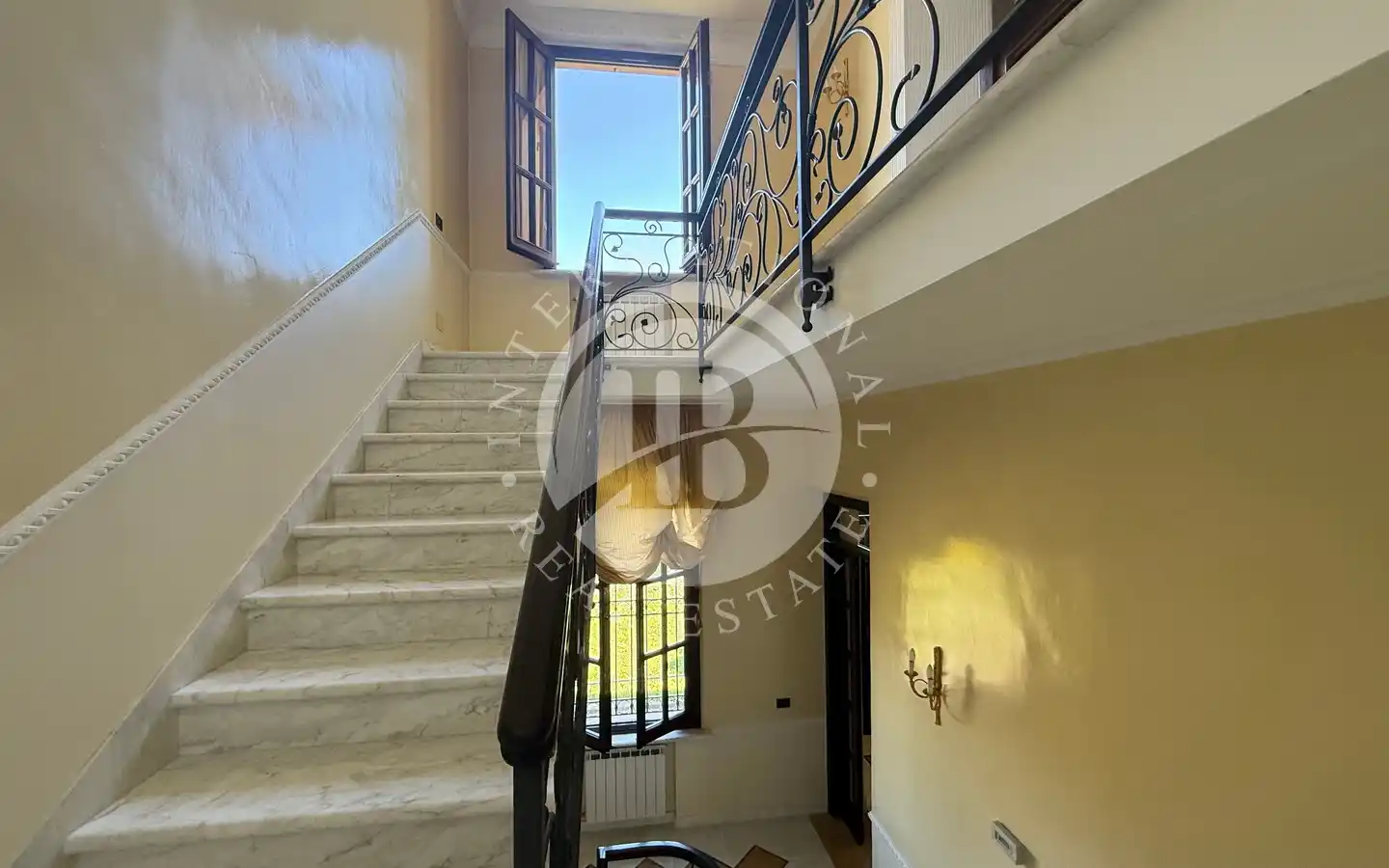 Ejendommen, der ligger i et afsides og grønt område, er kun få minutter fra byens centrum, hvilket gør den ideel både som permanent bolig og som repræsentativ bolig. Den omkringliggende park, der er rig på århundredgamle træer og suggestive udsigter, giver rigelig plads til afslapning og hygge, perfekt til udendørs stunder i totalt privatliv.