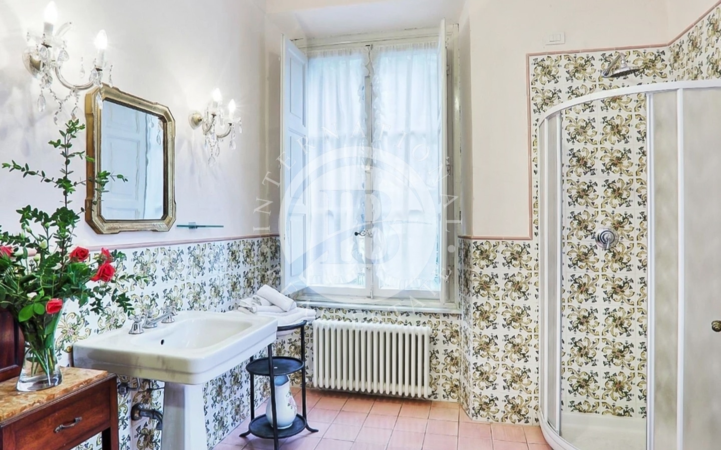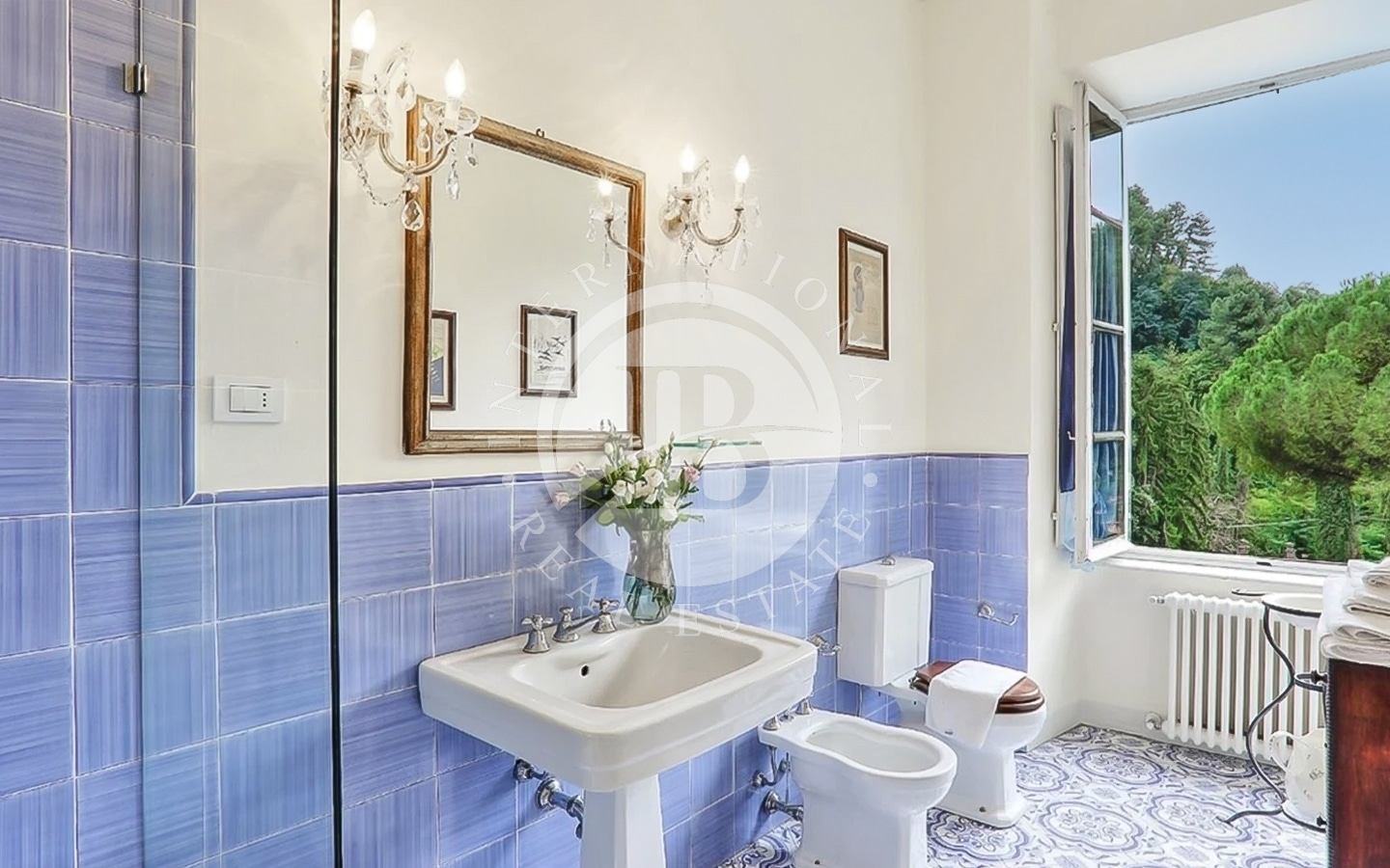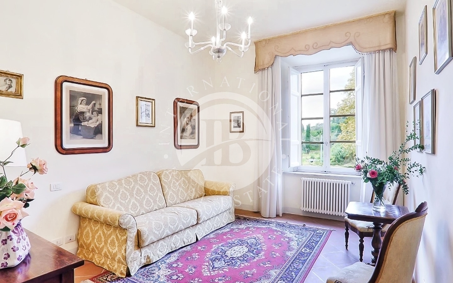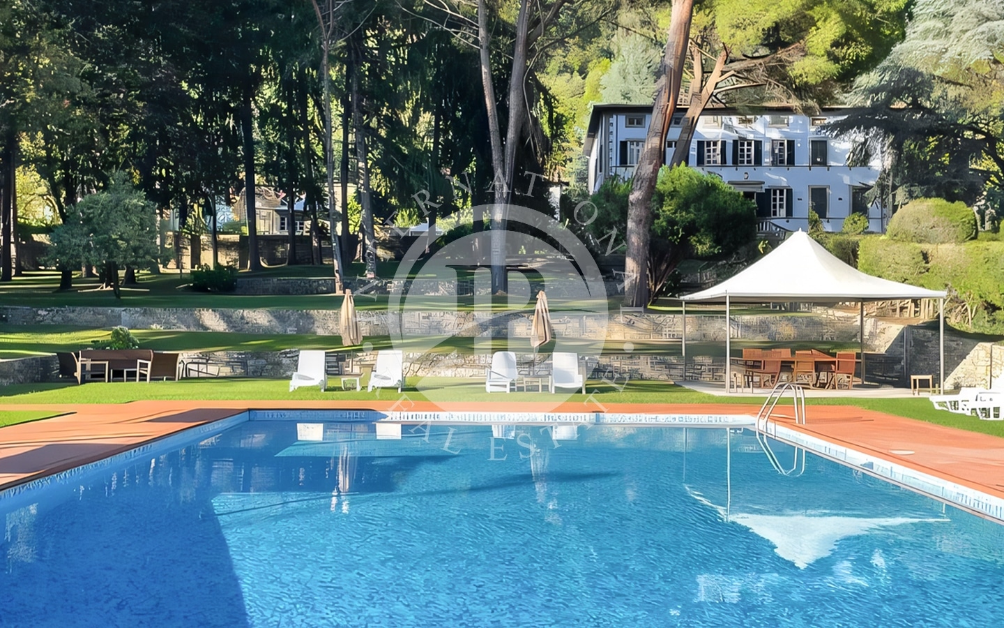 L’intera proprietà è circondata da 1.2 ha di terreno, prevalentemente giardino all’italiana e che ospita una piscina e un campo da tennis.