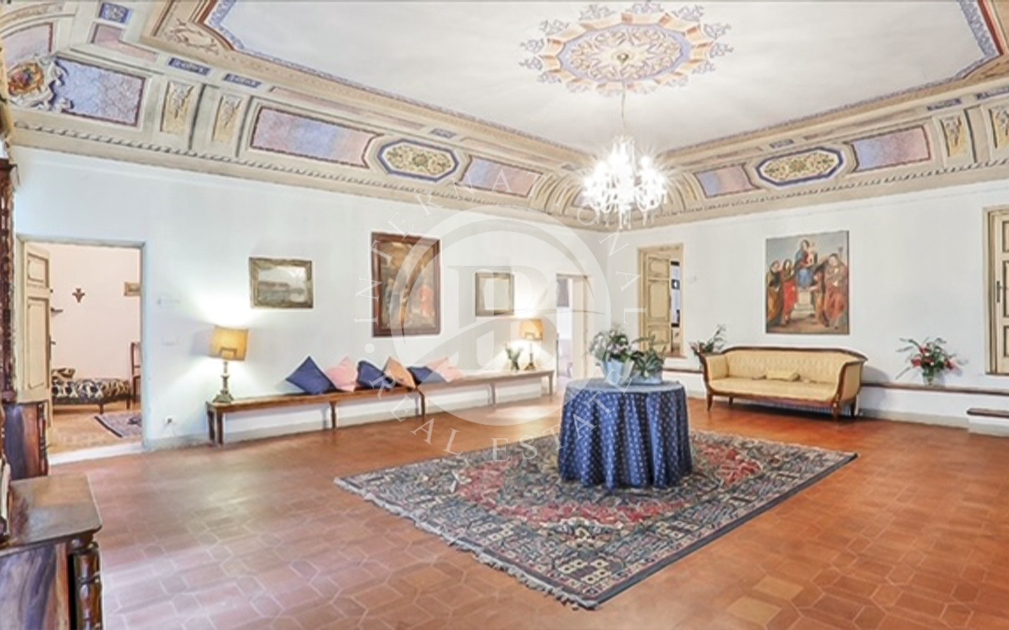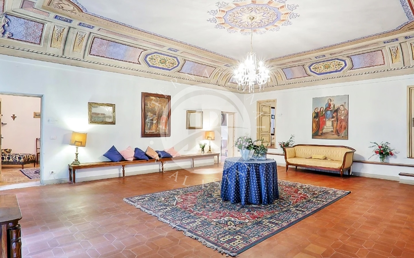 Troviamo infatti un ampio salone a piano terra che introduce a stanze adibite a soggiorni e studi, tutte affrescate e cariche di fascino.