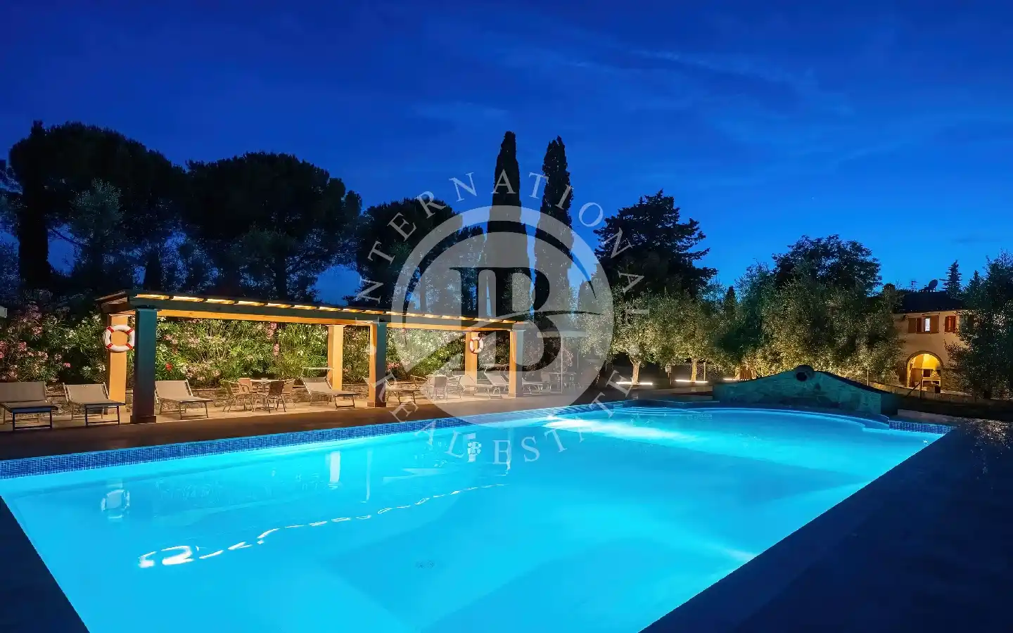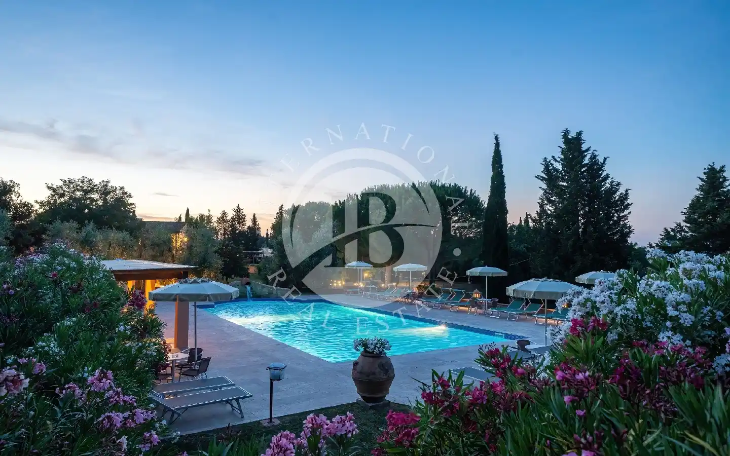 Questo complesso residenziale è costituito da due distintive unità abitative, articolate nel seguente modo: il principale Rustico ospita al suo interno sei appartamenti, precisamente quattro bilocali di 50 mq ciascuno e due trilocali di 75 mq ciascuno. Nel vecchio Fienile, completamente ristrutturato e arredato nel rispetto delle antiche architetture contadine, troviamo due quadrilocali di 80 mq ciascuno. Questi ultimi, ideali per famiglie numerose e gruppi di amici desiderosi di condividere spazi in totale privacy, offrono un'atmosfera accogliente e autentica. Il complesso immobiliare è immerso in un giardino di 6.500 mq, arricchito da oleandri e ulivi, dove emerge in posizione panoramica una magnifica piscina di notevoli dimensioni (20 x 8), dotata di un ampio solarium attrezzato e una zona relax con idromassaggio. Ogni appartamento gode di un gazebo con barbecue riservato, mentre il parcheggio per le auto è coperto. L'edificio principale rappresenta un tipico casale toscano risalente al 1800, caratterizzato da elementi originali come il pavimento in cotto, le travi in legno e il camino a legna, che conferiscono un'atmosfera confortevole e autentica all'ambiente. Il complesso è dotato di impianto di riscaldamento e condizionamento, e dispone di pannelli fotovoltaici da 10 Kw, garantendo una gestione moderna ed efficiente dell'energia.