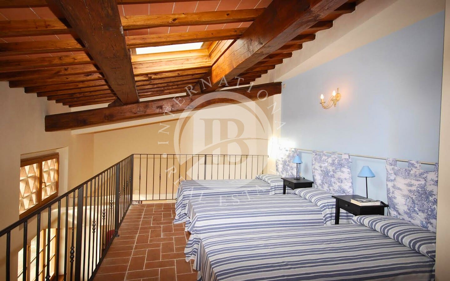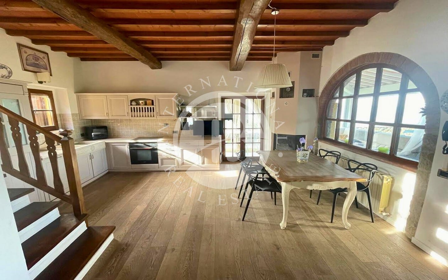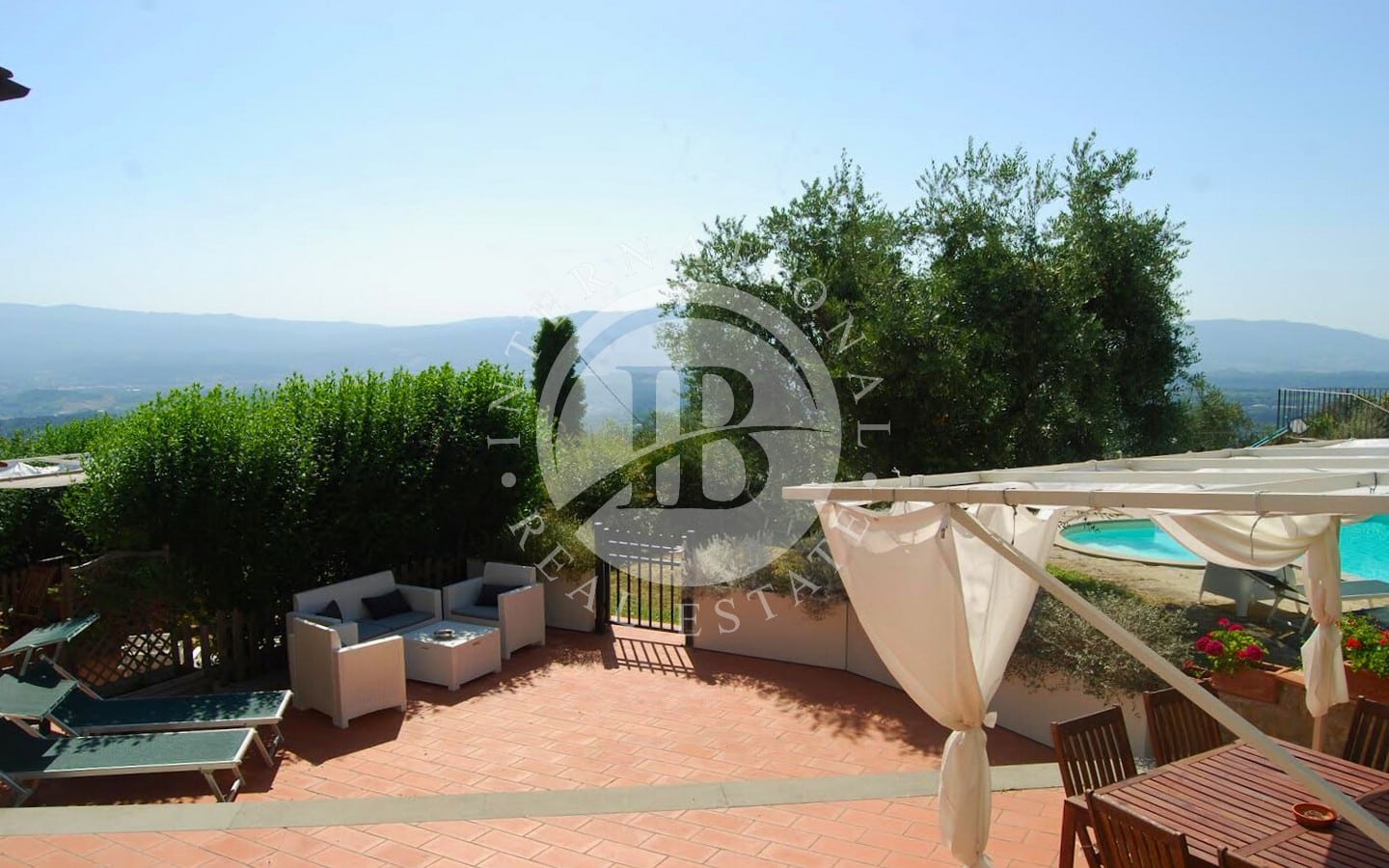 The 6 flats offer a total of 9 bedrooms and 8 bathrooms, each with a splendid panoramic view. Guests can enjoy a wonderful park with olive groves and vineyards, perfect for relaxing outdoors. The 12x6-metre swimming pool is fully equipped with sun loungers, parasols, armchairs and tables, and overlooks a large solarium of about 1000 square metres with a view of the magnificent Arno valley. The property also includes half a hectare of land with about 90 olive trees, fruit trees, woods and vineyards.