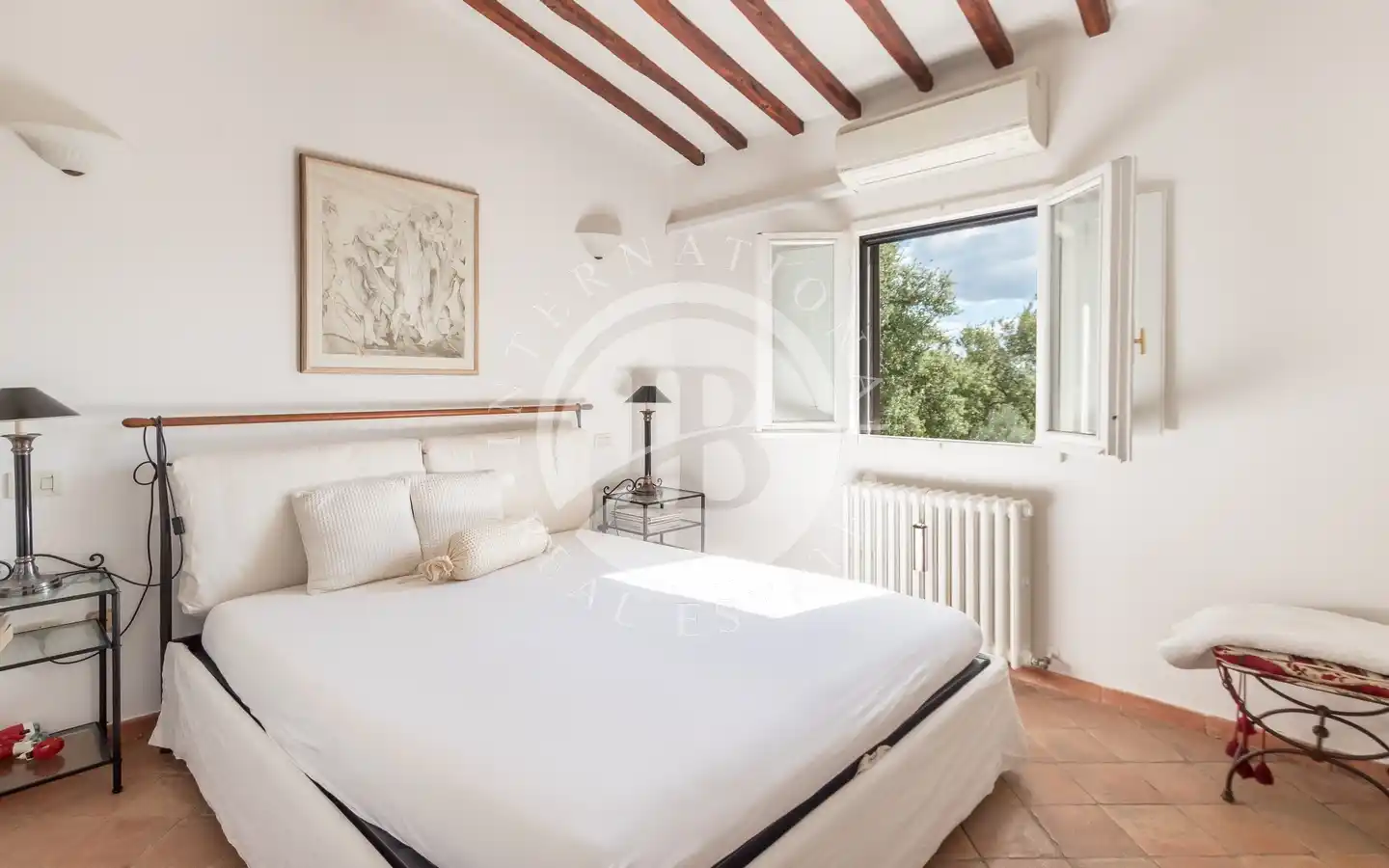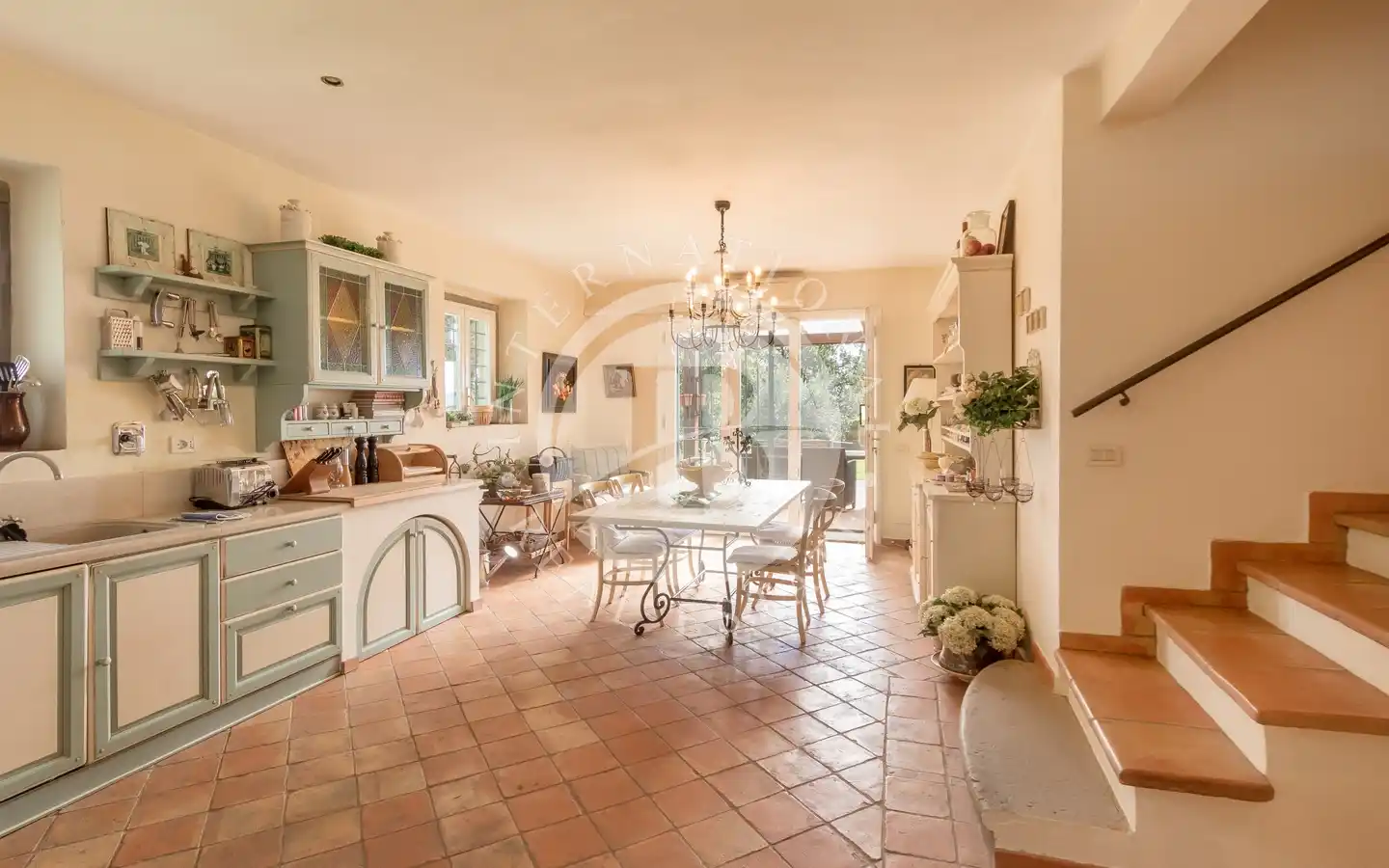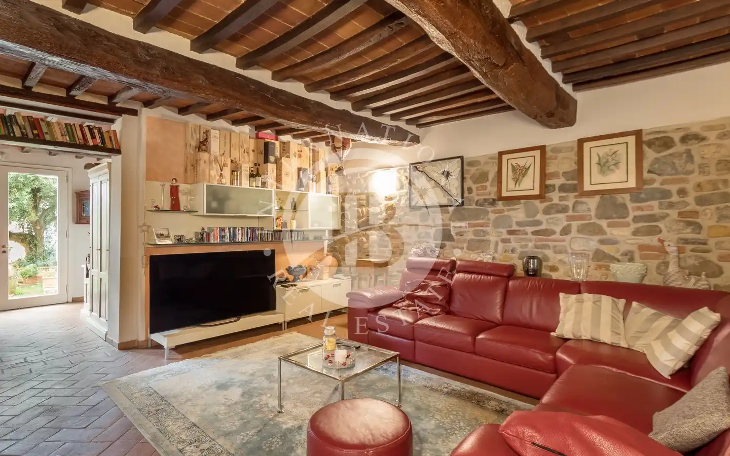Ulkotiloissa on rentoutumiseen ja vapaa-aikaan tarkoitettuja alueita: puutarhoja ja puistoja, sisäuima-allas vesihieronnalla, ulkouima-allas, tenniskenttä, grilleillä ja puu-uunilla varustettuja alueita, varjoisia pergoloita ja nurkkia, joissa voi nauttia lounasta. Maa-alueilla on oliivitarhoja, viinitarhoja, metsää ja peltoa, mikä luo täydellisen tasapainon luonnon, tuottavuuden ja maiseman kauneuden välille. Viinikellari on valmiina paikan päällä tuotettujen viinien säilytykseen, ihanteellinen viinin ystäville.