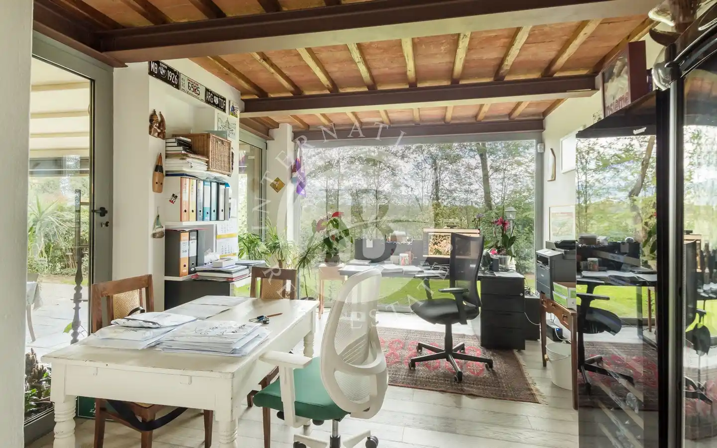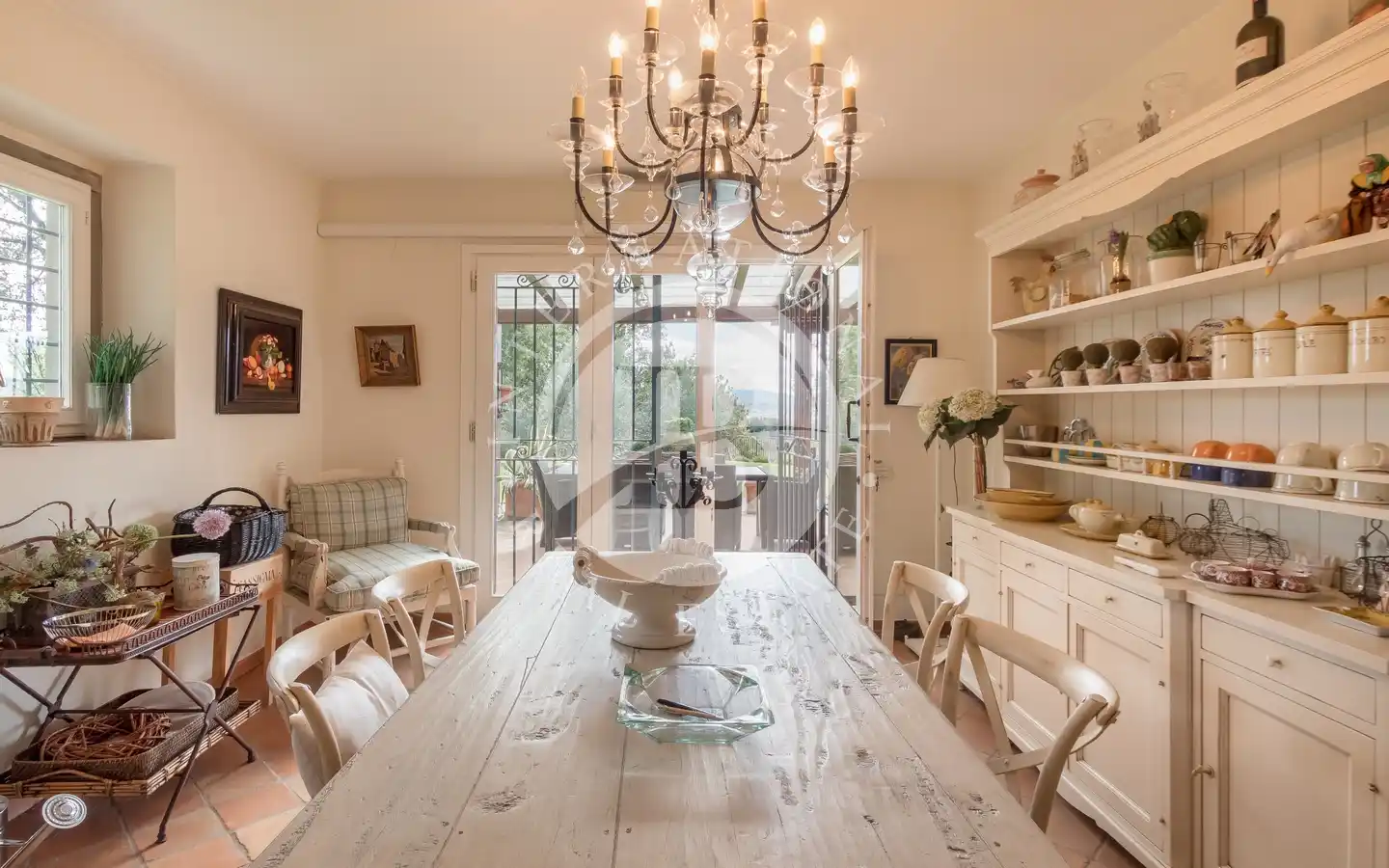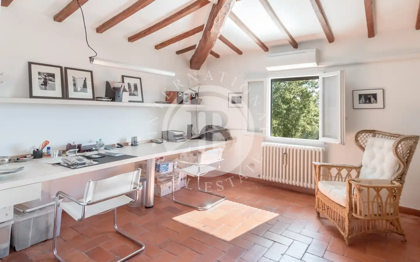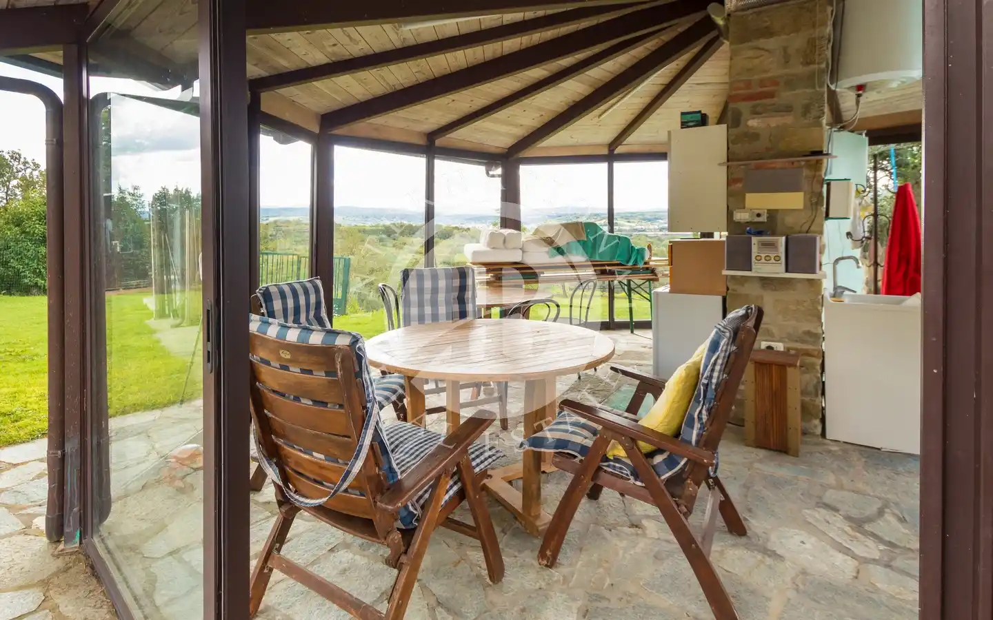 Ulkotiloissa on rentoutumiseen ja vapaa-aikaan tarkoitettuja alueita: puutarhoja ja puistoja, sisäuima-allas vesihieronnalla, ulkouima-allas, tenniskenttä, grilleillä ja puu-uunilla varustettuja alueita, varjoisia pergoloita ja nurkkia, joissa voi nauttia lounasta. Maa-alueilla on oliivitarhoja, viinitarhoja, metsää ja peltoa, mikä luo täydellisen tasapainon luonnon, tuottavuuden ja maiseman kauneuden välille. Viinikellari on valmiina paikan päällä tuotettujen viinien säilytykseen, ihanteellinen viinin ystäville.