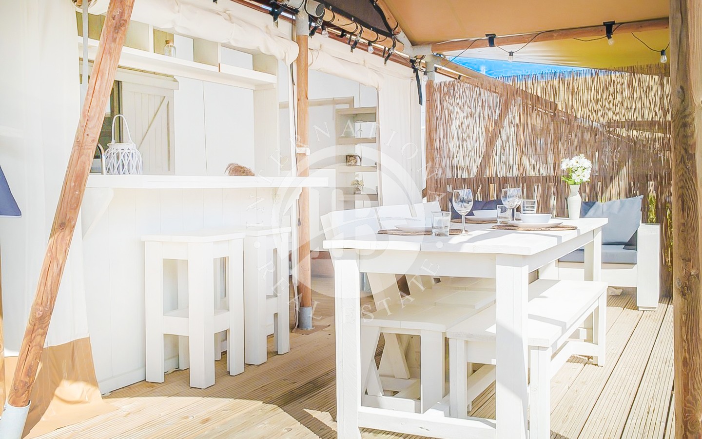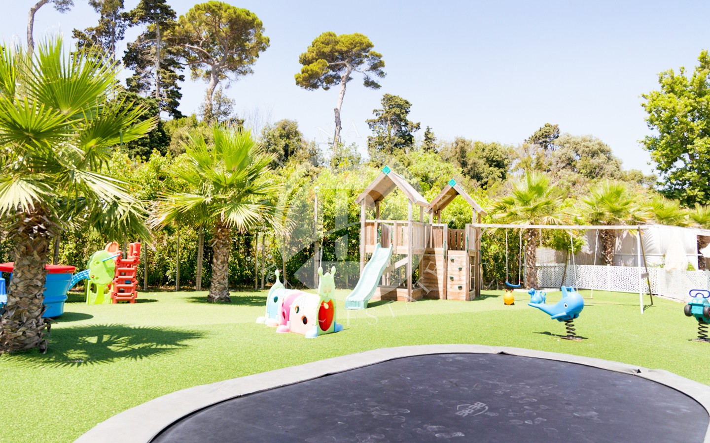 Lomakeskus on täysin varustettu korkeatasoista majoitusta varten. Siellä on vastaanottoalue, varastoja, yksityinen asunto johtoa varten, kauppa, jossa myydään rantavaatteita ja -vaatteita, lämmitetty uima-allas, jossa on hierontasuihkut ja vesiputous, solarium, jossa on ylellisiä aurinkotuoleja, mukaan lukien kattopatjoja, rantabaari, jossa on oleskelualue, kalustettu puutarha, jossa on rentoutumisalueita, ravintola, jossa on baari suoraan rannalla, jalkapallokenttä, pöytätennispöytä, leikkikenttä ja kaksi latausasemaa sähköautoja varten.