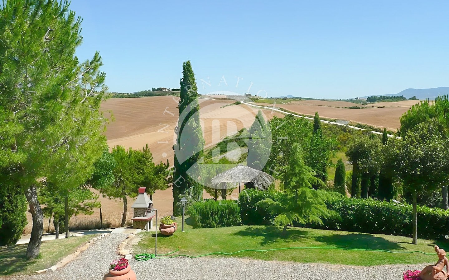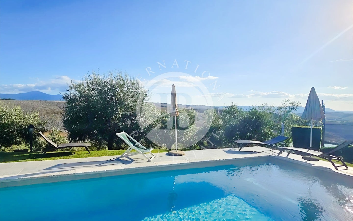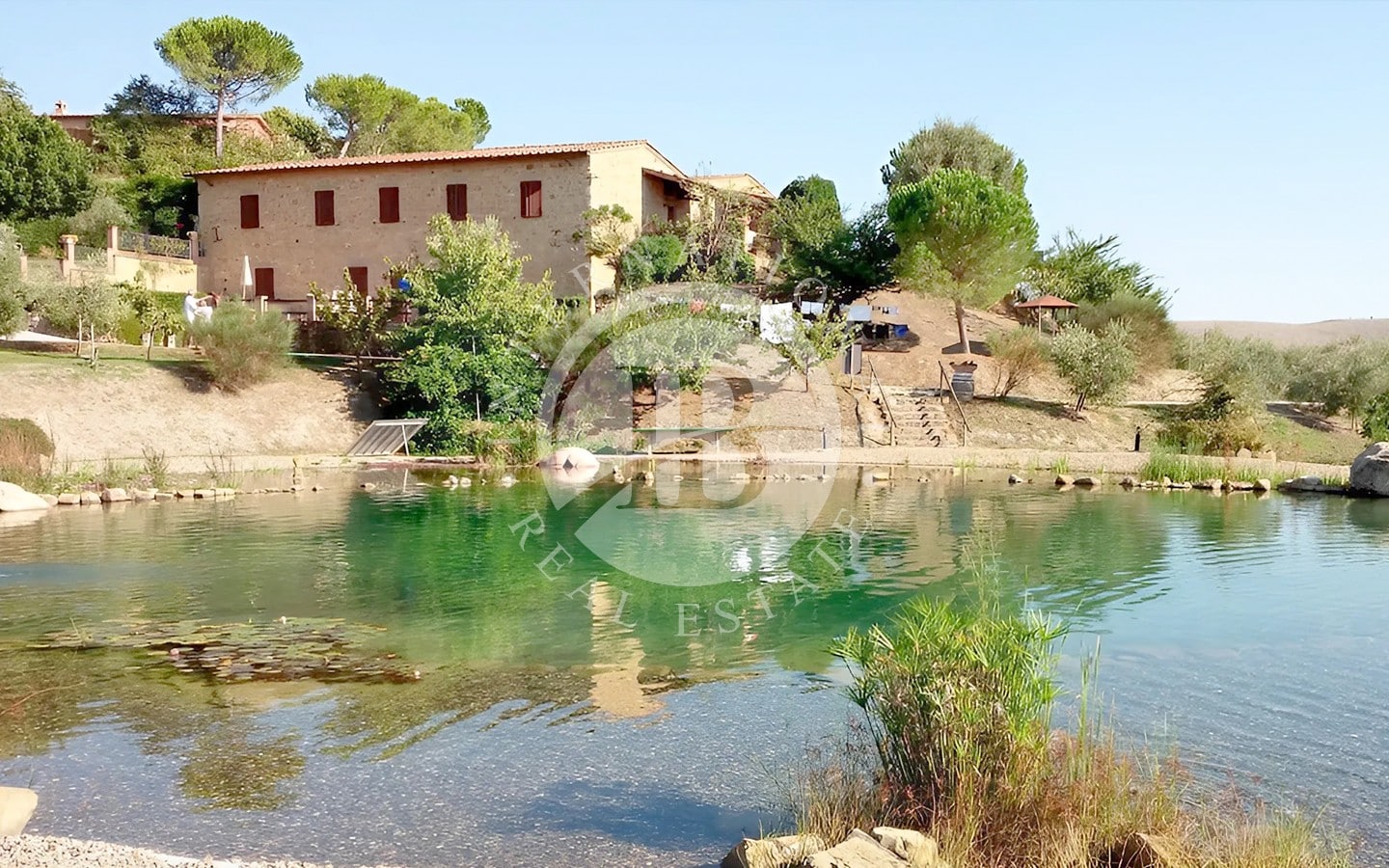 La tenuta si estende su 106 ettari di terreno, con 104 ettari destinati a seminativo e 2 ettari a uliveto, offrendo uno scenario naturale di rara bellezza. Il parco privato è attraversato da sentieri che conducono a un incantevole lago, perfetto per passeggiate rilassanti. Due piscine, circondate da un’area prendisole ben attrezzata, sono il luogo ideale per godere delle calde giornate estive. La proprietà è accessibile tramite una strada privata splendidamente mantenuta, che garantisce estrema privacy e comodità.