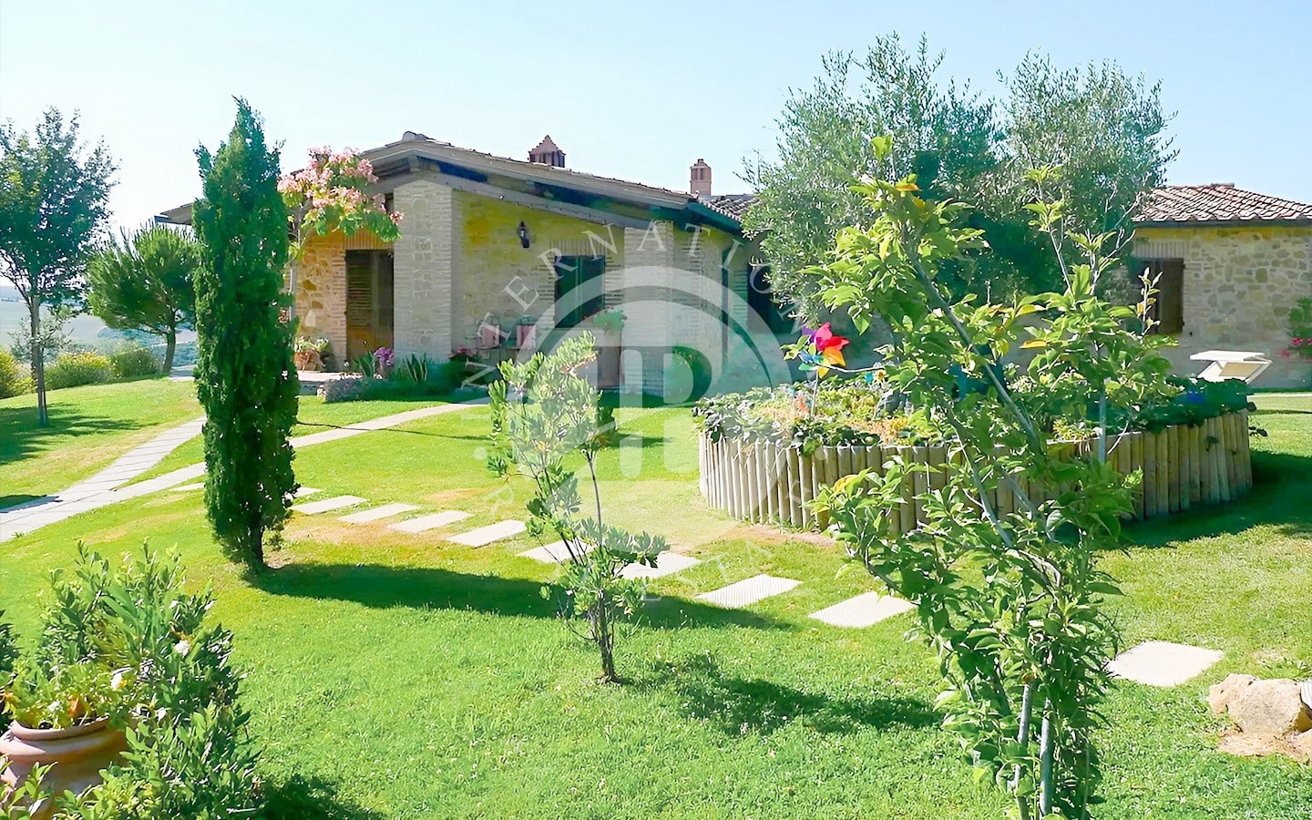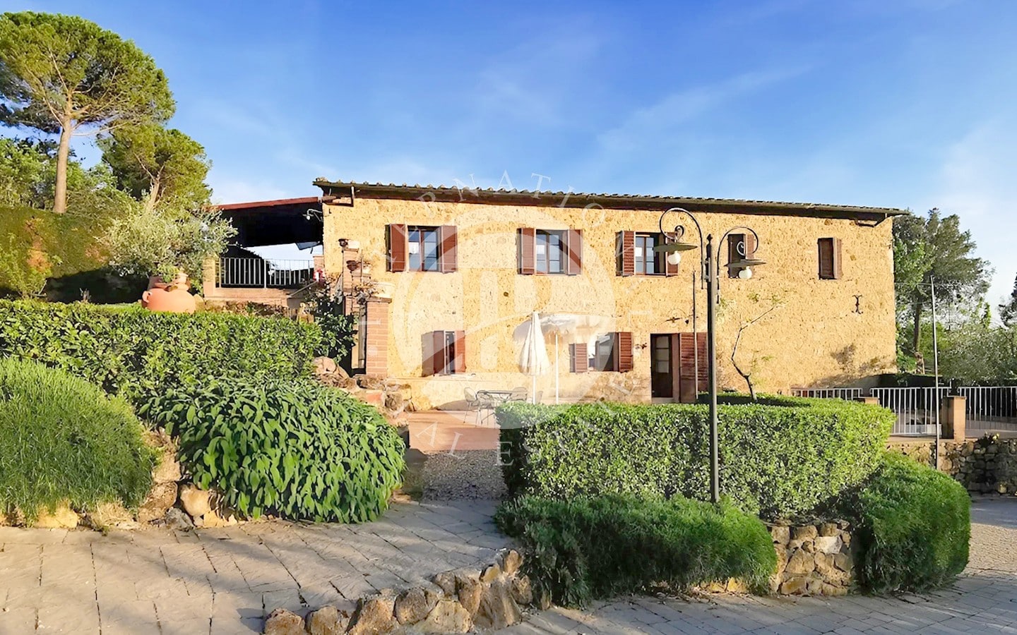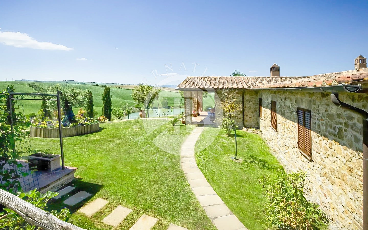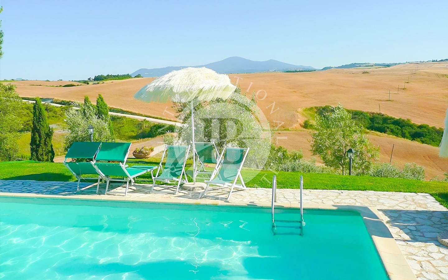 La tenuta si estende su 106 ettari di terreno, con 104 ettari destinati a seminativo e 2 ettari a uliveto, offrendo uno scenario naturale di rara bellezza. Il parco privato è attraversato da sentieri che conducono a un incantevole lago, perfetto per passeggiate rilassanti. Due piscine, circondate da un’area prendisole ben attrezzata, sono il luogo ideale per godere delle calde giornate estive. La proprietà è accessibile tramite una strada privata splendidamente mantenuta, che garantisce estrema privacy e comodità.