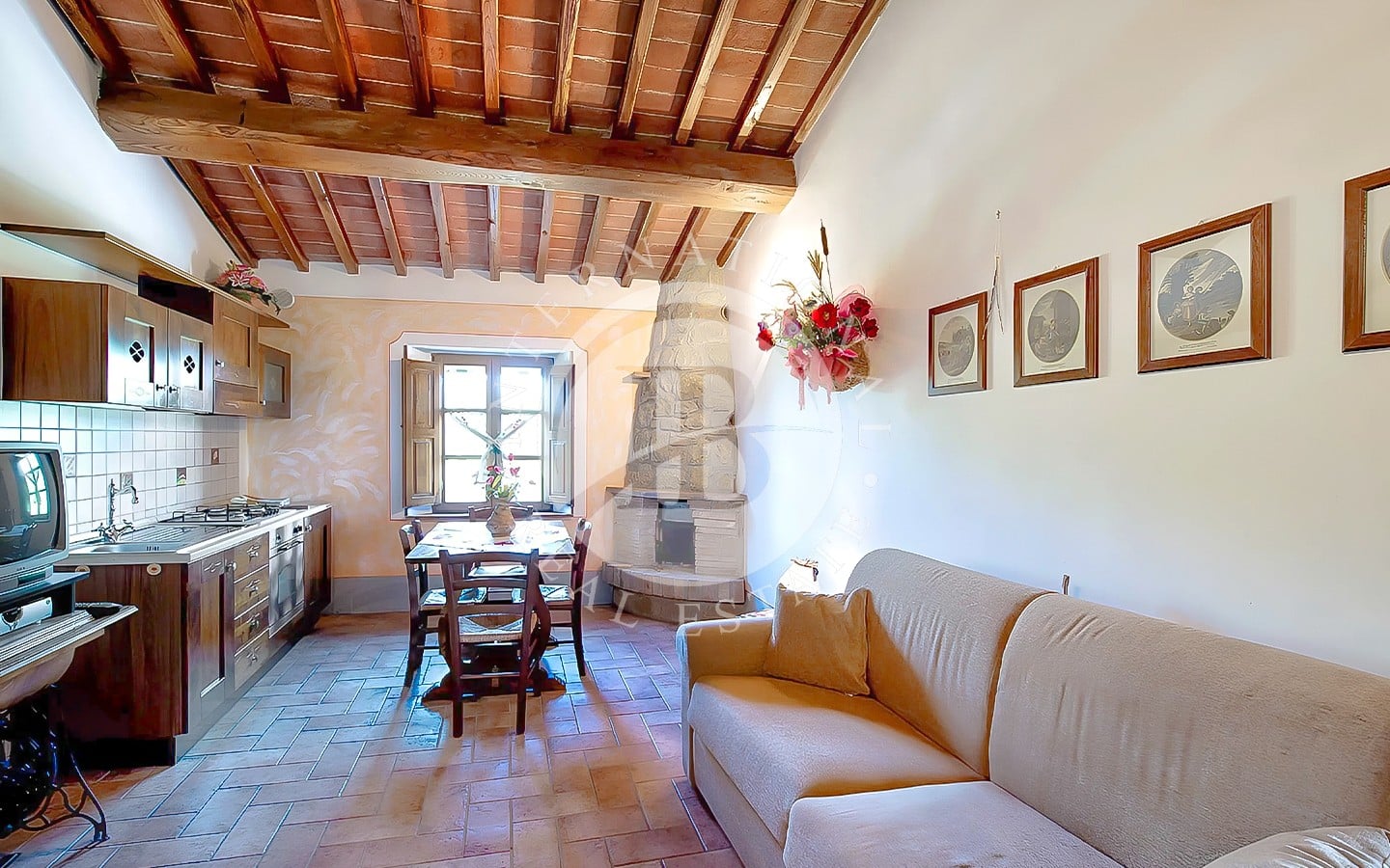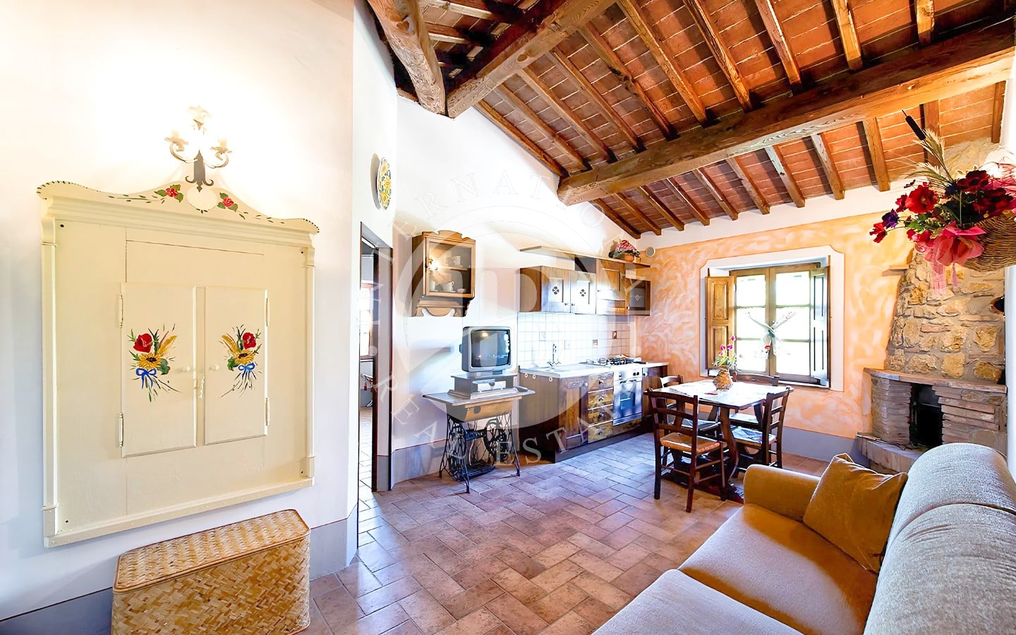 Gli interni di questo prestigioso resort, risalente al 1700 e sapientemente ristrutturato, riflettono il fascino autentico dello stile toscano. Tre edifici residenziali, per un totale di 1.500 mq, ospitano 18 eleganti appartamenti. Ogni unità è caratterizzata da ampi spazi, con soggiorni dotati di camino, sale da pranzo accoglienti e cucine completamente attrezzate. I pavimenti in cotto, le travi in legno a vista e le grandi finestre che si affacciano sulla campagna creano un’atmosfera calda e sofisticata. Le 25 camere da letto e i 20 bagni garantiscono il massimo del comfort e della funzionalità, ideali per accogliere ospiti in cerca di relax e charme.