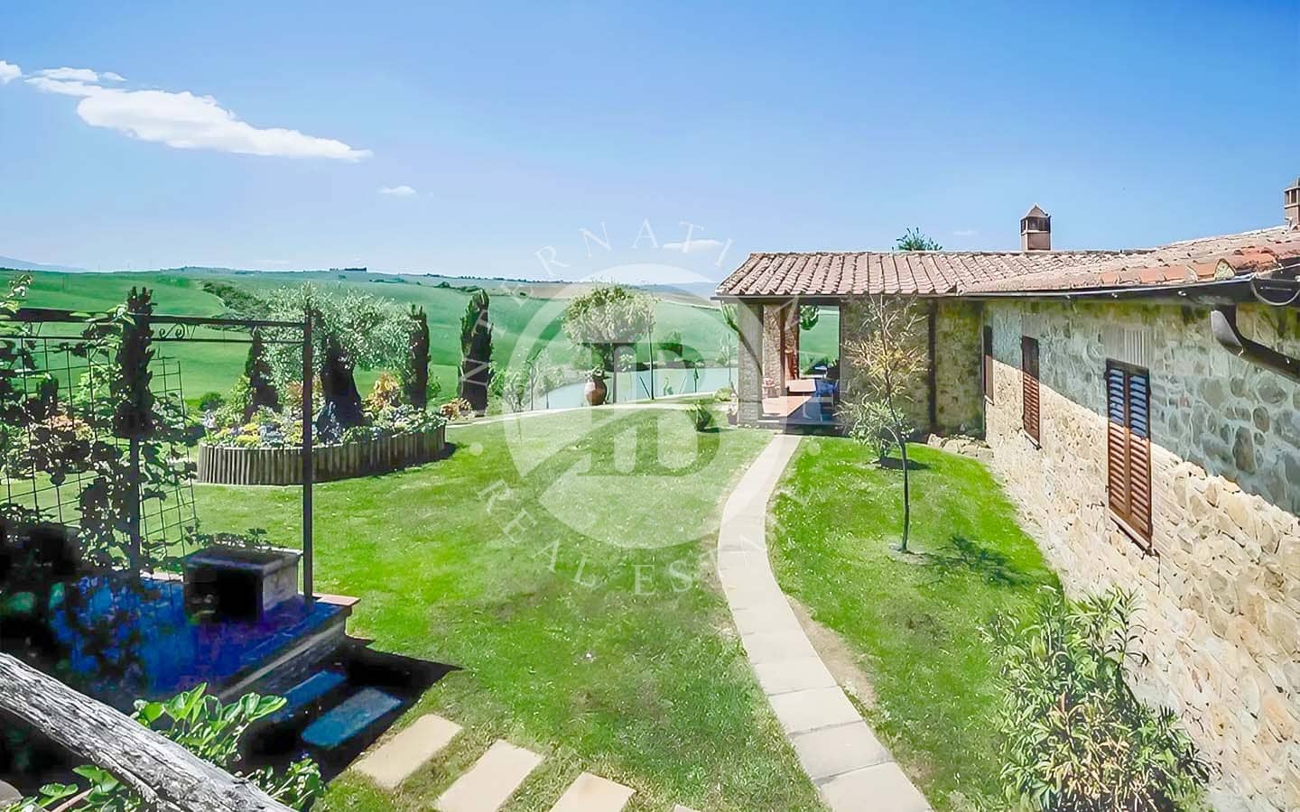 Ylellinen maalaistalo, josta on panoraamanäkymät Val D'Orciaan