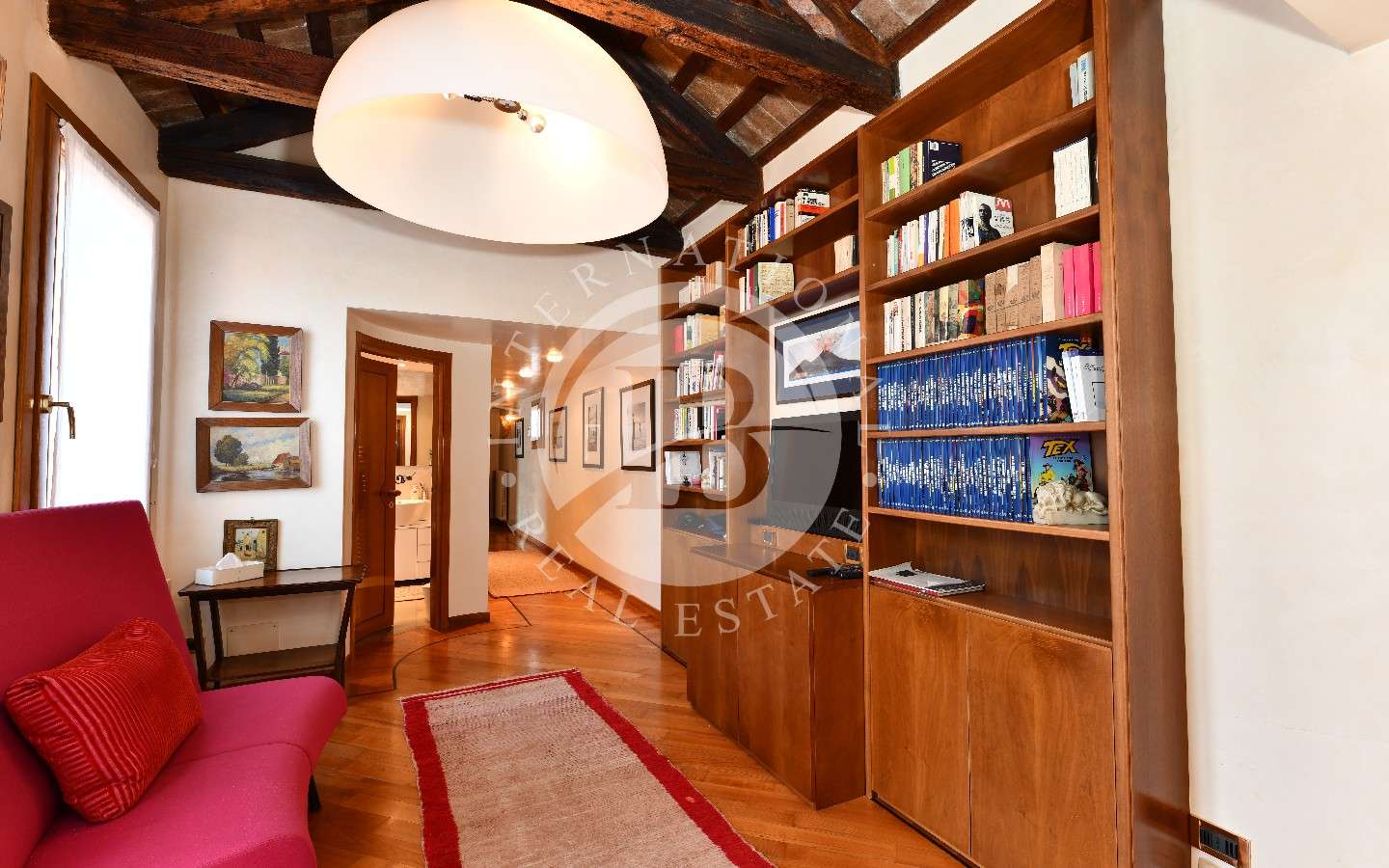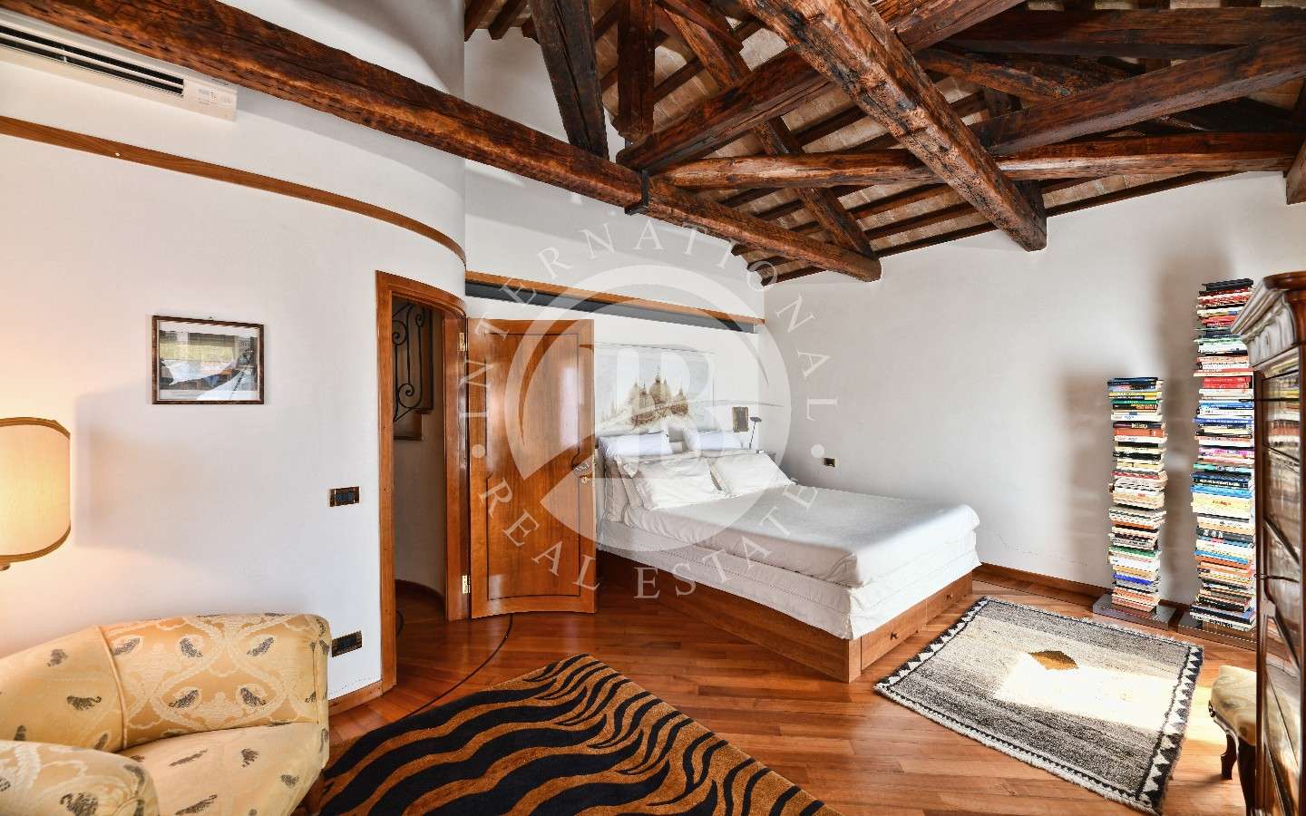 Asuinpaikan ulkoasu heijastaa sen historiallista arvovaltaa kiehtovilla arkkitehtonisilla yksityiskohdilla. Asuinterassi tarjoaa rauhallisuuden keidas, josta on näkymät Venetsian katoille, kun taas ullakkoparvi lisää tilaa ja monipuolisuutta.