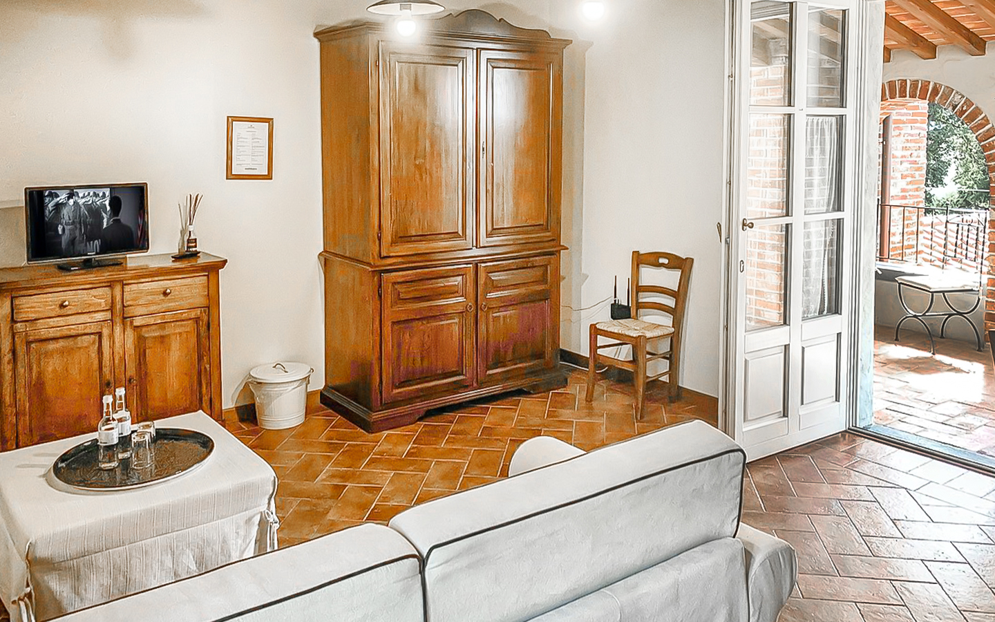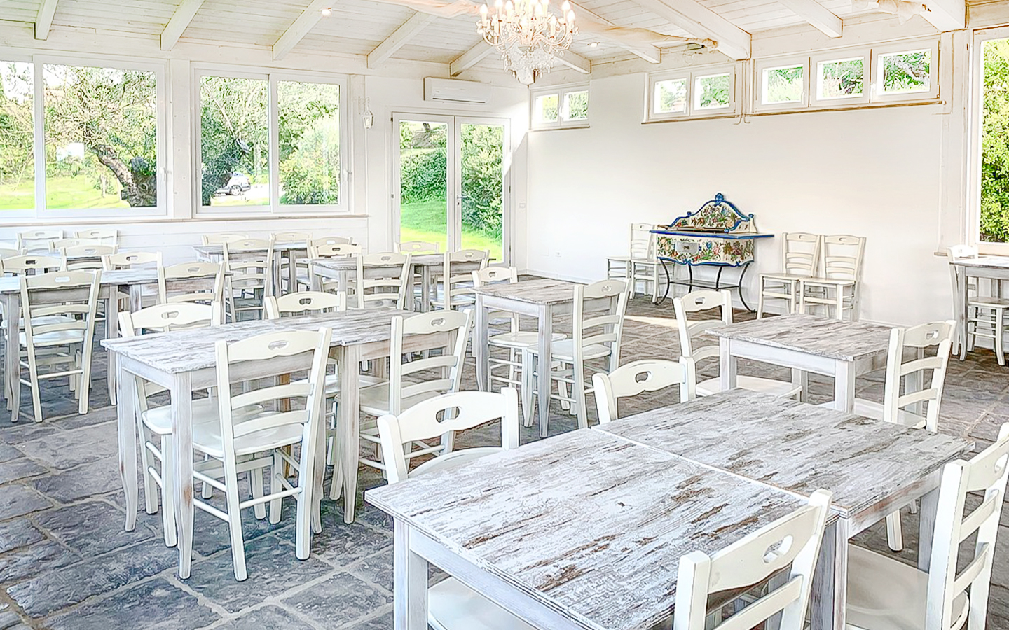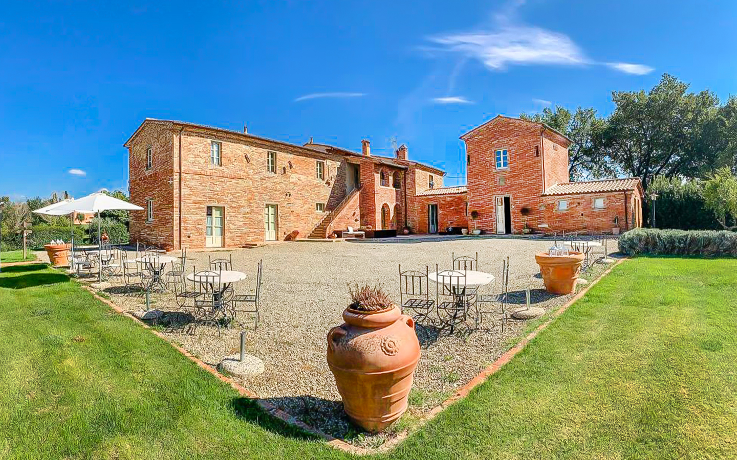 La proprietà è composta da 9 appartamenti indipendenti, ciascuno finemente arredato e dotato di ogni comfort. Gli interni, spaziosi e luminosi, vantano ampie vetrate che offrono una vista mozzafiato sul paesaggio circostante. La veranda in legno esterna, con la sua zona pranzo adiacente alla cucina professionale, è ideale per momenti conviviali e cene eleganti. L'intera proprietà, estesa su 6 ha di terreno, è stata progettata per garantire il massimo del comfort e della funzionalità, con aria condizionata in ogni ambiente per un clima perfetto tutto l'anno.
