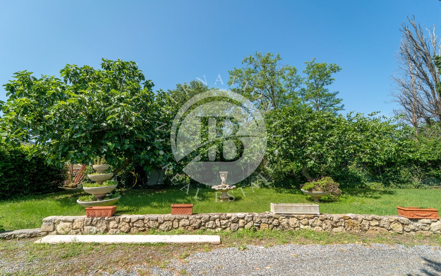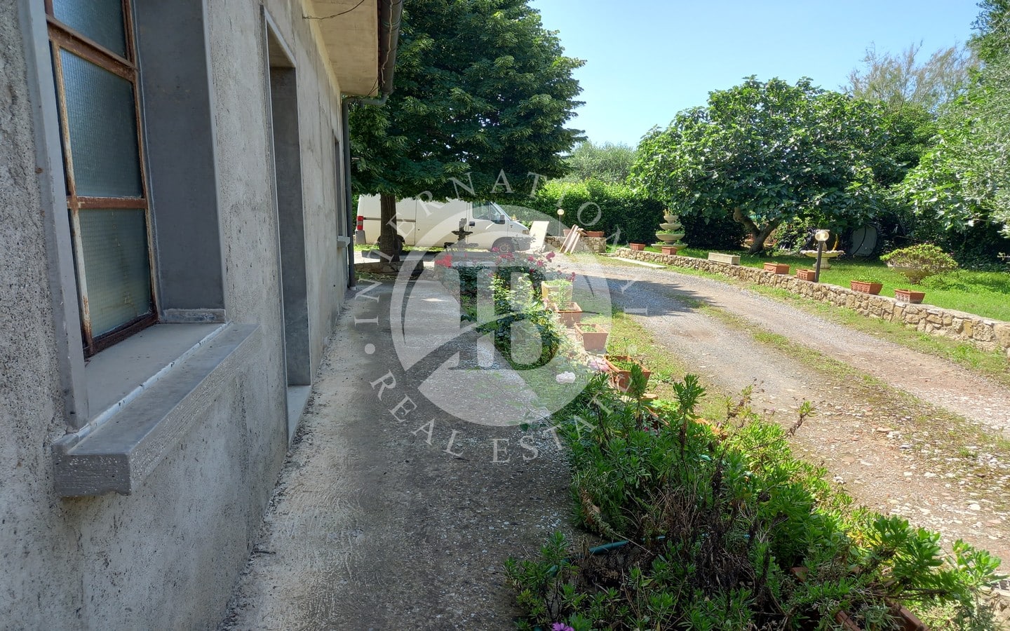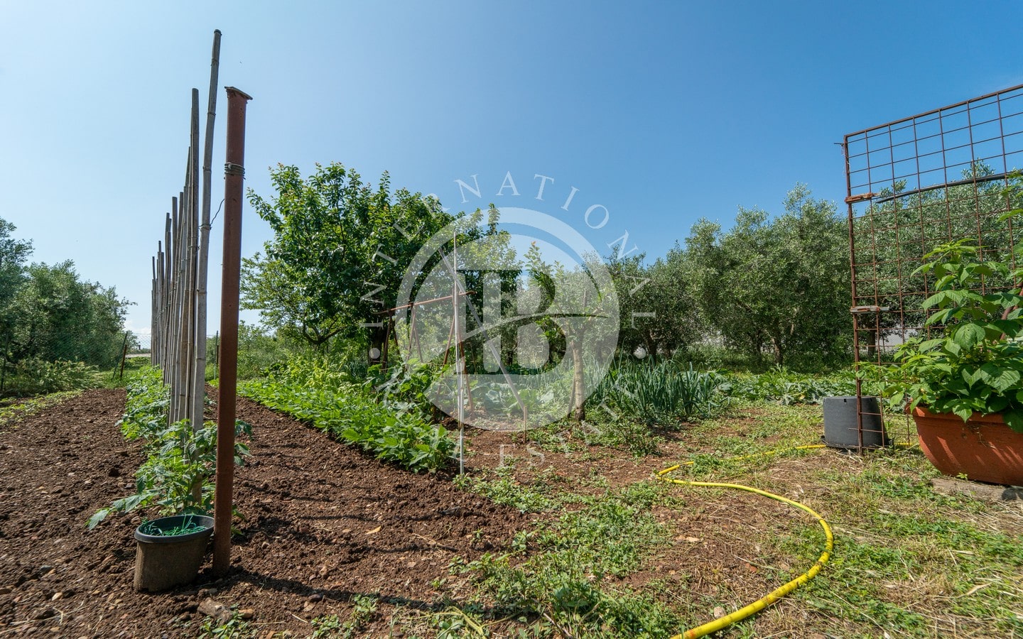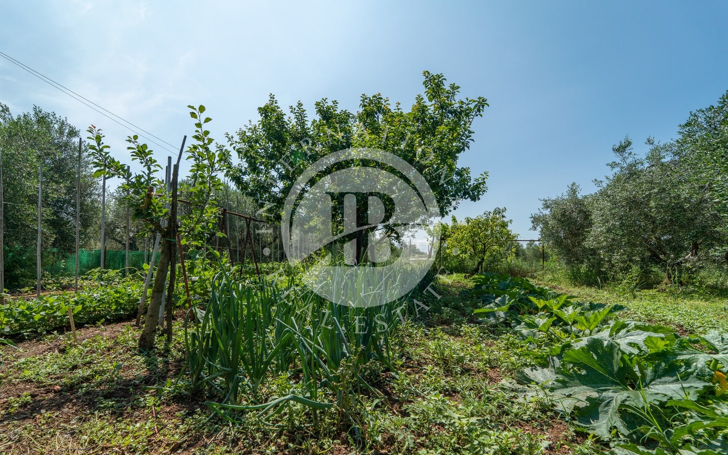 L'ensemble de la propriété est entouré d'un grand jardin, auquel on accède par un portail automatique directement depuis la route provinciale. Le tout est complété par un terrain adjacent, actuellement utilisé comme potager, enrichi d'arbres fruitiers, d'oliviers et d'un puits.