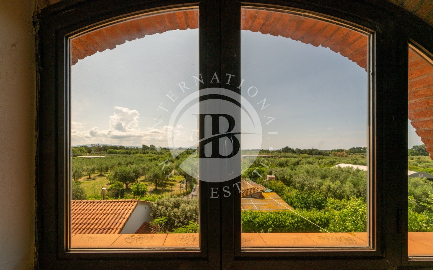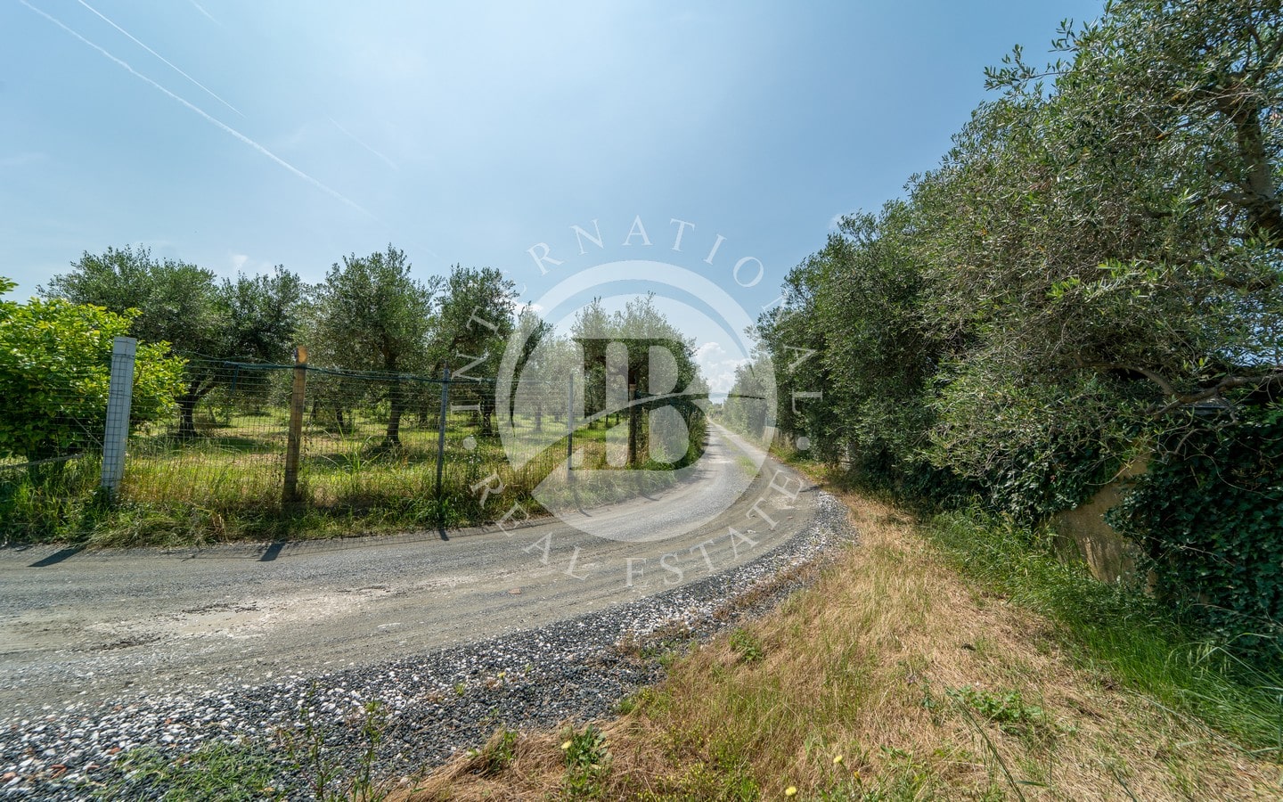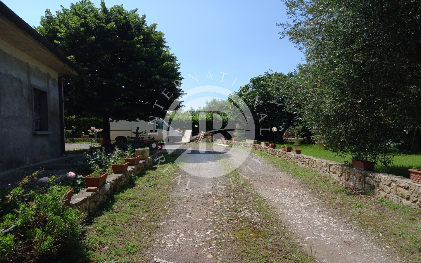 L'ensemble de la propriété est entouré d'un grand jardin, auquel on accède par un portail automatique directement depuis la route provinciale. Le tout est complété par un terrain adjacent, actuellement utilisé comme potager, enrichi d'arbres fruitiers, d'oliviers et d'un puits.