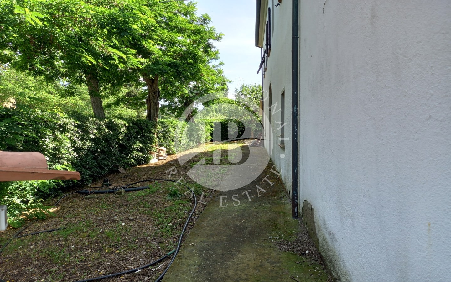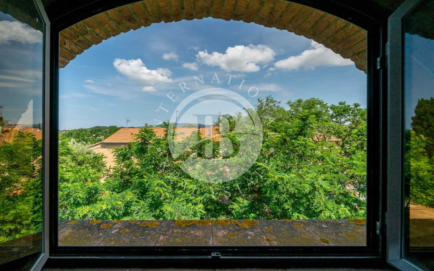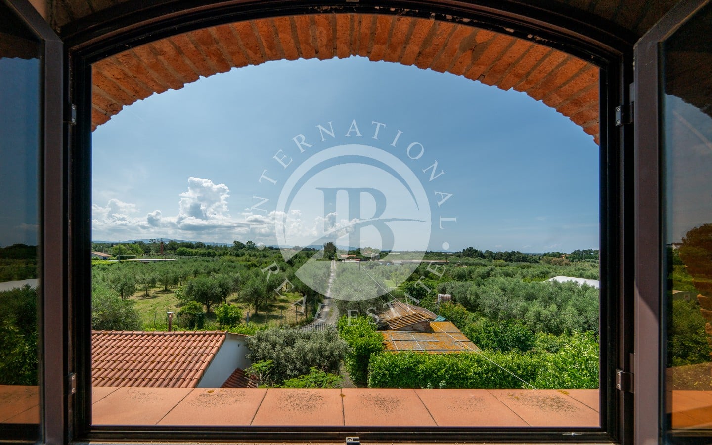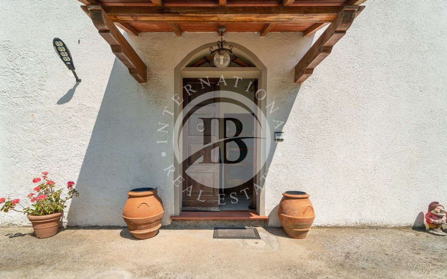 L'ensemble de la propriété est entouré d'un grand jardin, auquel on accède par un portail automatique directement depuis la route provinciale. Le tout est complété par un terrain adjacent, actuellement utilisé comme potager, enrichi d'arbres fruitiers, d'oliviers et d'un puits.
