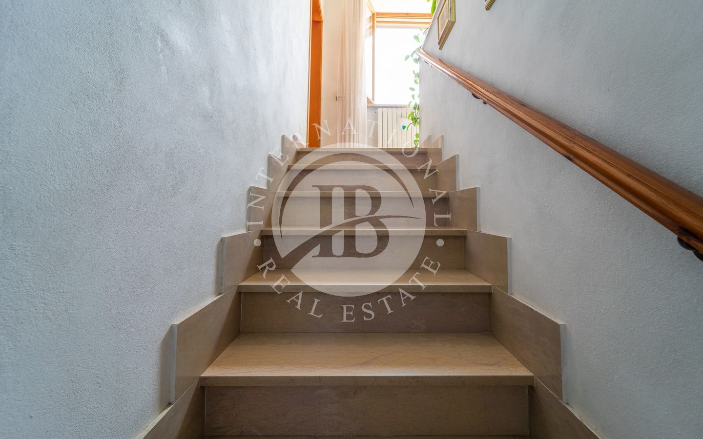 Le premier étage abrite la maison principale, composée d'un grand couloir, de cinq grandes pièces et d'une salle de bains. En montant plus haut, on accède au grenier, une pièce particulièrement lumineuse, agrémentée de hauts plafonds avec poutres en bois et d'une vue panoramique s'étendant jusqu'à la mer.
