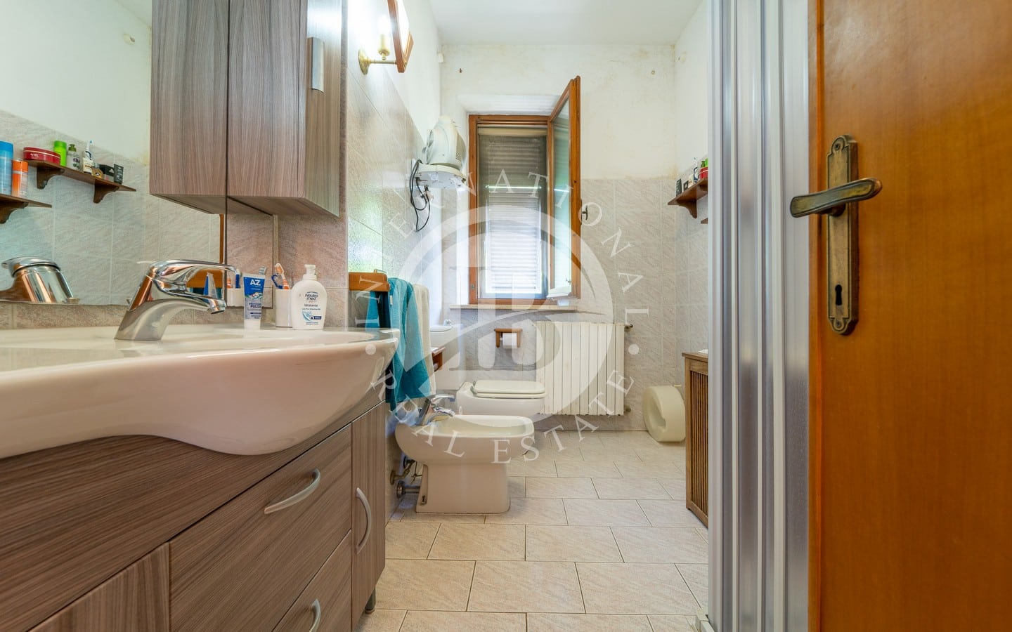 Le chauffage des deux bâtiments est indépendant et fonctionne au GPL. La propriété couvre une superficie totale d'environ 2400 m² et comprend, outre le bâtiment principal, une dépendance d'environ 60 m² avec un hall d'entrée, une cuisine, deux chambres, une salle de bains et un débarras.