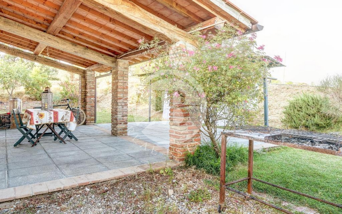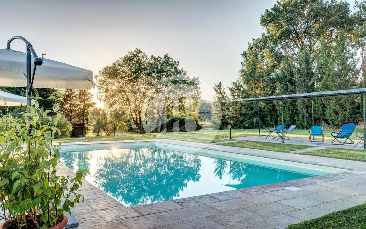 Circondato da 4.500 mq di giardino ben curato, il casale è arricchito da una piscina 11,5 x 5,5 m, perfetta per godere della tranquillità del paesaggio collinare toscano. La piscina è incorniciata da pergolati e spazi esterni arredati, ideali per pranzi all’aperto e momenti di relax. Il terreno di 23 ettari comprende uliveti con circa 150 piante, seminativo e una piccola area boschiva, offrendo la possibilità di produrre olio extravergine di oliva di qualità o coltivare altre varietà agricole. La proprietà è anche dotata di un ampio annesso agricolo di circa 280 mq, adibito a rimessaggio, perfetto per attività legate all’agricoltura o come deposito.