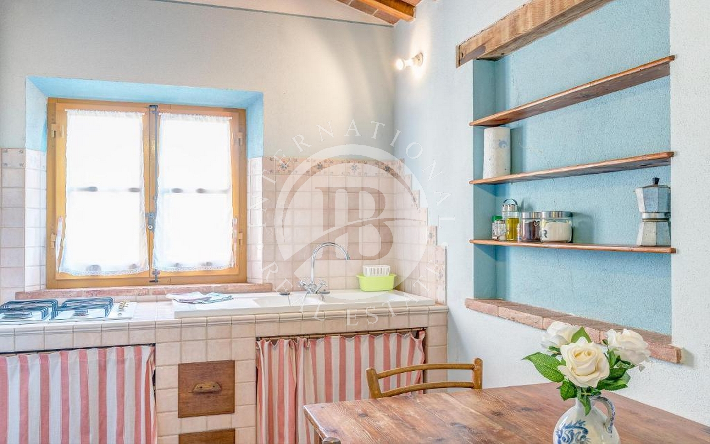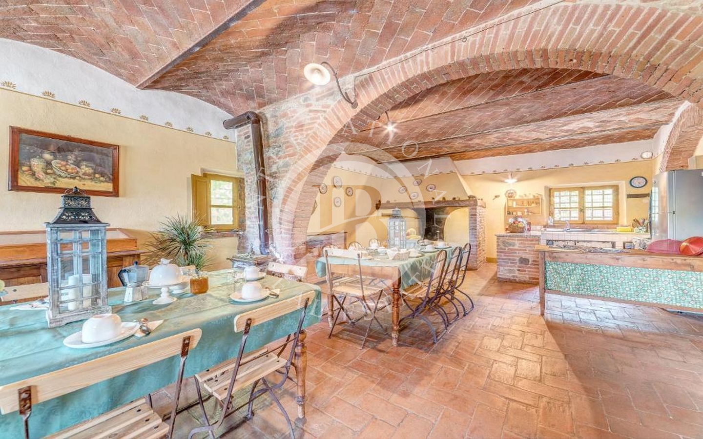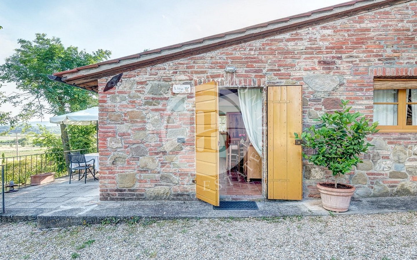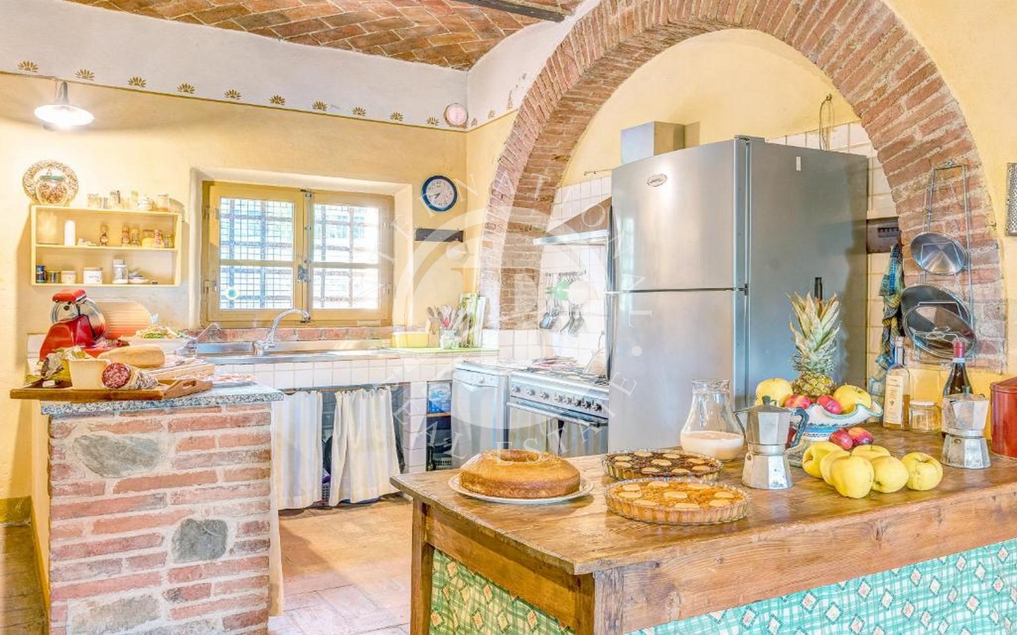 Il casale principale, di circa 350 mq, si sviluppa su due livelli. Al piano terra si trova un appartamento indipendente, perfetto per accogliere ospiti o come casa vacanze, dotato di soggiorno con angolo cottura, camera matrimoniale e bagno. Nella parte restante del piano terra si trovano un ampio salone con cucina, lavanderia e locale tecnico. Il piano superiore ospita l’abitazione padronale, caratterizzata da un grande soggiorno con camino d’epoca, una cucina abitabile, tre camere da letto e due bagni. Il restauro, effettuato con materiali di alta qualità, ha mantenuto la bellezza rustica della tradizione toscana, con travi in legno a vista, pavimenti in cotto e dettagli originali dell’Ottocento, creando un’atmosfera di calore e raffinatezza.