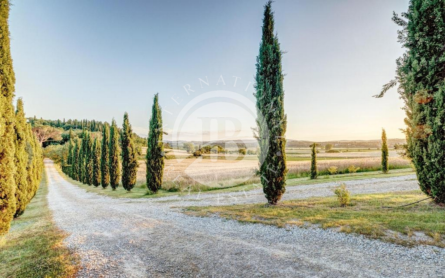 Situata nel comune di Foiano della Chiana, in provincia di Arezzo, questa villa si trova in una zona tranquilla ma ben collegata, che consente di raggiungere facilmente le principali città della Toscana. La sua posizione privilegiata tra le dolci colline offre uno scenario di rara bellezza, mentre la vicinanza con importanti località come Arezzo, Cortona, Montepulciano e Siena la rende una scelta perfetta per chi desidera vivere in un contesto autentico, ricco di storia e cultura.