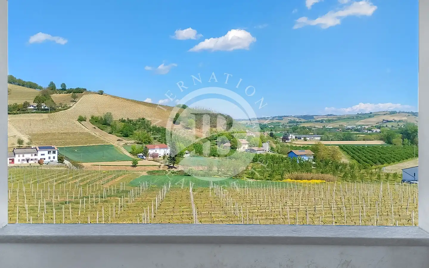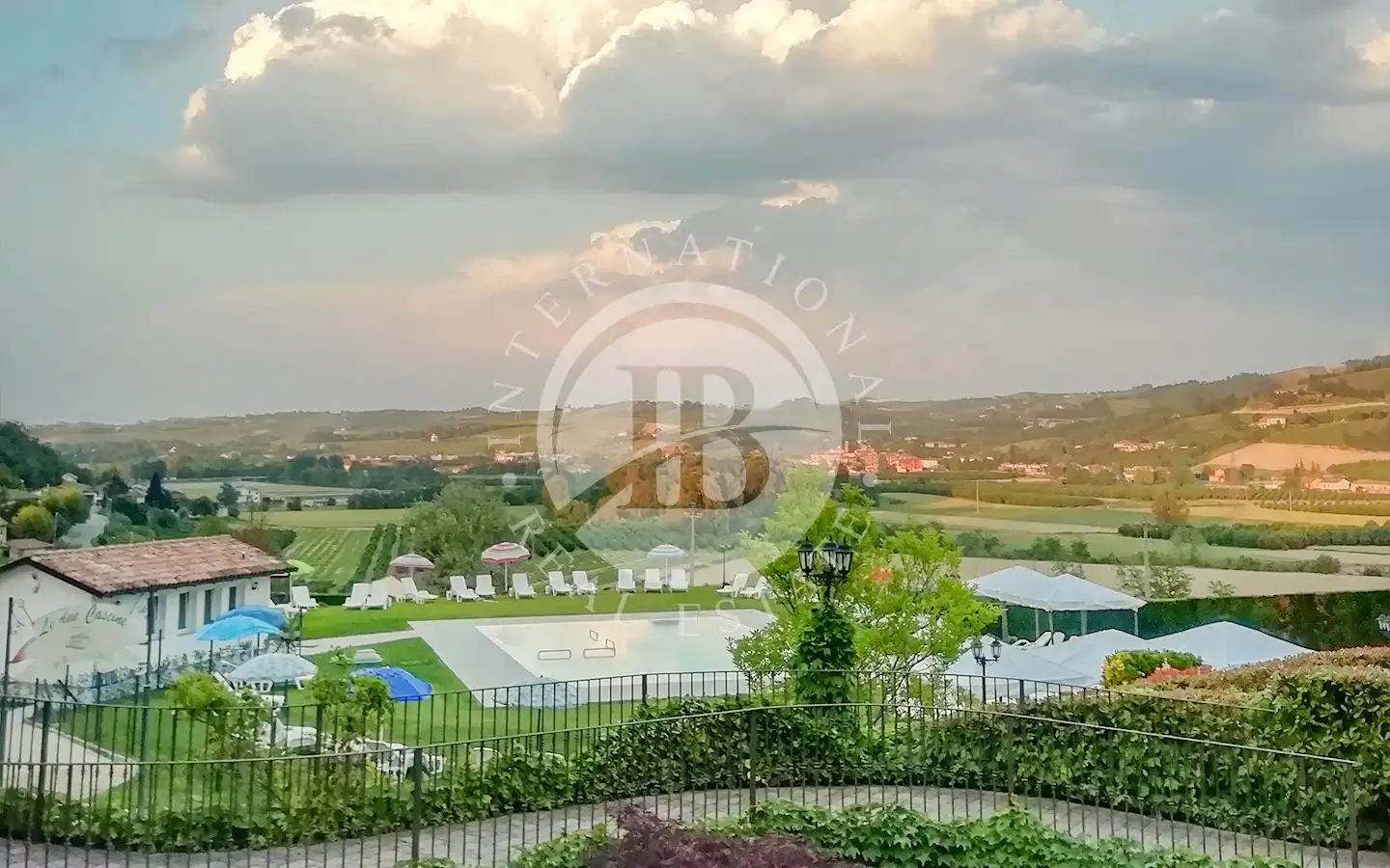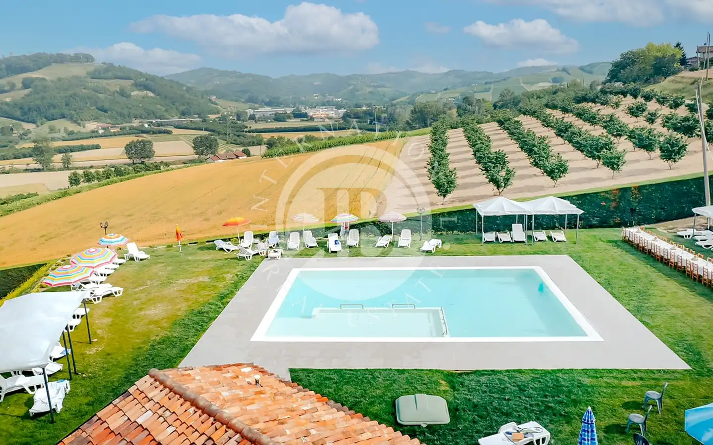All'esterno, un elegante dehor regala una vista spettacolare sulle colline del Monferrato, mentre la piscina è immersa nel verde di un giardino. Sul retro della proprietà si trovano i vigneti, di Barbera DOCG e di Chardonnay.