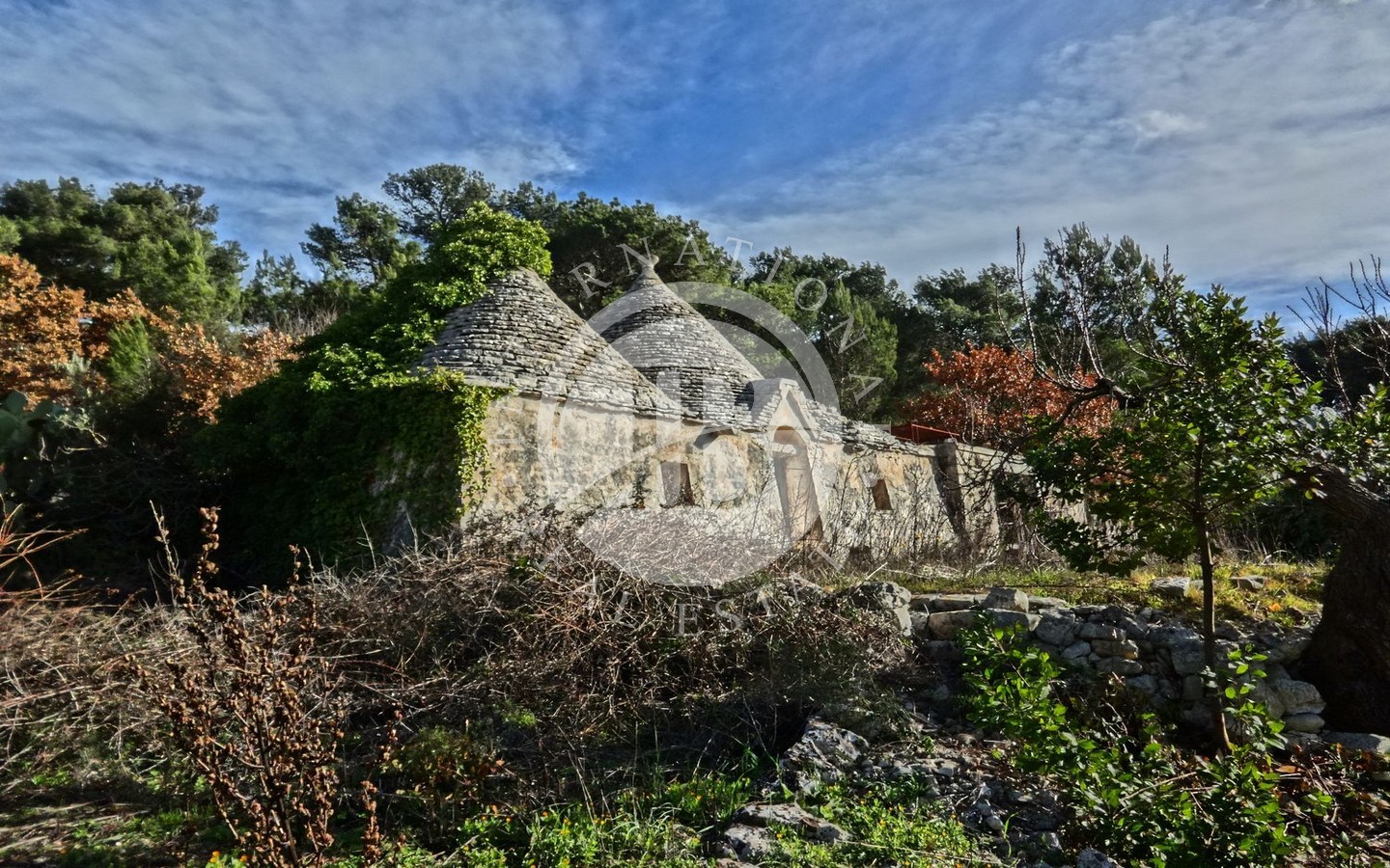 Il tutto è circondato da 7.500 mq di terreno con alberi da frutto e zone d'ombra, arricchito da due trulli con lamia da restaurare, che offrono una vista panoramica mozzafiato.