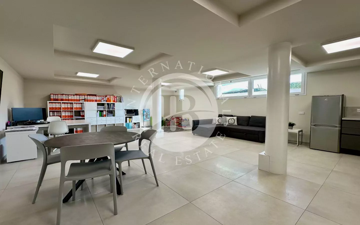 • Piano intermedio: un ambiente di 54 mq adibito a spazio polifunzionale, ideale come sala giochi, palestra, hobby room o home cinema. Su questo piano sono presenti anche un locale doccia e il vano tecnico con pompa di calore e serbatoio da 800 litri per l’acqua calda, alimentato da pannelli solari.