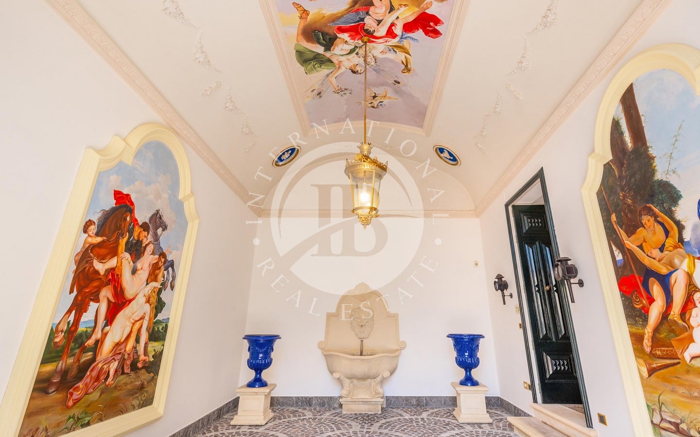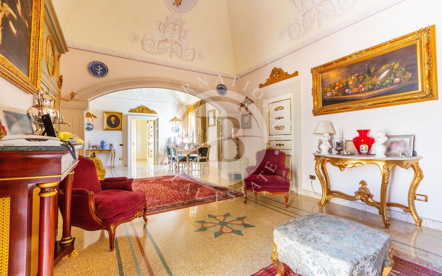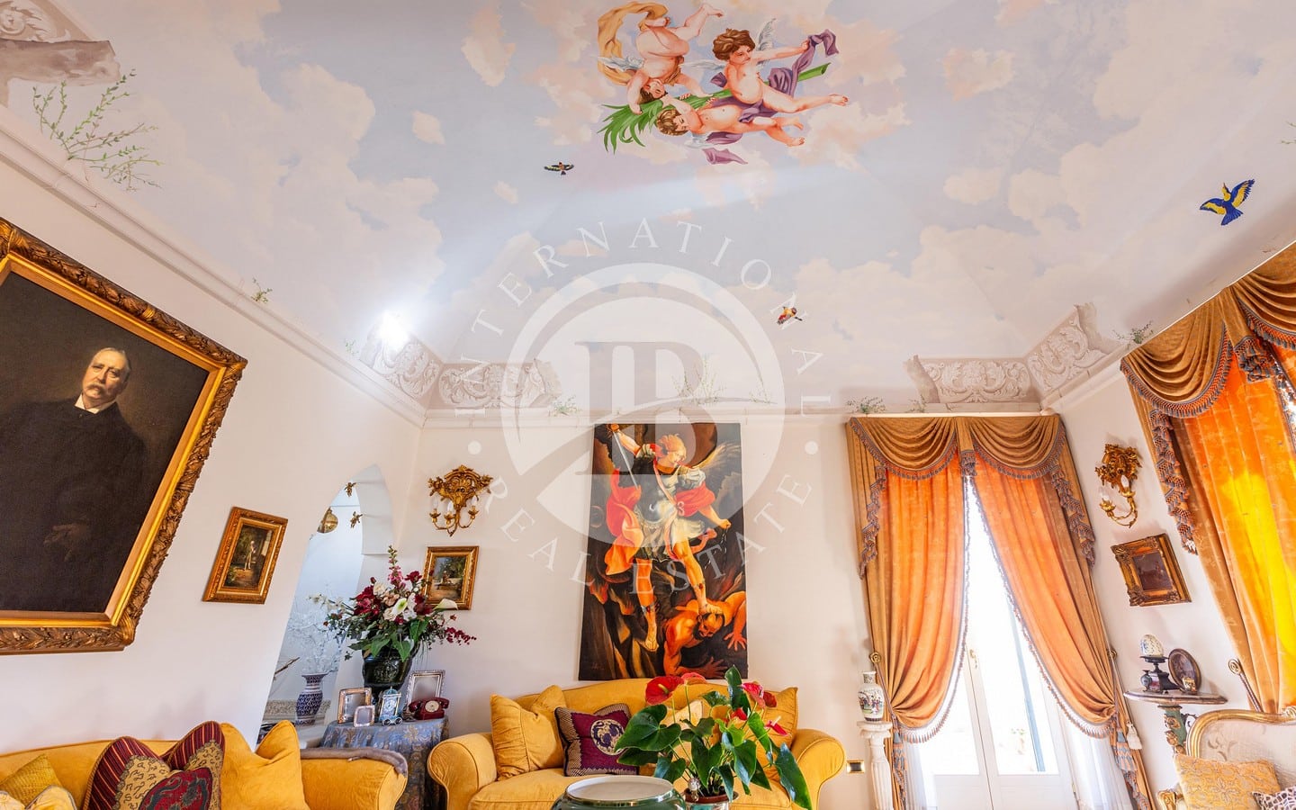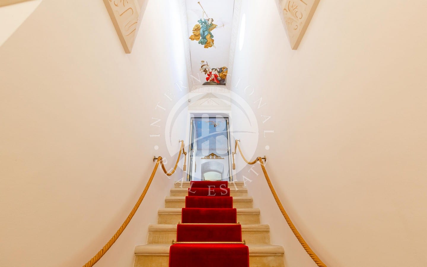 Disposto su due livelli, il palazzo accoglie con un raffinato disimpegno affrescato, dal quale una scenografica scala conduce al piano superiore.
