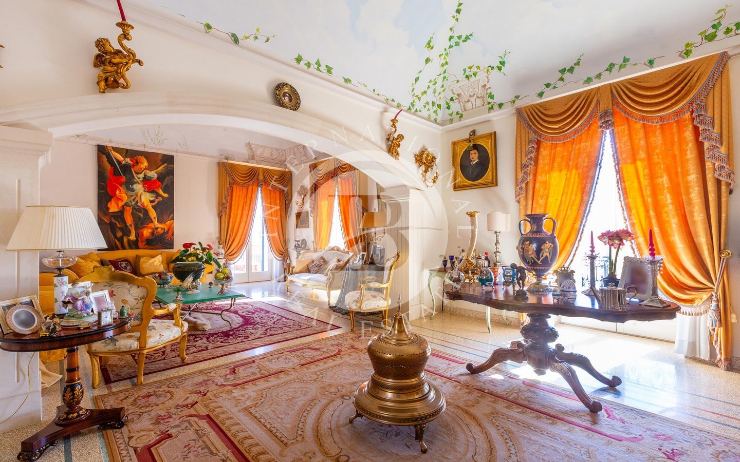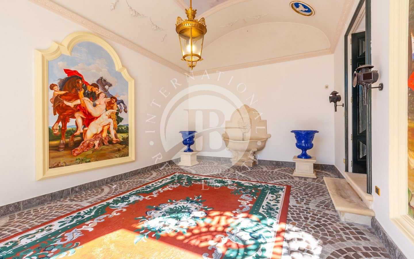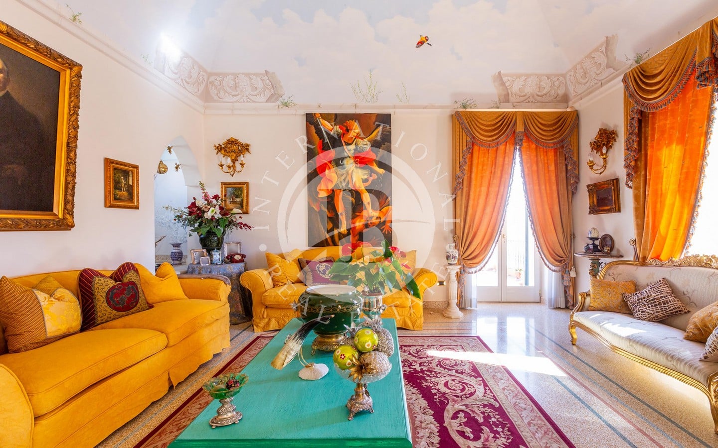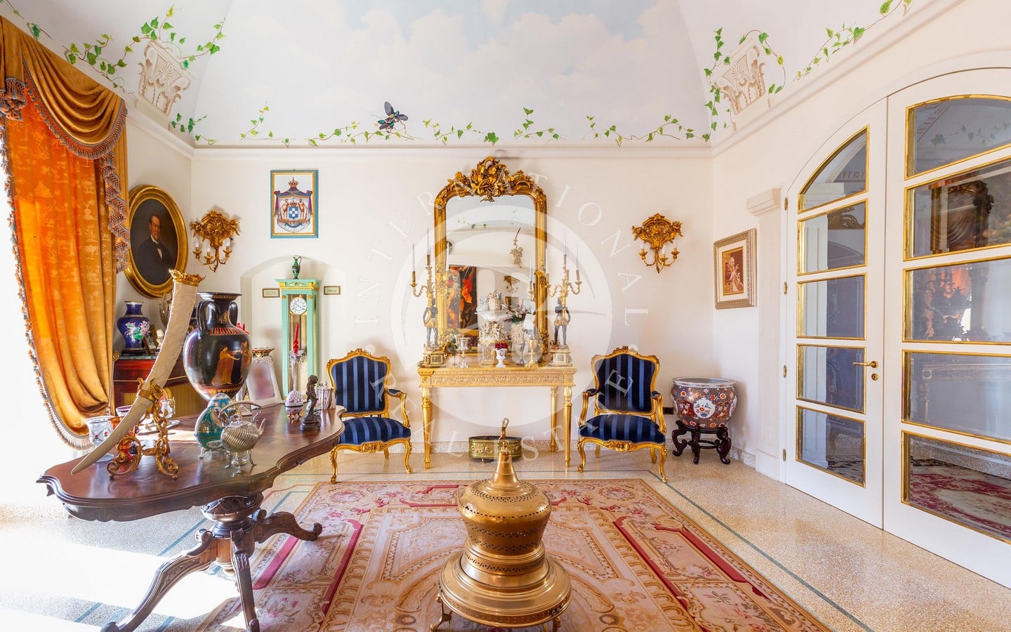 Disposto su due livelli, il palazzo accoglie con un raffinato disimpegno affrescato, dal quale una scenografica scala conduce al piano superiore.
