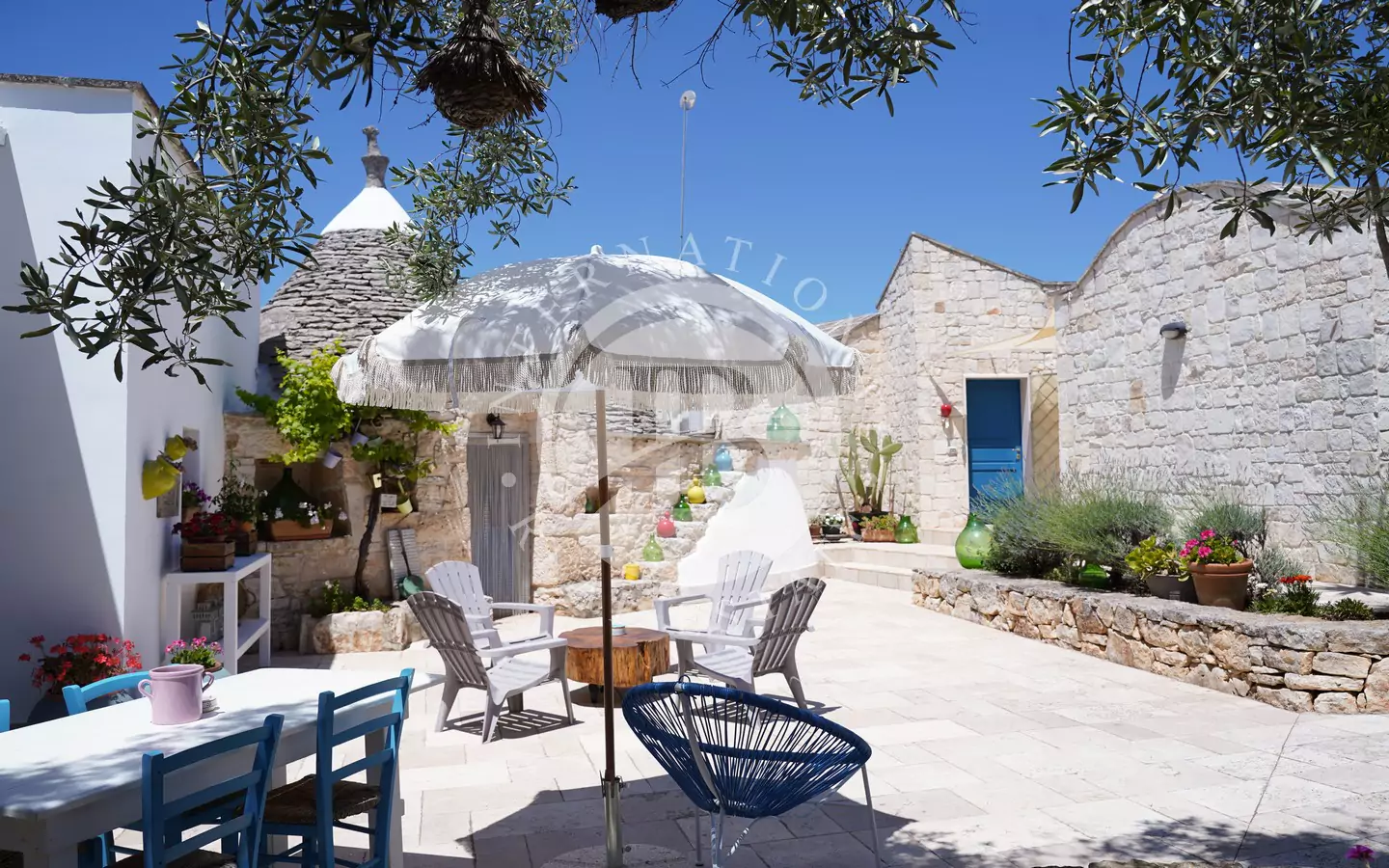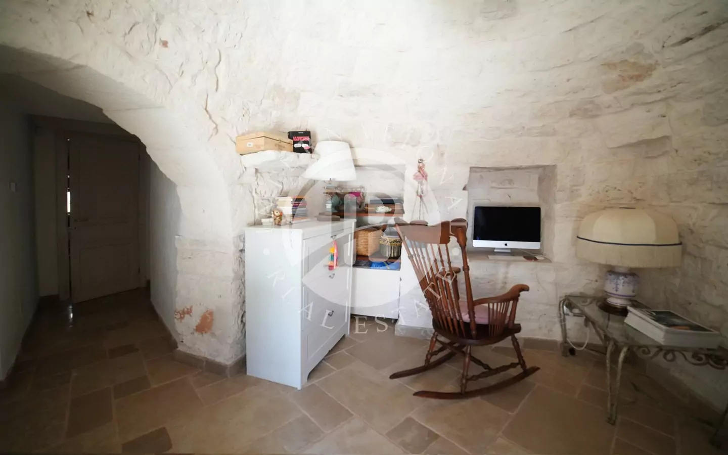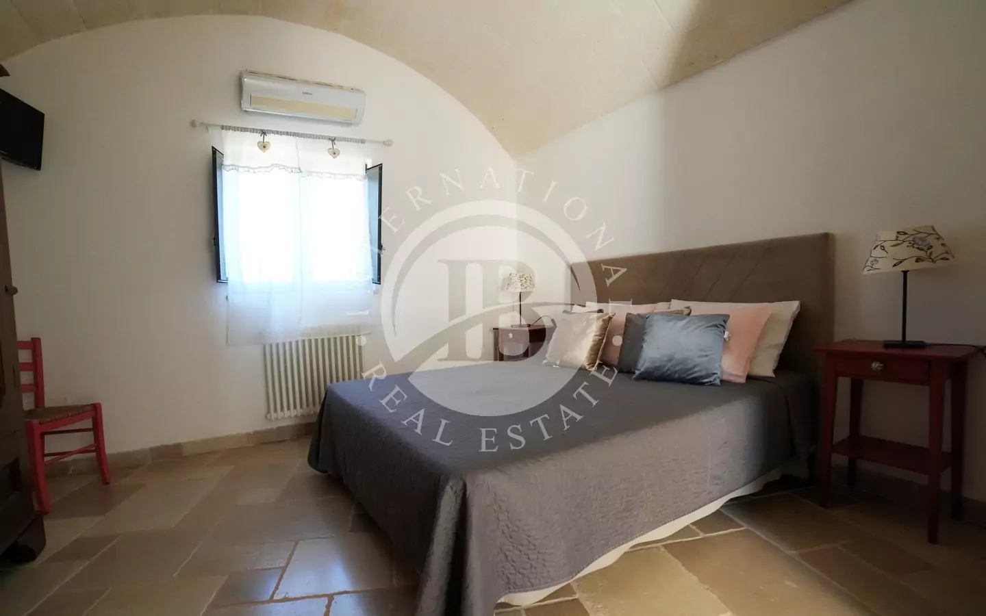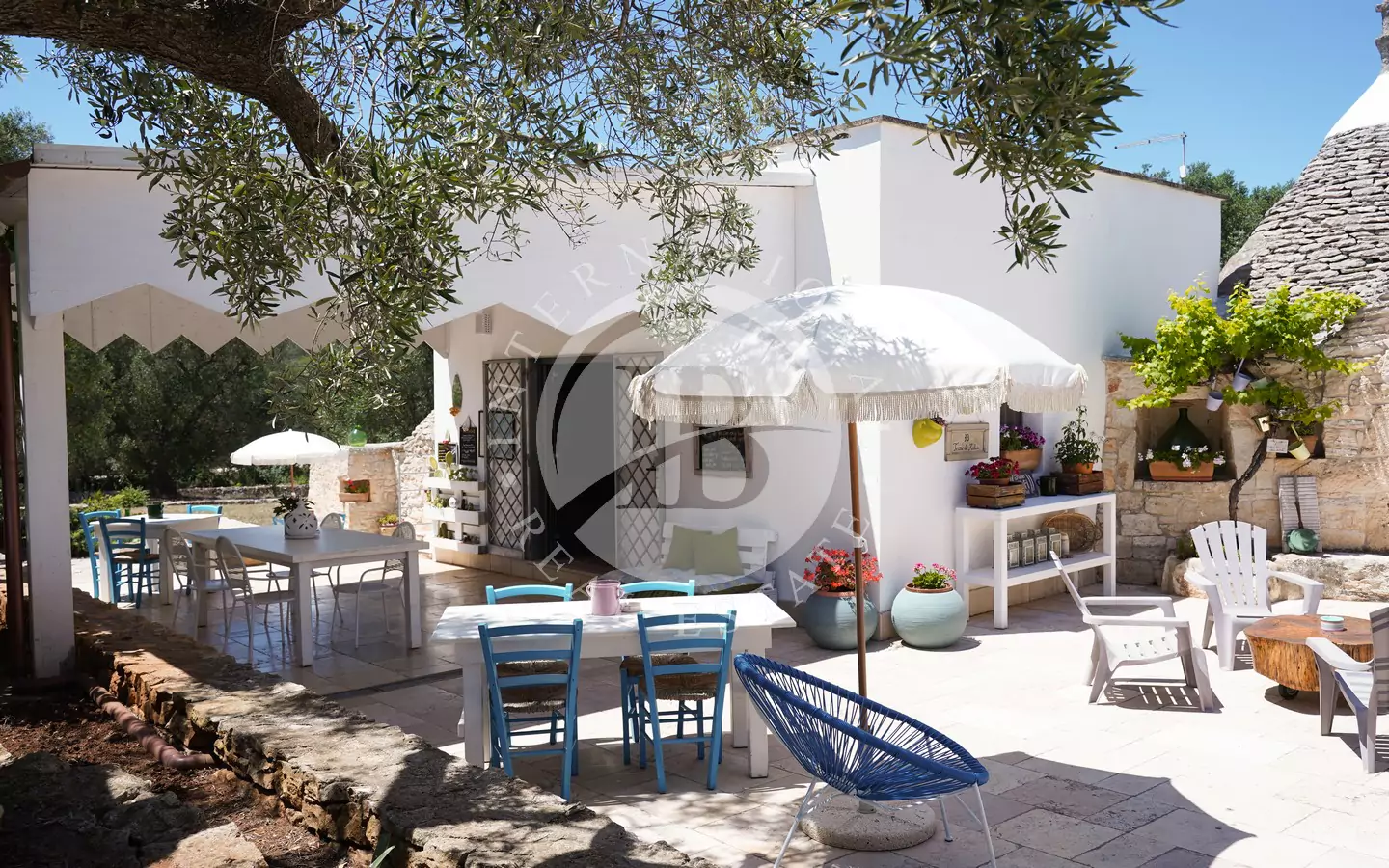Adiacente a un trullo tradizionale, la villa ospita una zona giorno con angolo cottura, una camera da letto e un bagno. È collegata internamente al trullo, oggi adibito a zona relax con ingresso indipendente, facilmente convertibile in una sesta camera da letto.
