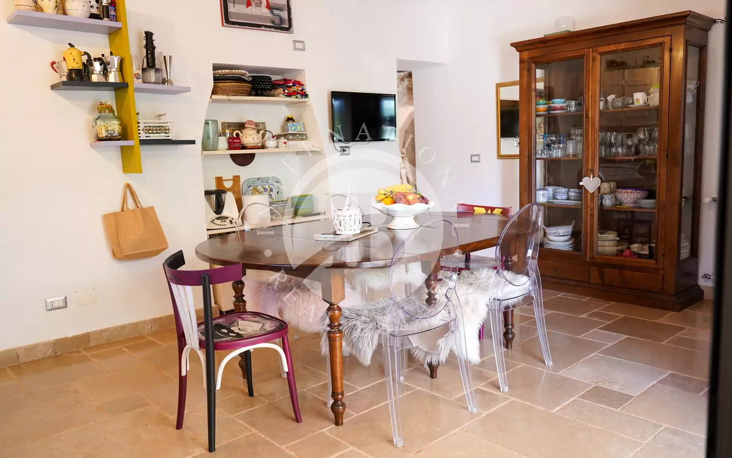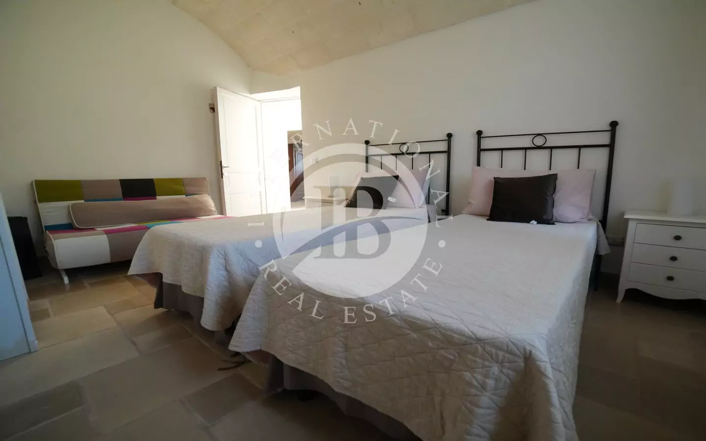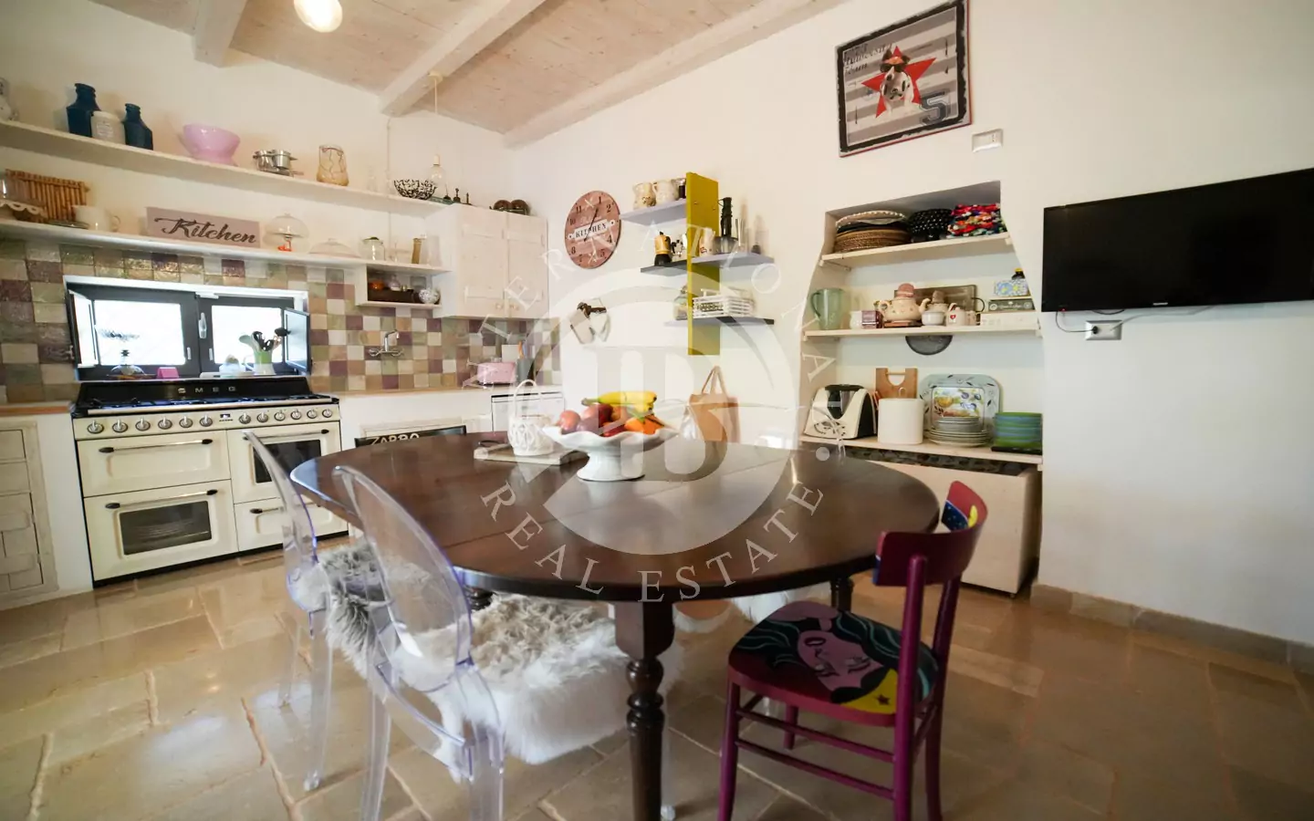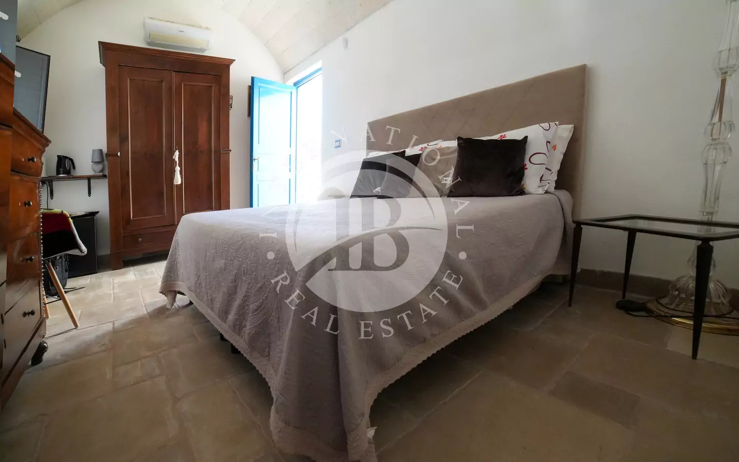 Adiacente a un trullo tradizionale, la villa ospita una zona giorno con angolo cottura, una camera da letto e un bagno. È collegata internamente al trullo, oggi adibito a zona relax con ingresso indipendente, facilmente convertibile in una sesta camera da letto.