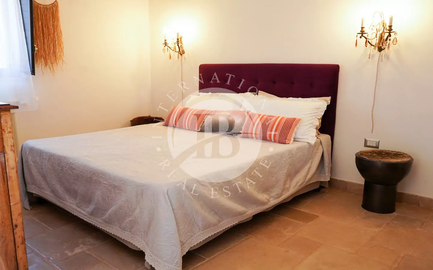 Un gioiello architettonico che ospita una camera da letto e un bagno ricavato da un’antica porcilaia, oggi elegantemente ristrutturata.