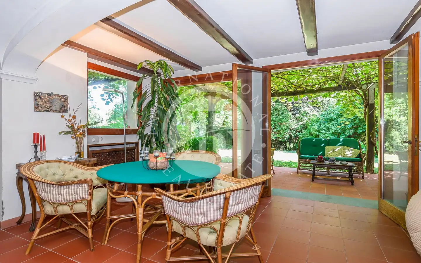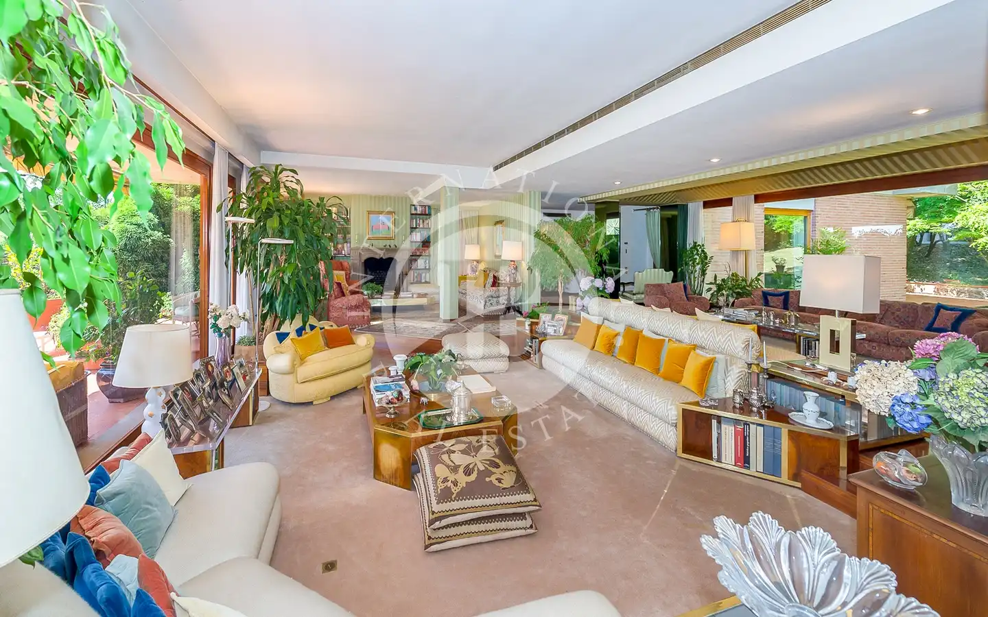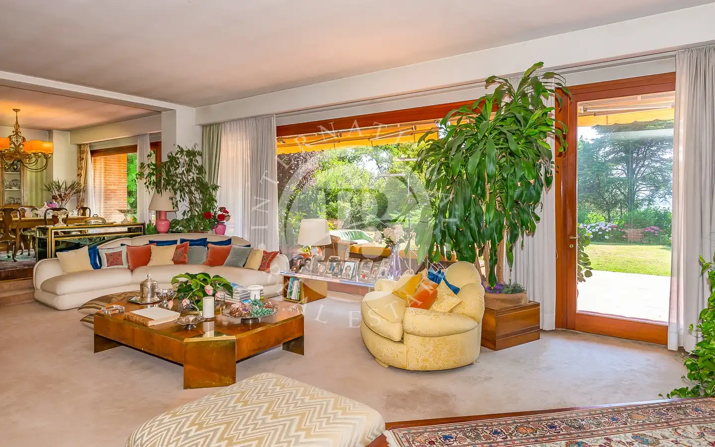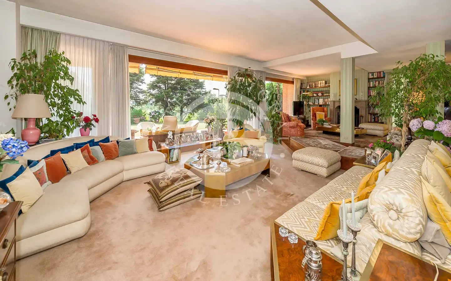 Uterommet er en oase av fred og skjønnhet: En 6000 kvadratmeter stor middelhavspark omgir villaen, som er helt inngjerdet for å garantere maksimal privatliv og sikkerhet. Store vinduer vender ut mot det grønne, noe som skaper en konstant dialog mellom inne og ute. Hagen, med store drivhus, kan forvandles til et treningsstudio, spa eller ekstra serviceområder. Den store garasjen for to biler og den overbygde parkeringsplassen har plass til opptil seks biler, noe som fullfører eiendommens ekstraordinære funksjonalitet.
