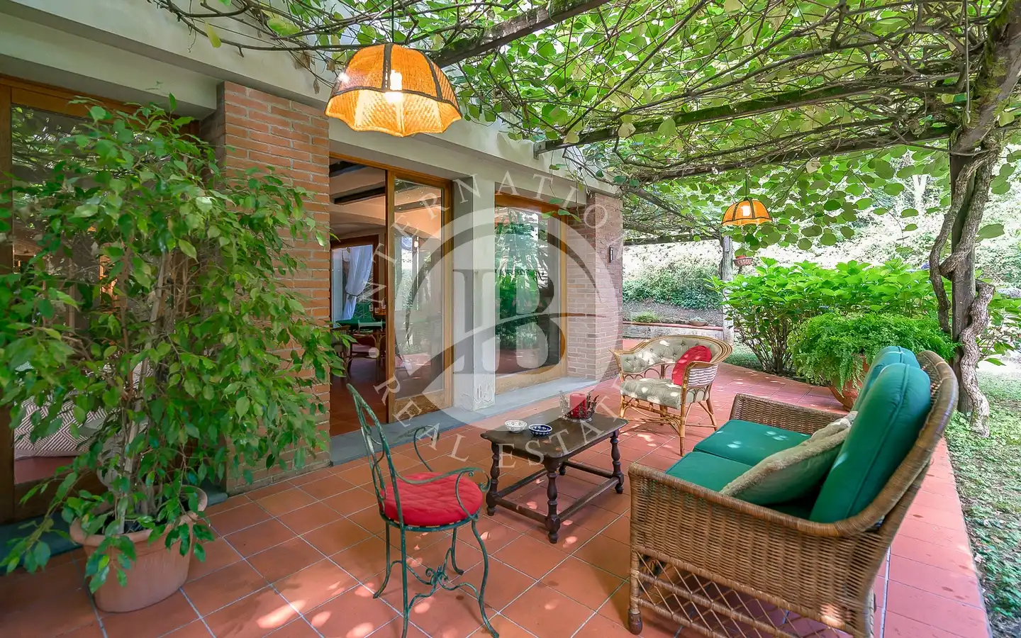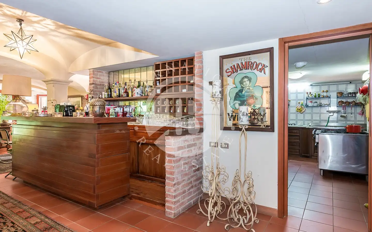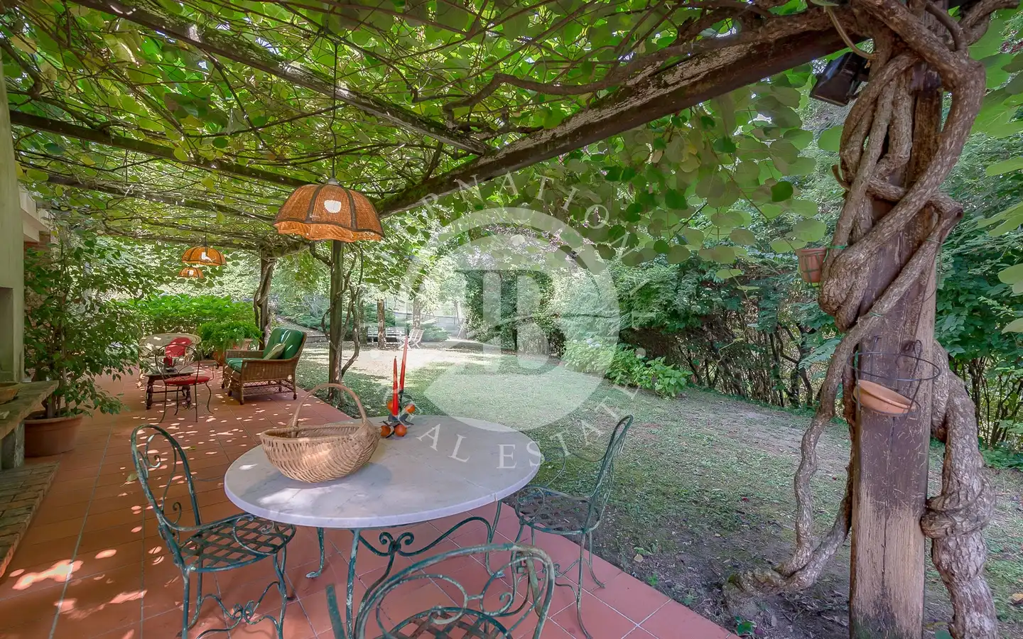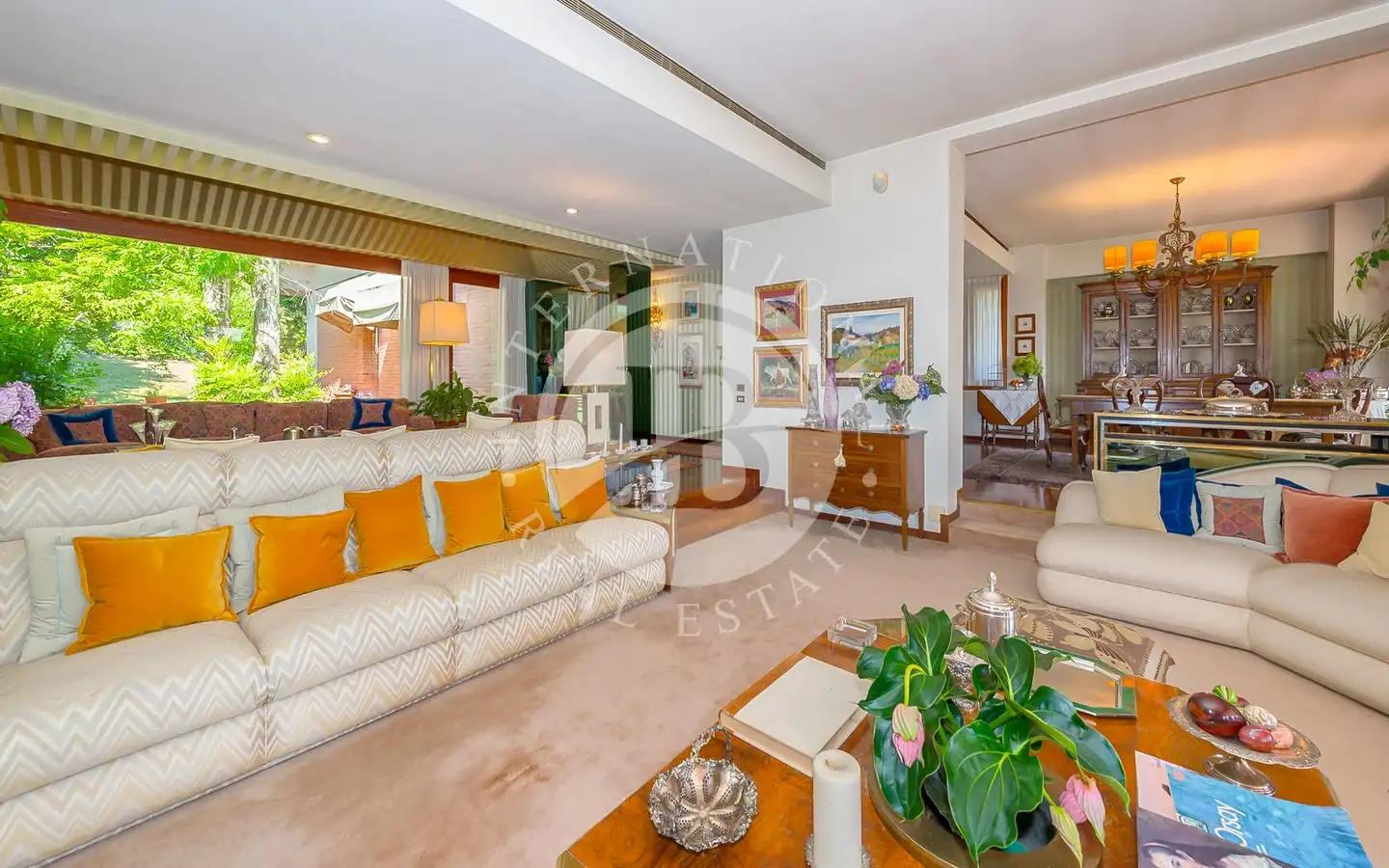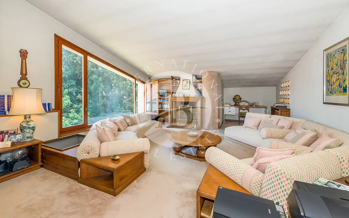 Villaen er fordelt over flere nivåer, med raffinerte, lyse rom. De ulike resepsjons- og oppholdsrommene, alle med peis, er ideelle for å ta imot gjester eller nyte familiestunder. De romslige hovedsoverommene med panoramautsikt har eget bad og walk-in-garderobe, mens gjesteavdelingen har suiter med eget bad, et arbeidsrom med peis og egen utgang. To kjøkken, ett hovedkjøkken og ett som betjener tavernaen, garanterer maksimal funksjonalitet. Tavernaen, med biljardområde, cocktailbar og innendørs og utendørs grill, byr på en hyggelig og naturskjønn atmosfære, beriket av en original peis som også kan brukes fra utsiden.