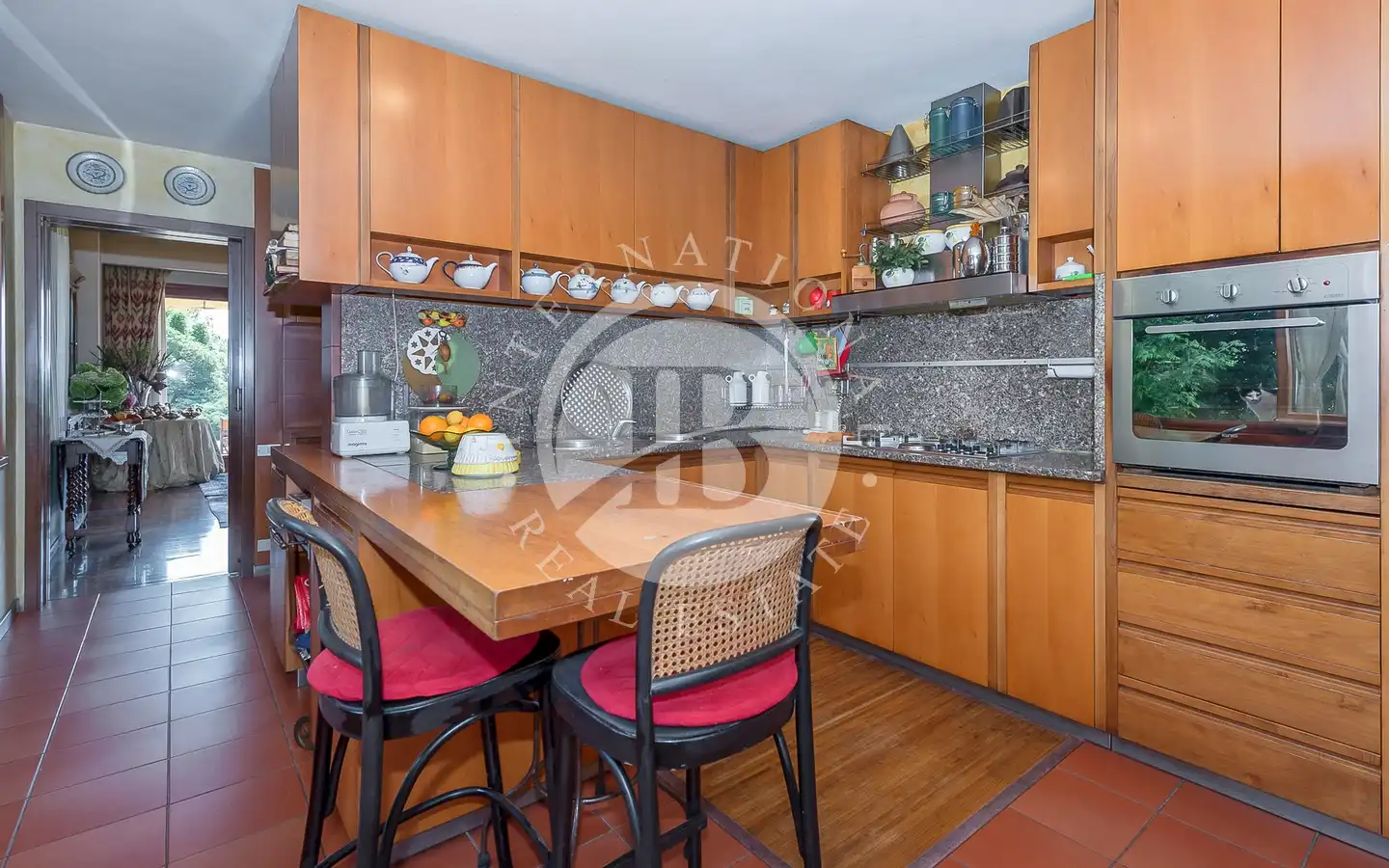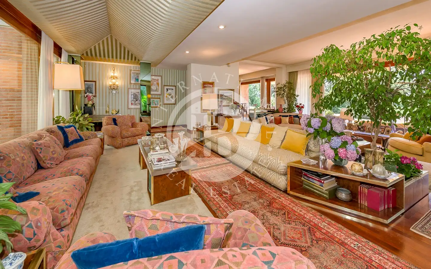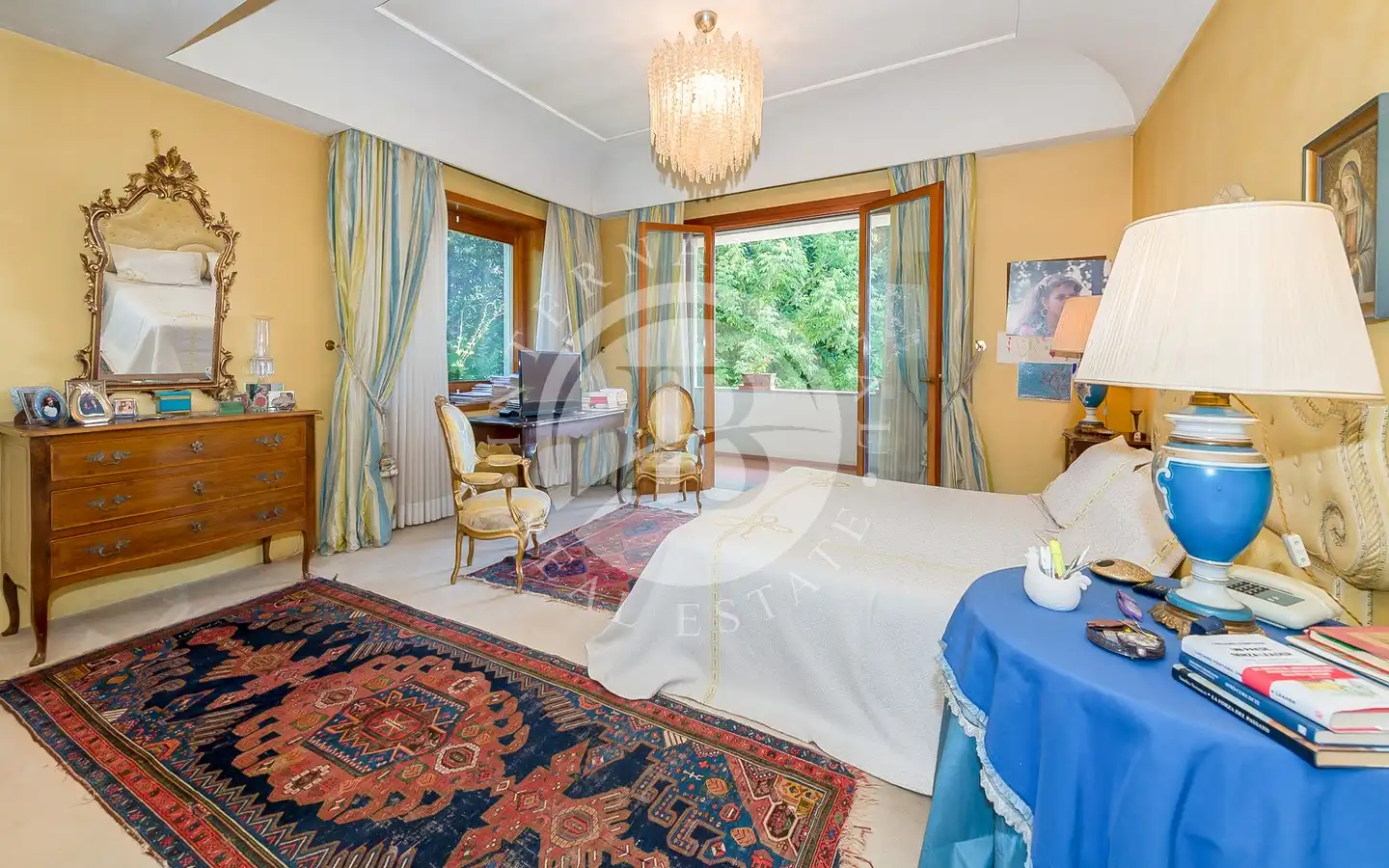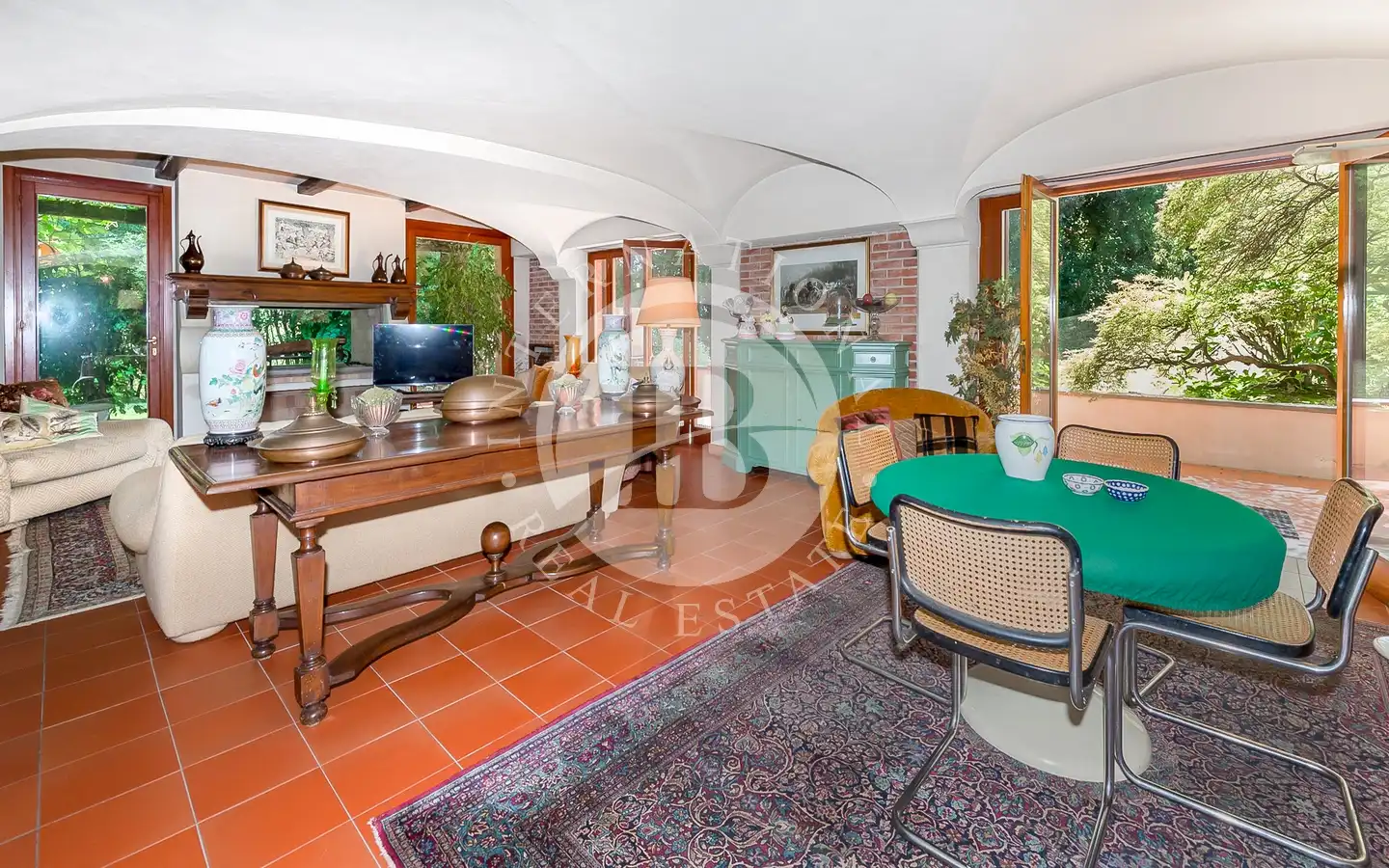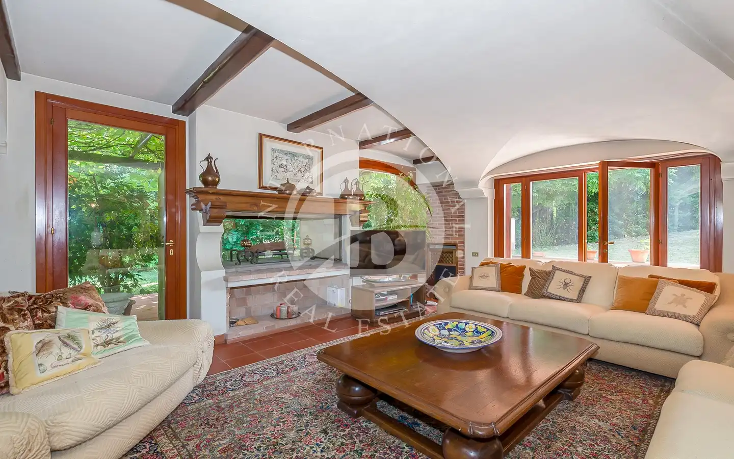 Villaen er fordelt over flere nivåer, med raffinerte, lyse rom. De ulike resepsjons- og oppholdsrommene, alle med peis, er ideelle for å ta imot gjester eller nyte familiestunder. De romslige hovedsoverommene med panoramautsikt har eget bad og walk-in-garderobe, mens gjesteavdelingen har suiter med eget bad, et arbeidsrom med peis og egen utgang. To kjøkken, ett hovedkjøkken og ett som betjener tavernaen, garanterer maksimal funksjonalitet. Tavernaen, med biljardområde, cocktailbar og innendørs og utendørs grill, byr på en hyggelig og naturskjønn atmosfære, beriket av en original peis som også kan brukes fra utsiden.