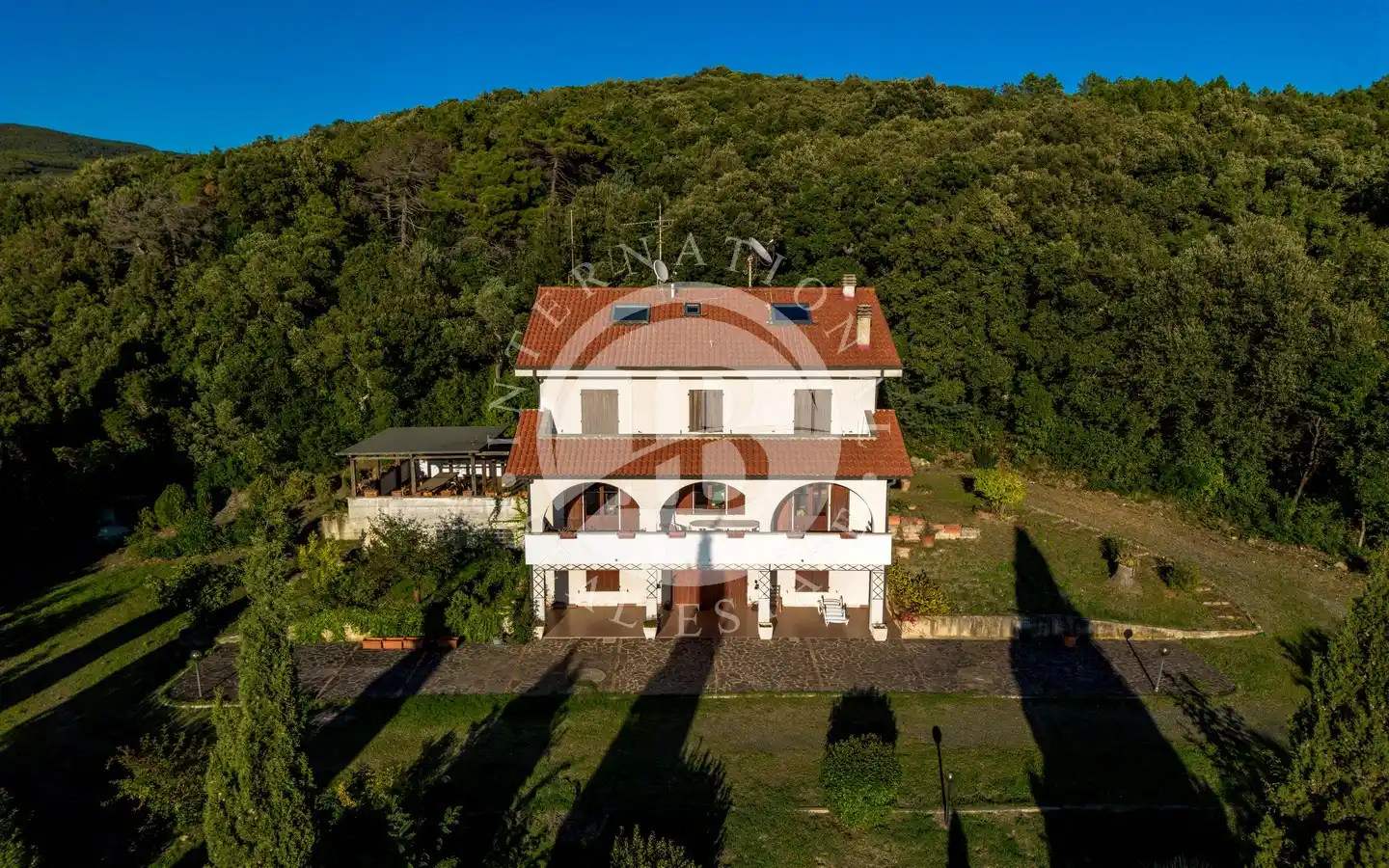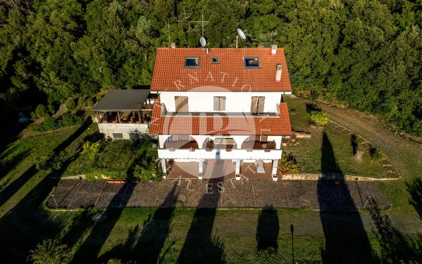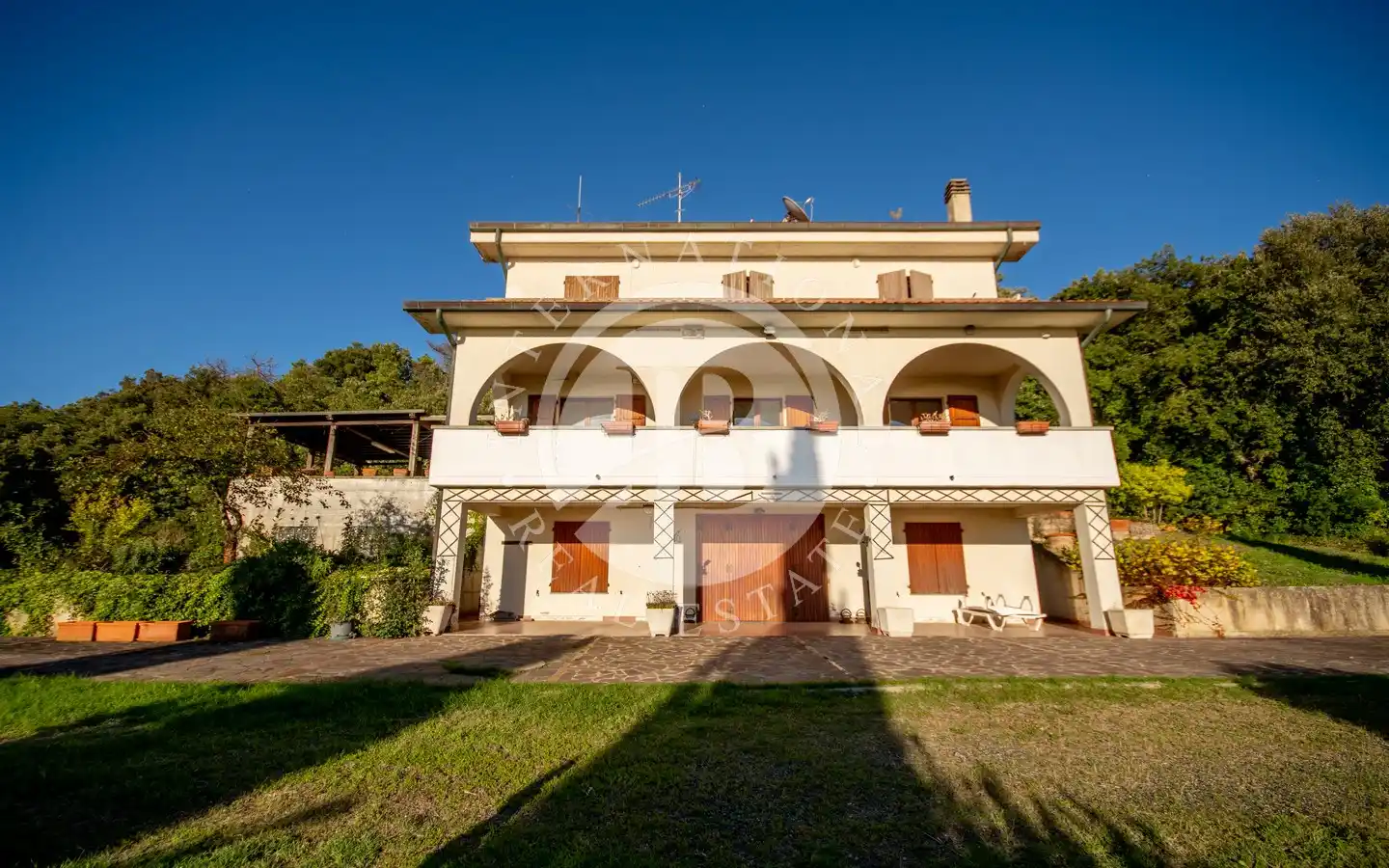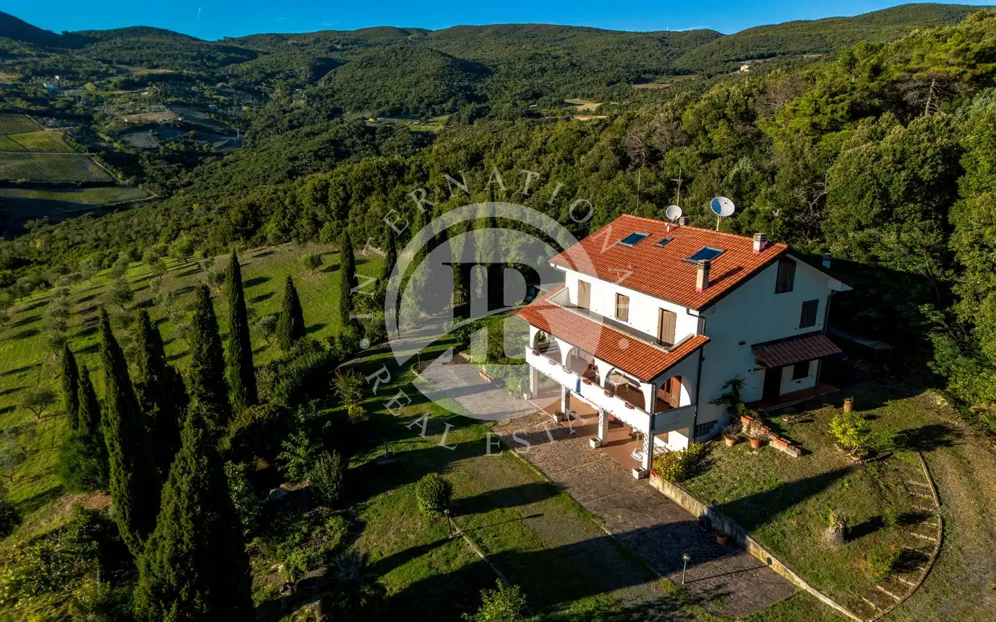 Vi tilbyr for salg en prestisjefylt eiendom i Riparbella kommune (PI), som ligger på den første åsen med panoramautsikt over den etruskiske kysten og i kort avstand fra de største badebyene i området. Boligen, som ligger på en 1,5 hektar stor tomt, dekker et samlet areal på ca. 370 kvadratmeter fordelt på tre plan, og kjennetegnes av en arkitektur som opprettholder den autentiske toskanske sjarmen, med store, lyse rom og panoramautsikt over både det omkringliggende landskapet og havet.