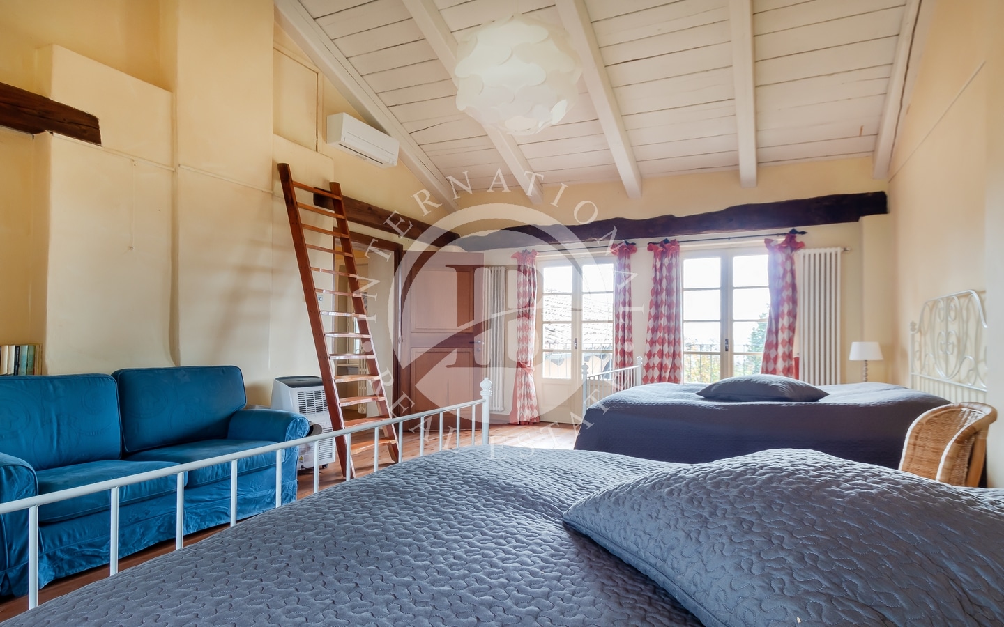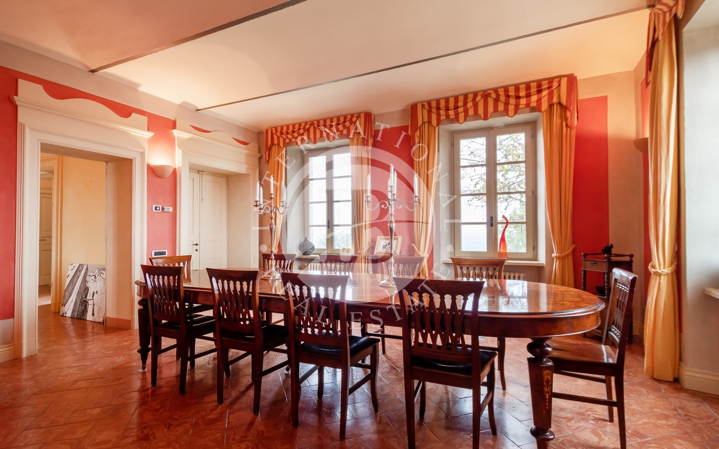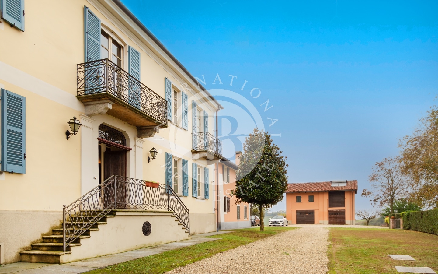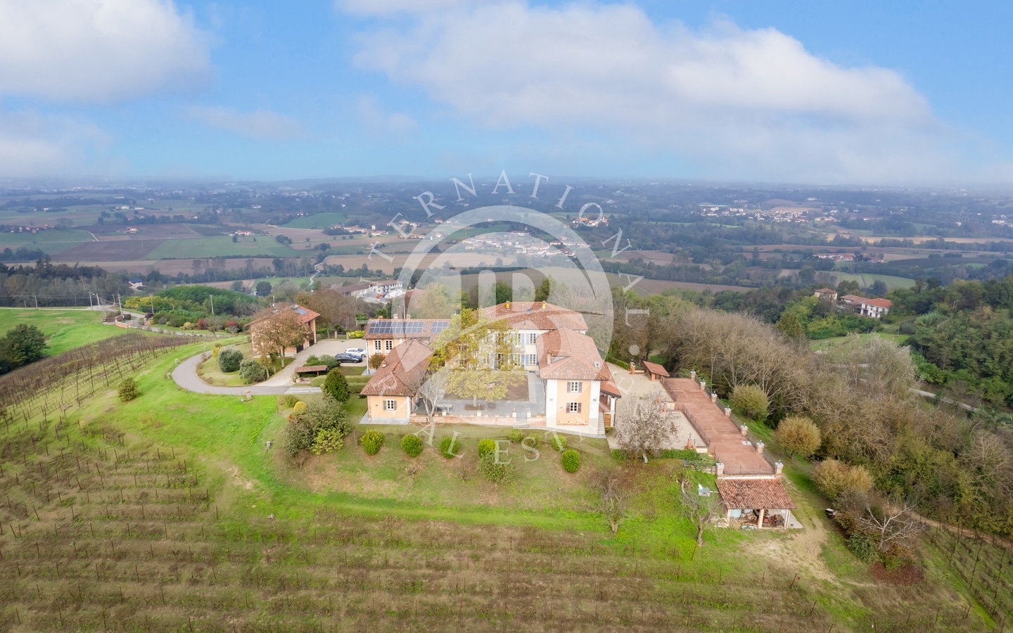 Noen få kilometer fra Asti og bare 30 minutter fra Torino sentrum, ligger denne praktfulle eiendommen strategisk plassert, bare en drøy time fra både Milano og skiløypene i Sestriere eller havet i Liguria. Herregården, som ligger på en høyde med 360 graders panoramautsikt, dominerer et pittoresk landskap omgitt av vinmarker, en park med svømmebasseng og en toppmoderne vinkjeller.