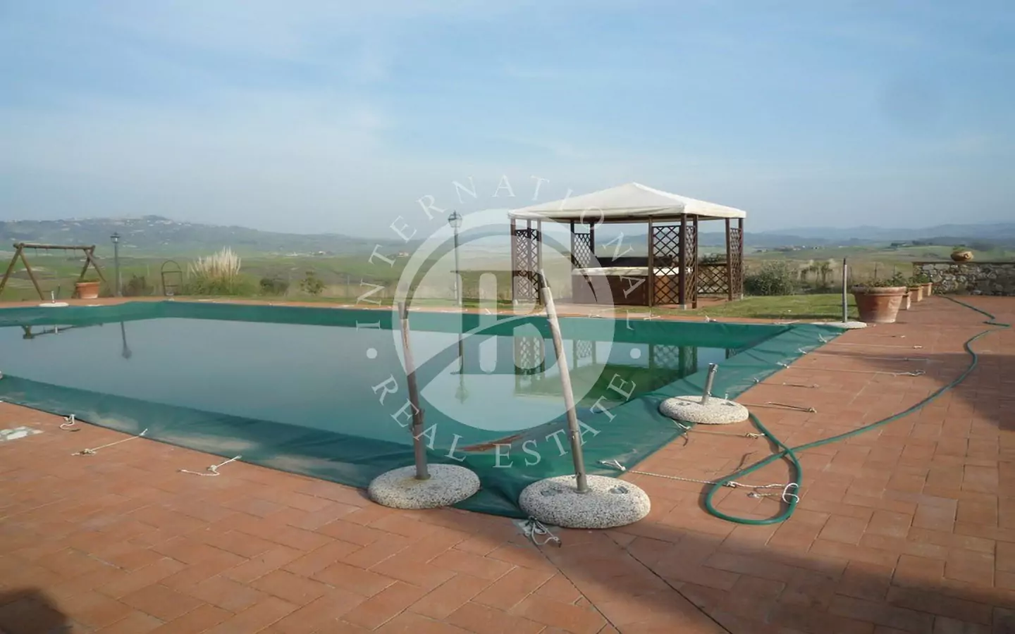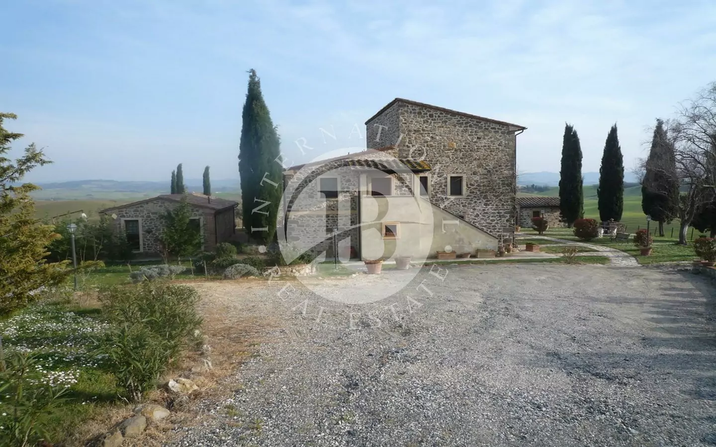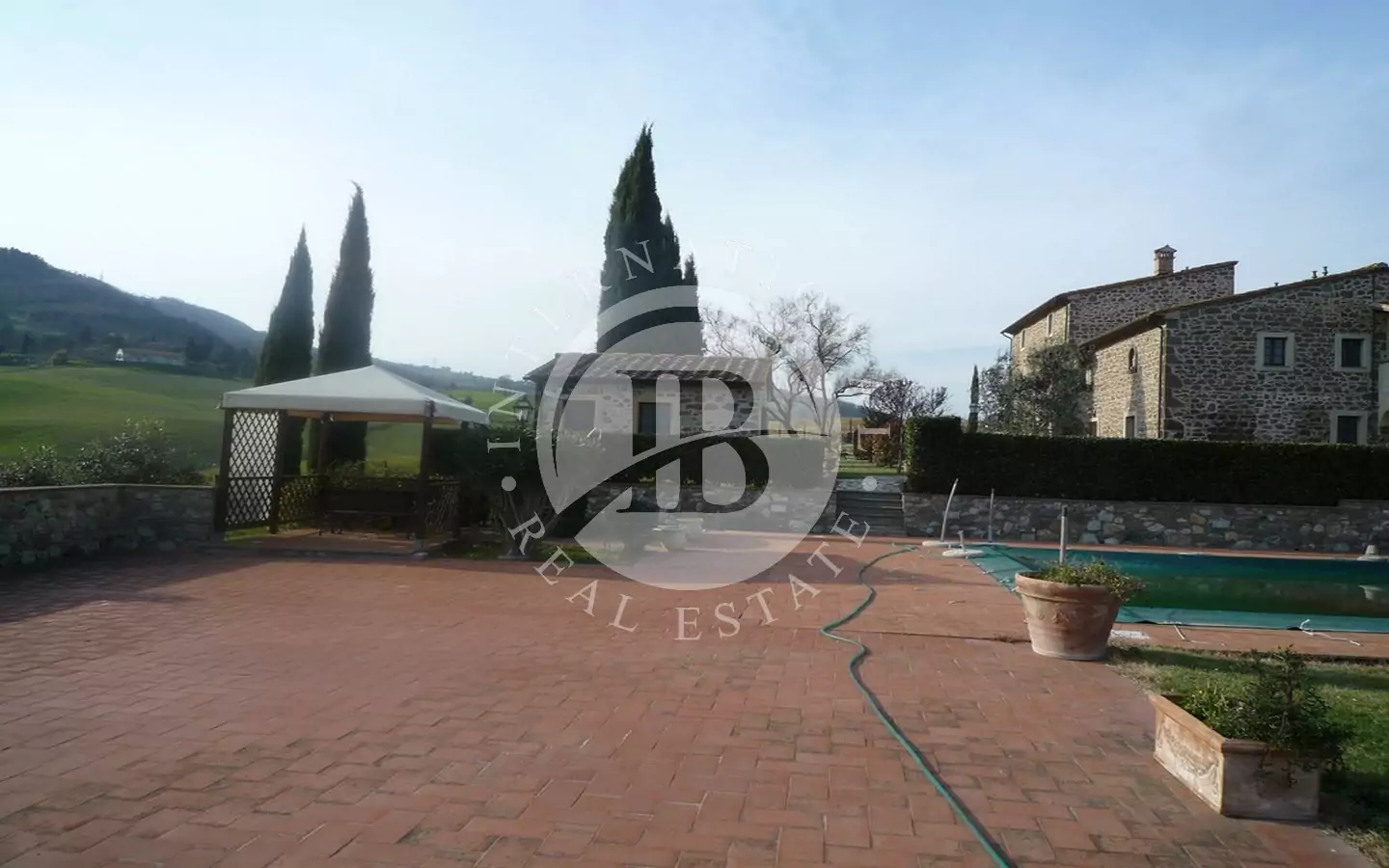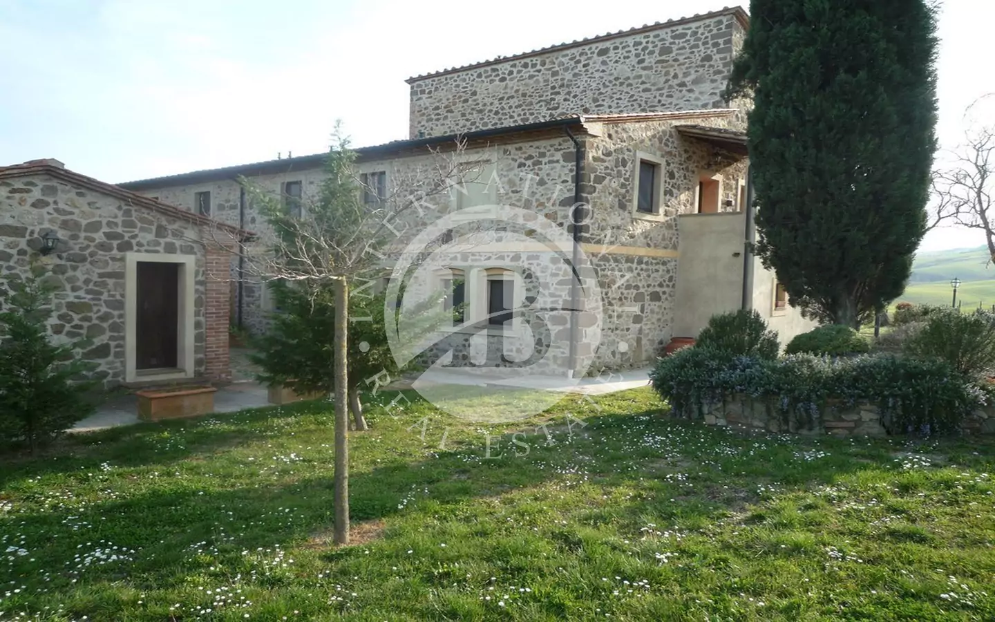 Det 650 kvm store våningshuset er helt i stein med 1 ha tomt. Inndelt i 9 leiligheter, hvorav to- og treromsleiligheter med hage, svømmebasseng, jacuzzi, satellitt-TV. Innredet med rustikke møbler. Dominerende beliggenhet med panoramautsikt over landskapet og en fortryllende utsikt over Volterra. Utmerket adkomstvei.