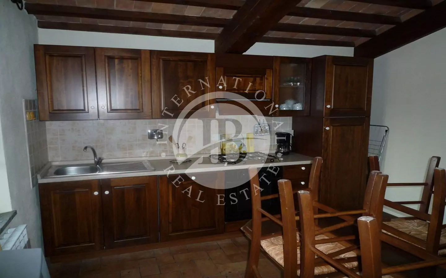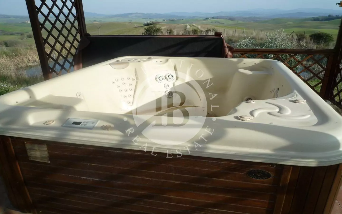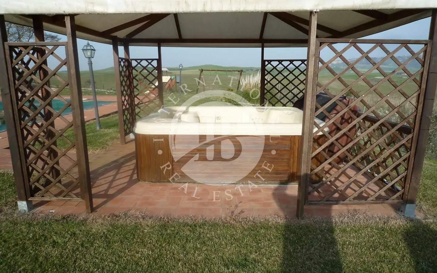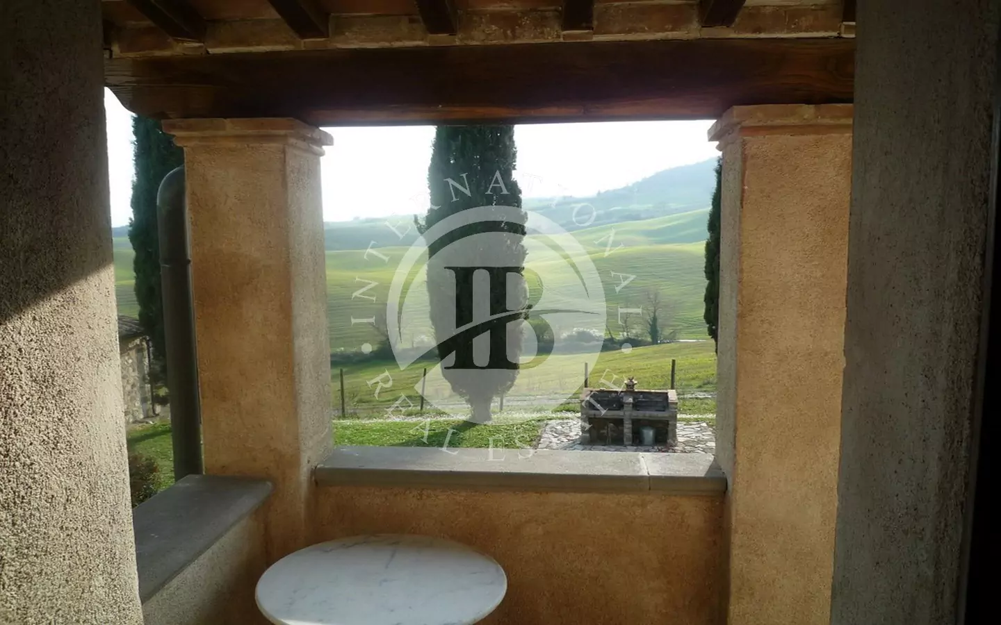 Det 650 kvm store våningshuset er helt i stein med 1 ha tomt. Inndelt i 9 leiligheter, hvorav to- og treromsleiligheter med hage, svømmebasseng, jacuzzi, satellitt-TV. Innredet med rustikke møbler. Dominerende beliggenhet med panoramautsikt over landskapet og en fortryllende utsikt over Volterra. Utmerket adkomstvei.