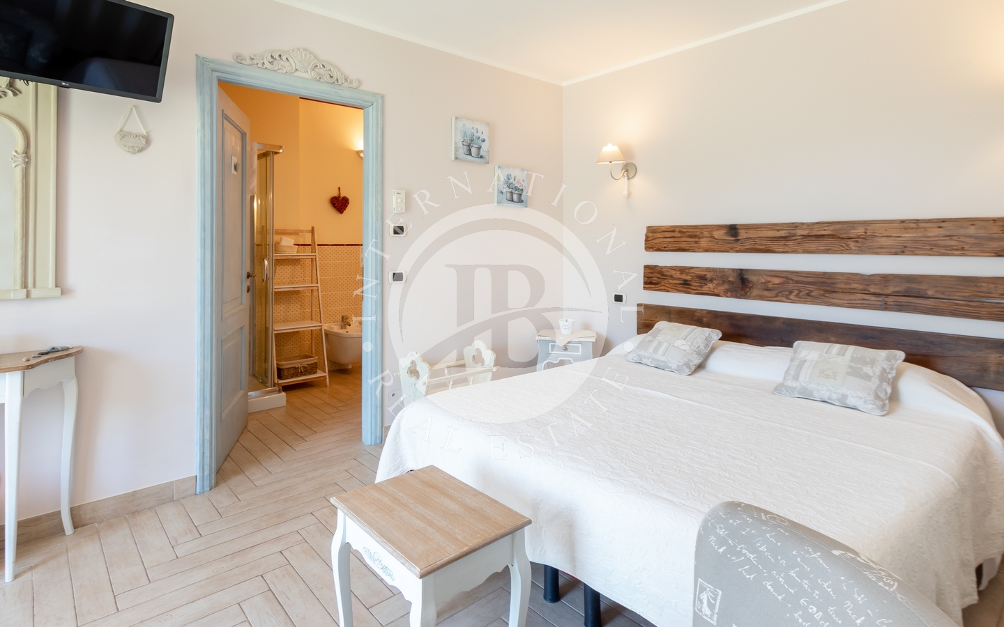 Det er mulig å utvide eiendommen ved å kjøpe ytterligere to bygninger på samme tomt: en frittliggende villa på 90 m² med et lager på samme størrelse og et våningshus som skal renoveres, med et brukbart volum for bygging av en ny villa på opptil 200 m². Med denne utvidelsen kommer tomtens totale areal opp i ca. 12 000 m².