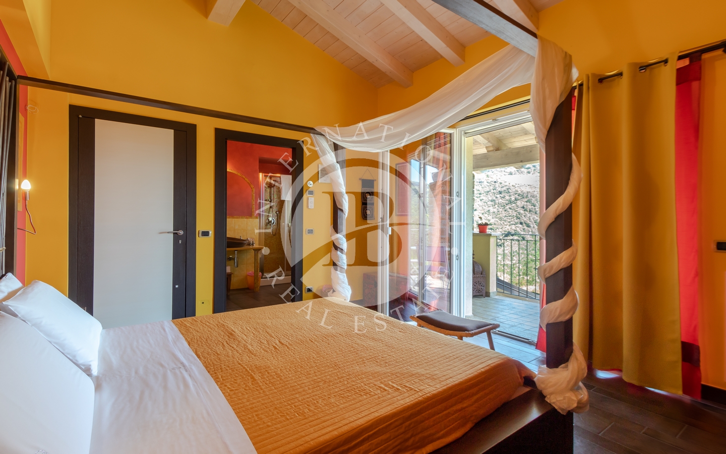 I øverste etasje er det to soverom med dobbeltseng og eget bad, begge med utgang til en privat sørvendt balkong med utsikt over det omkringliggende landskapet og havet.