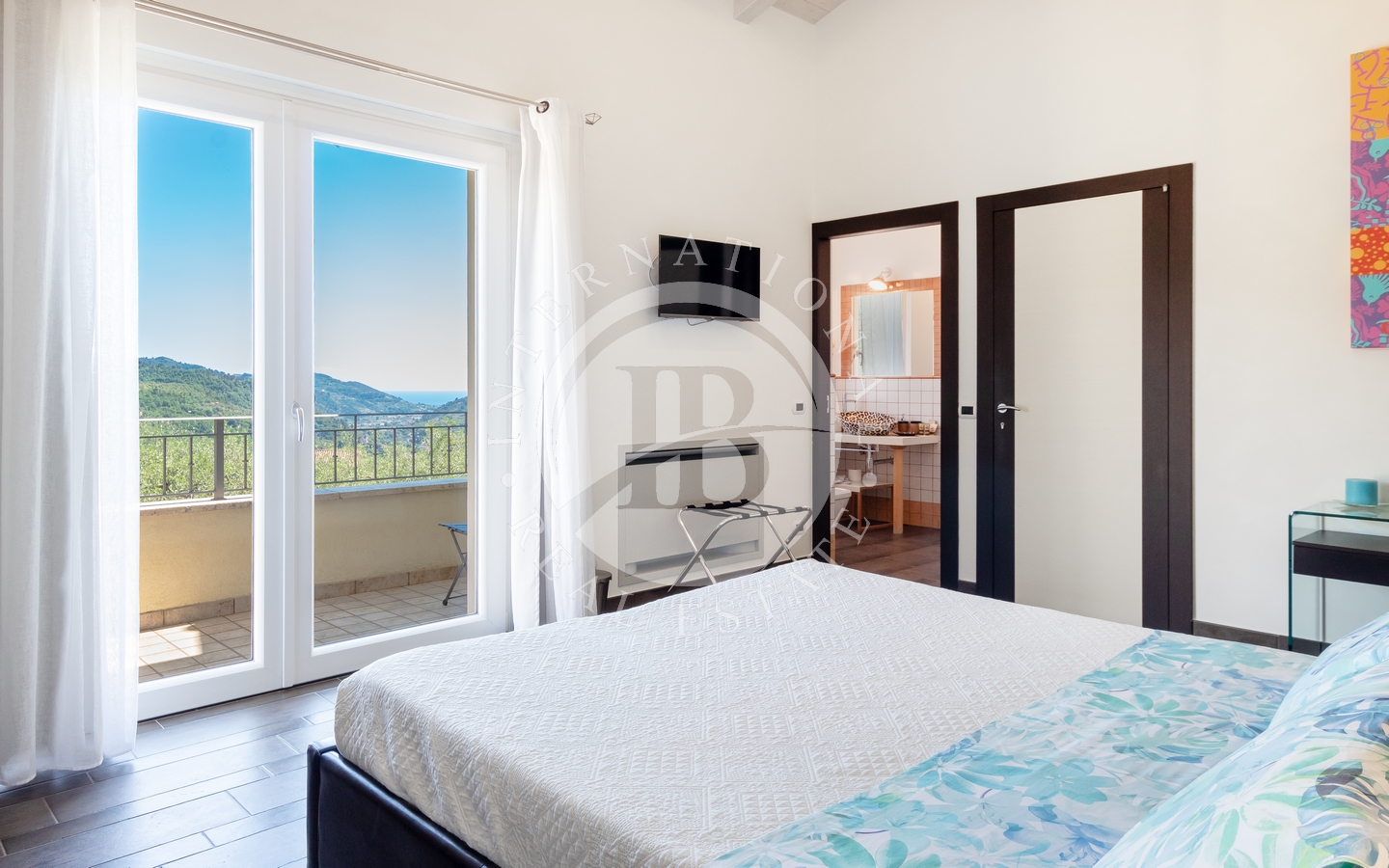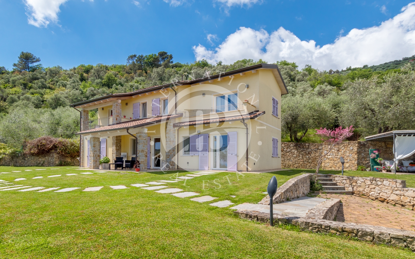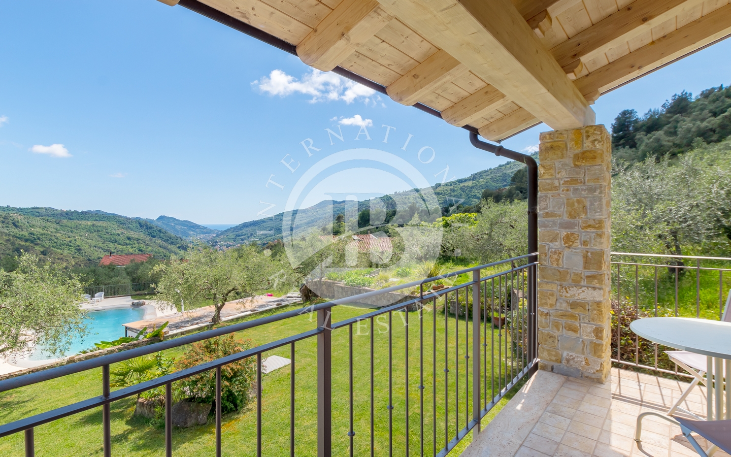 Denne eneboligen på 150 m² ligger i åsene med utsikt over middelalderlandsbyen Dolceacqua, og skiller seg ut med sin romslige størrelse og panoramautsikt over dalen og Middelhavet.