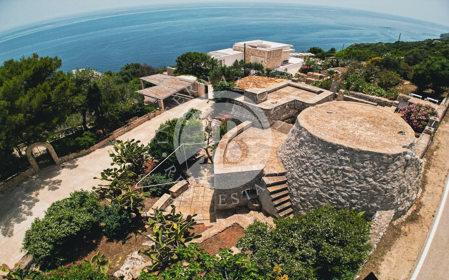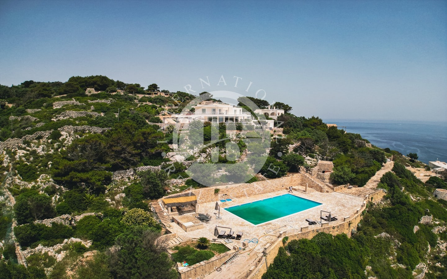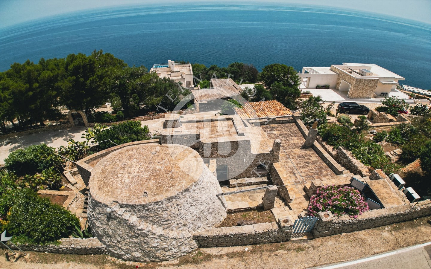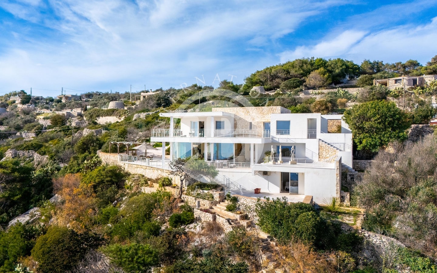 In vendita una villa di lusso di circa 480 mq complessivi, con piscina a sfioro, dependance, Guest House ricavata all’interno di caratteristici trulli restaurati, e una vista spettacolare sul mare.