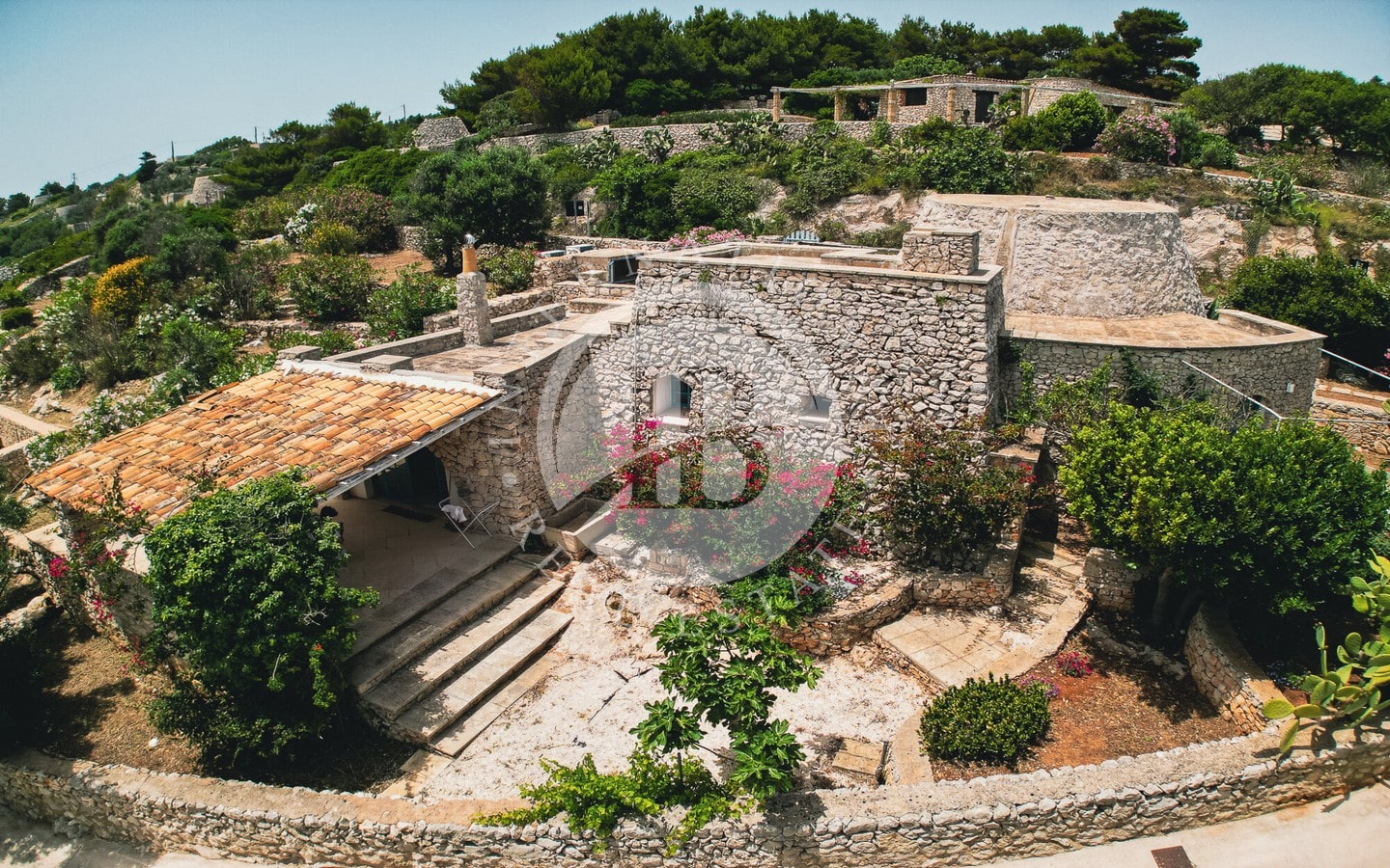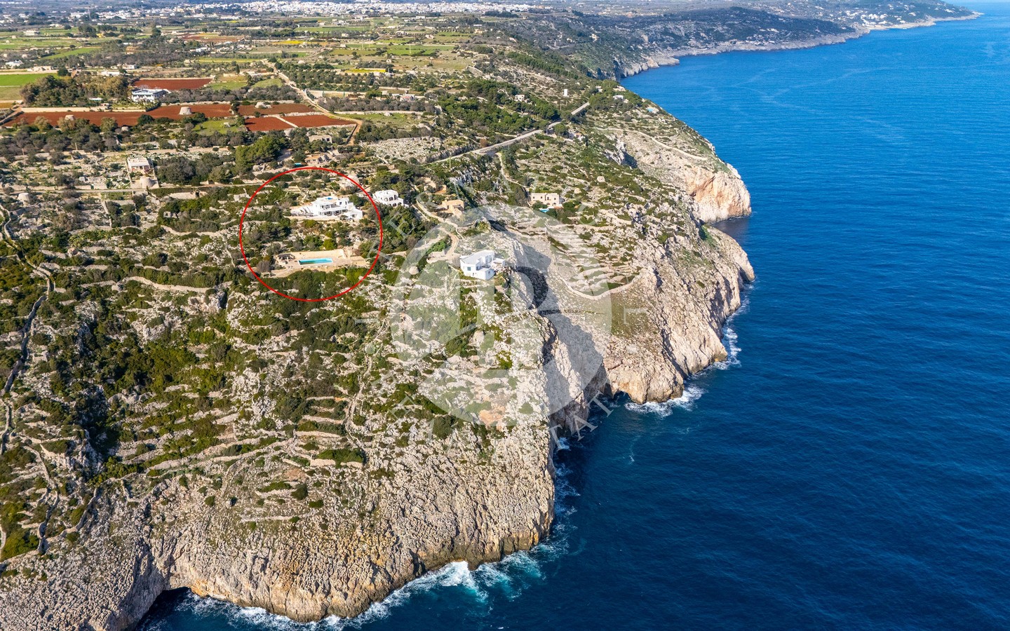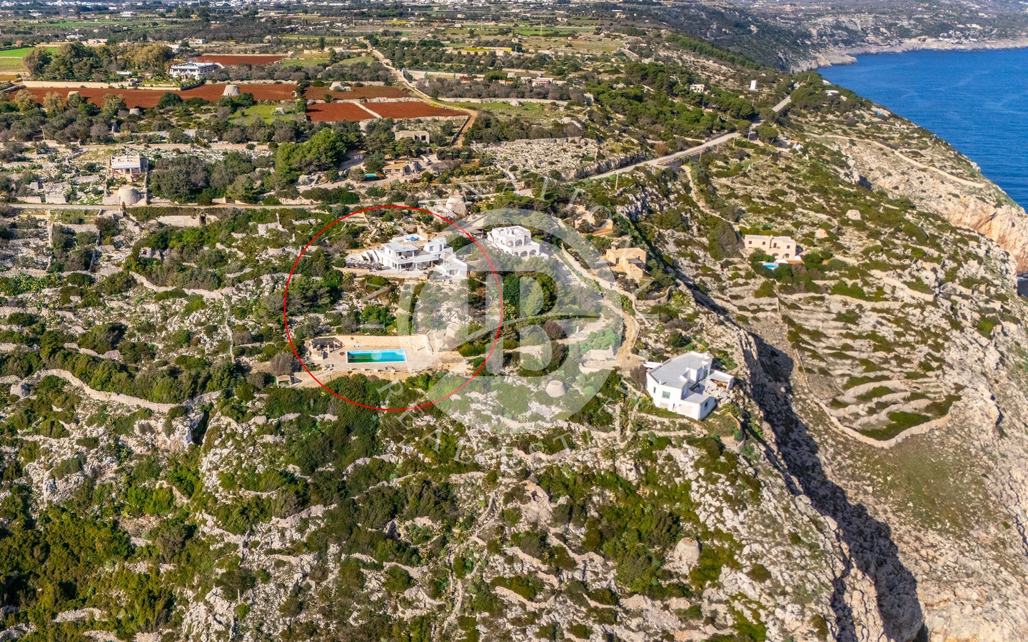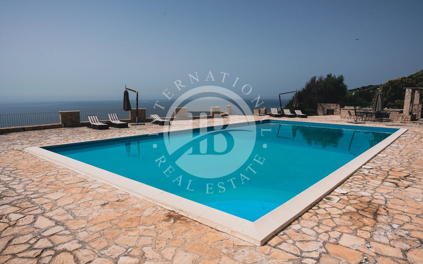 In vendita una villa di lusso di circa 480 mq complessivi, con piscina a sfioro, dependance, Guest House ricavata all’interno di caratteristici trulli restaurati, e una vista spettacolare sul mare.