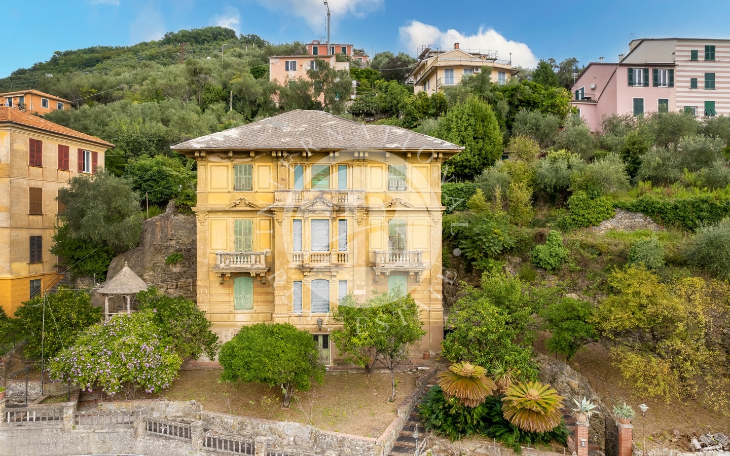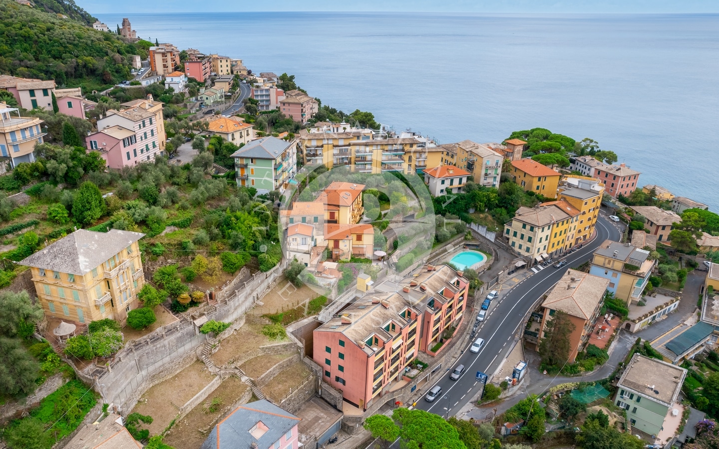 Villaen, som ligger i Zoagli i privilegerte panoramiske omgivelser og lett tilgjengelig til både offentlig transport og sentrum, har en sørvestlig eksponering med en fantastisk utsikt over Portofino og hele Tigullio-bukten.