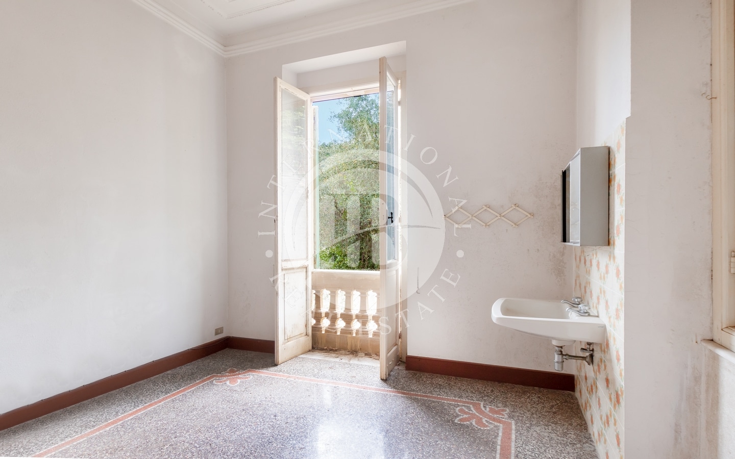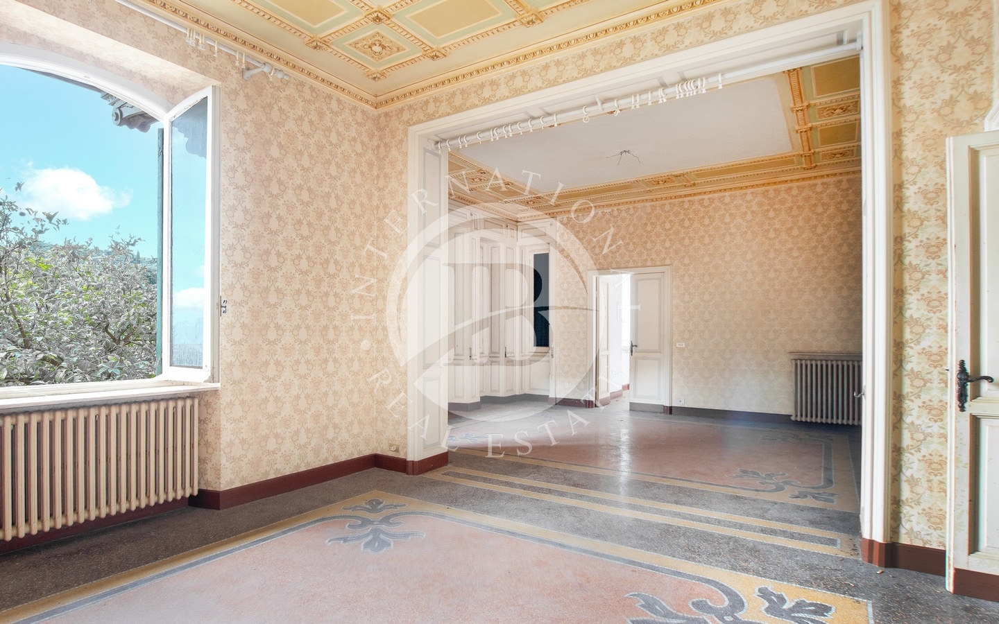 Det er tre romslige stuer med vakre arkitektoniske detaljer, utsmykkede tak og mosaikkgulv, alle med utsikt over golfen, i tillegg til et arbeidsrom, et kjøkken og et bad.